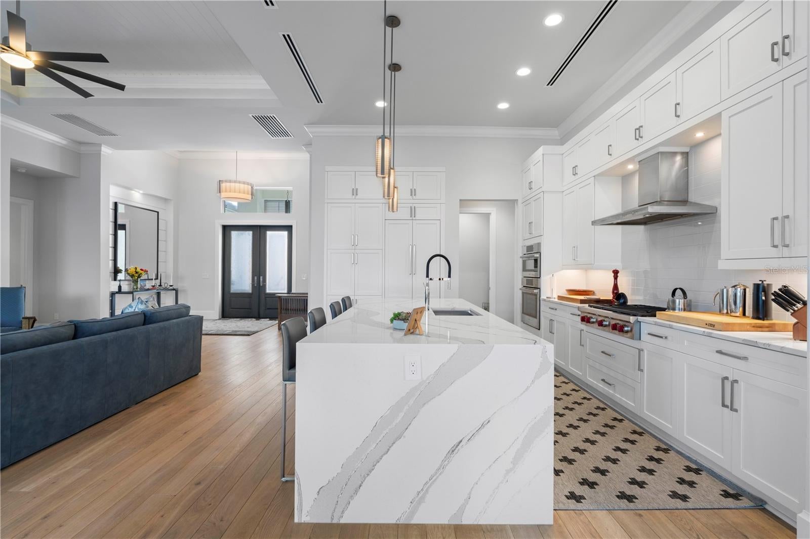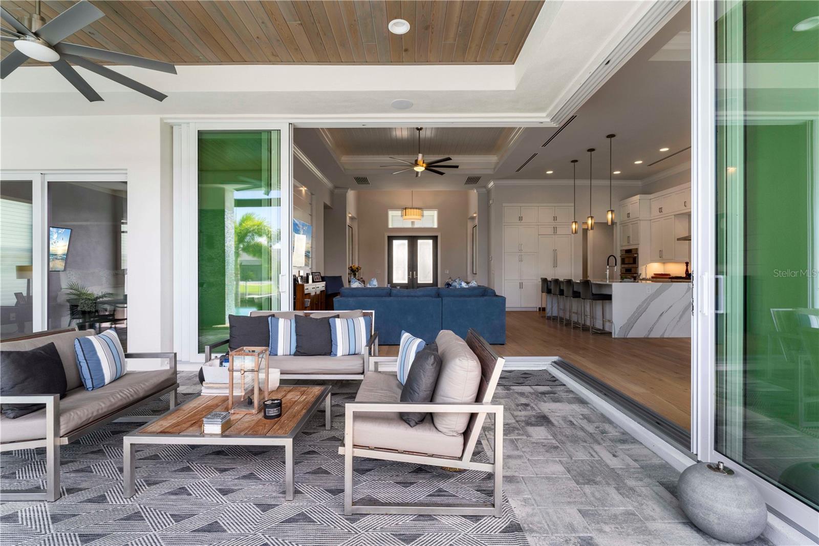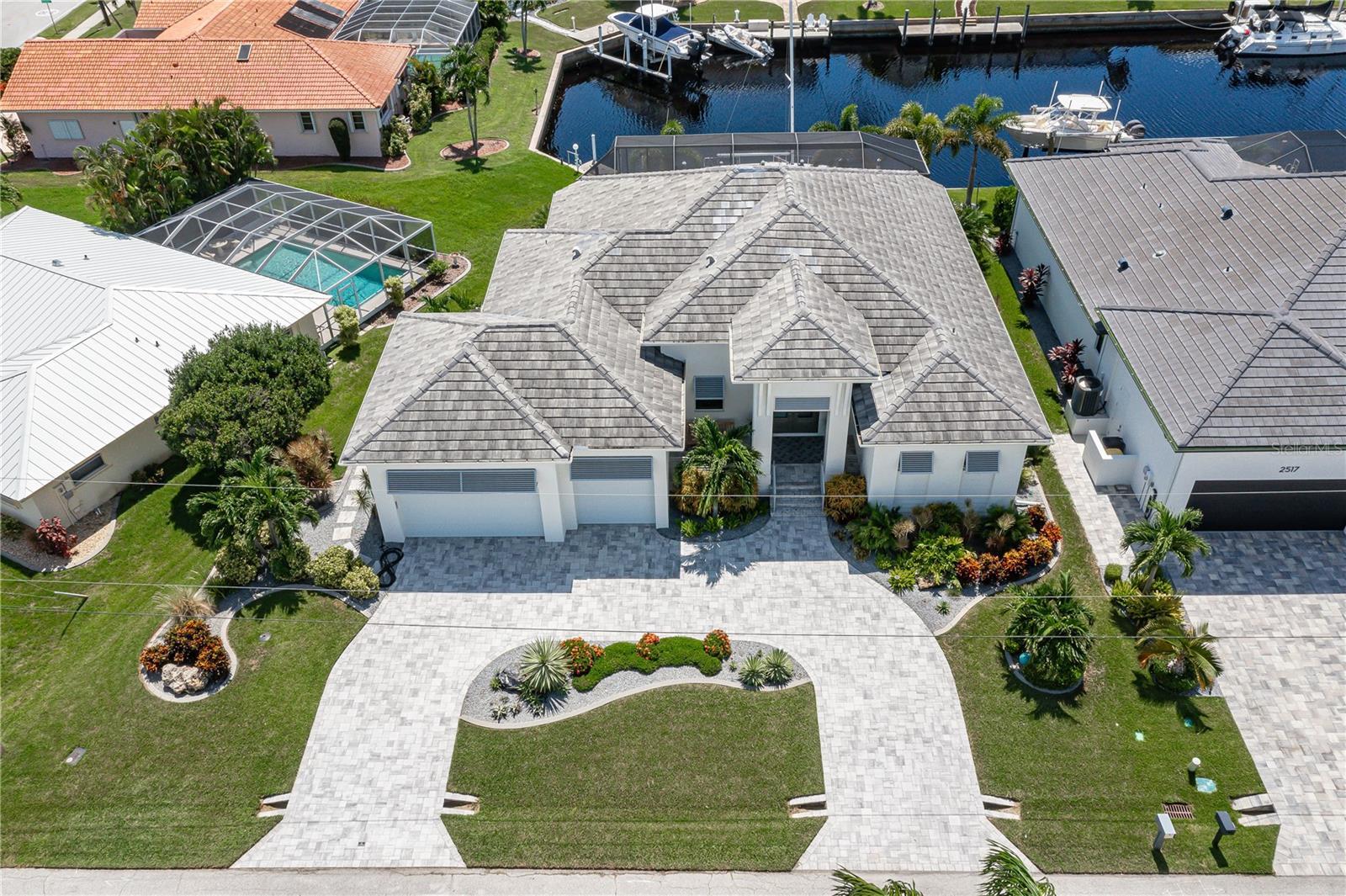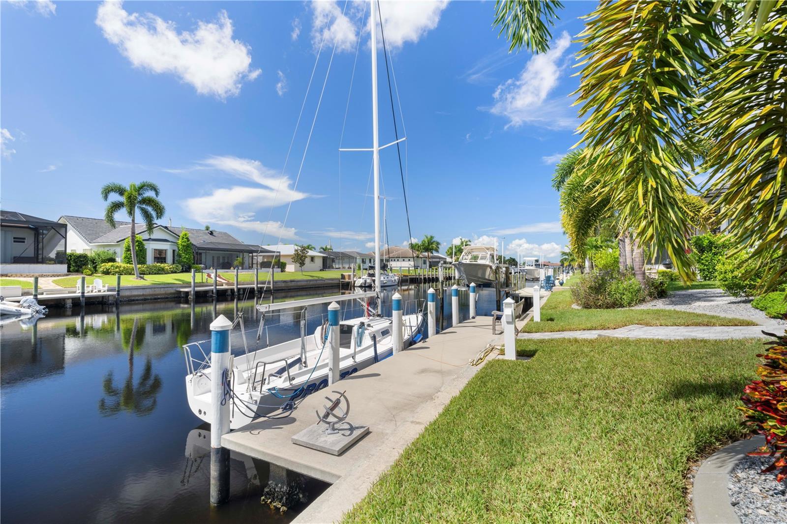 CUSTOM WATERFRONT HOME IN PUNTA GORDA ISLES W/QUICK SAIL ACCESS - A unique design collaboration between PGI Homes and a Yacht Design Engineer yields a detailed, exceptionally finished, bespoke home based on PGI Homes top-tier, platinum level Yachtsman floor plan. This exquisite, 3 bed/2 bath, waterfront home offers the ultimate in luxury waterfront living. Located on a sailboat-access canal, this home boasts not only lovely water views but also the luxury of quick sailboat access to Charlotte Harbor. The open-concept great room is filled with natural light thanks to zero-corner sliding glass doors that create a seamless transition to the outdoors. Perfect for entertaining, the large scale of all rooms makes this home feel airy & tropical but never crowded. Architectural details that add a layer of sophistication include Prosecco oak engineered hardwood plank flooring, soaring tray ceilings with tongue and groove details, 7 1/4-inch baseboards, crown molding and sleek Hunter Douglas roller window shades for added privacy. LED recessed lighting and commercial-grade HVAC diffusers ensure comfort and efficiency. Step into the heart of the home — a gourmet kitchen featuring quartz countertops, custom wood cabinetry, and a stunning waterfall island. Outfitted with top-of-the-line appliances, including a Wolf gas range, Bosch wall-mount oven and microwave, paneled Bosch refrigerator and dishwasher, and a U-Line wine cooler, this kitchen blends style and function seamlessly. Split bedroom floor plan features a spacious master retreat that offers walk-out access to the lanai, two large walk-in closets w/custom shelving systems and a spa-like master bath w/floating vanity, waterfall chandelier, walk-in shower w/floor-to-ceiling tile, oversized soaking tub & private WC. The guest rooms share a spa-inspired bath w/German Duravit floating vanity and oversized shower w/floor-to-ceiling tile & built-in bench. Step outside onto the lanai, where you’ll find an in-ground, heated saltwater pool featuring a sun ledge, faux infinity edge, and a beautiful mosaic tile waterfall. The lanai is also plumbed with water and propane, perfect for setting up an outdoor kitchen. Picture-frame pool cage ensures an unobstructed view of the canal, your private dock & sailboat. Steps from the lanai, you'll find the 37-foot concrete dock, equipped with dual utility pedestals providing light, water, and electricity, makes this home a boater’s paradise. Additional features include an attached three-car garage with epoxy flooring, paver circular driveway, Low-E impact-resistant windows for hurricane protection, whole house surge protection, security system, and complete perimeter rain gutters. The professionally landscaped yard creates the feel of a private oasis. Landscaping incudes Rainbird irrigation system, LED landscape lighting & stone mulch planters w/curbing. Picture yourself lounging on the lanai throughout the day knowing your sailboat is moored safely only a few yards away. Claim your spot in paradise today.