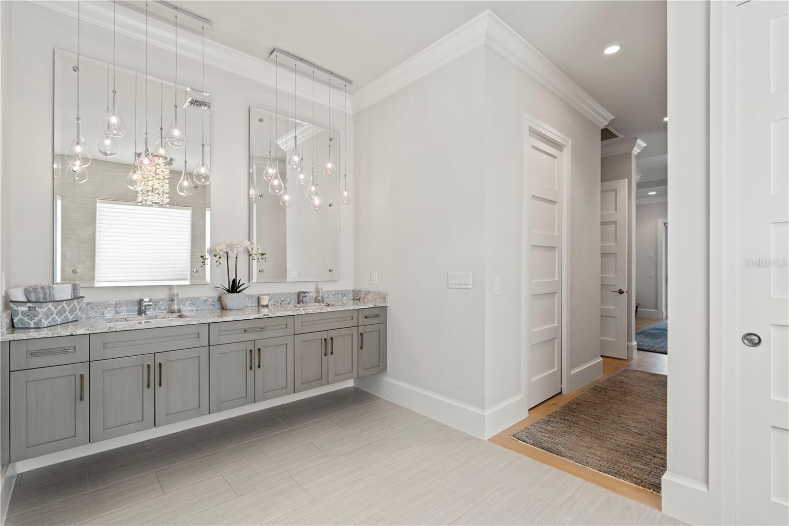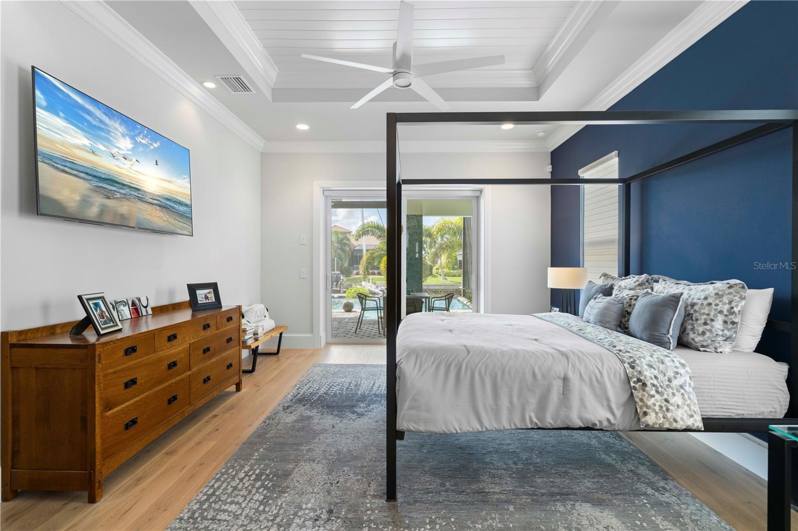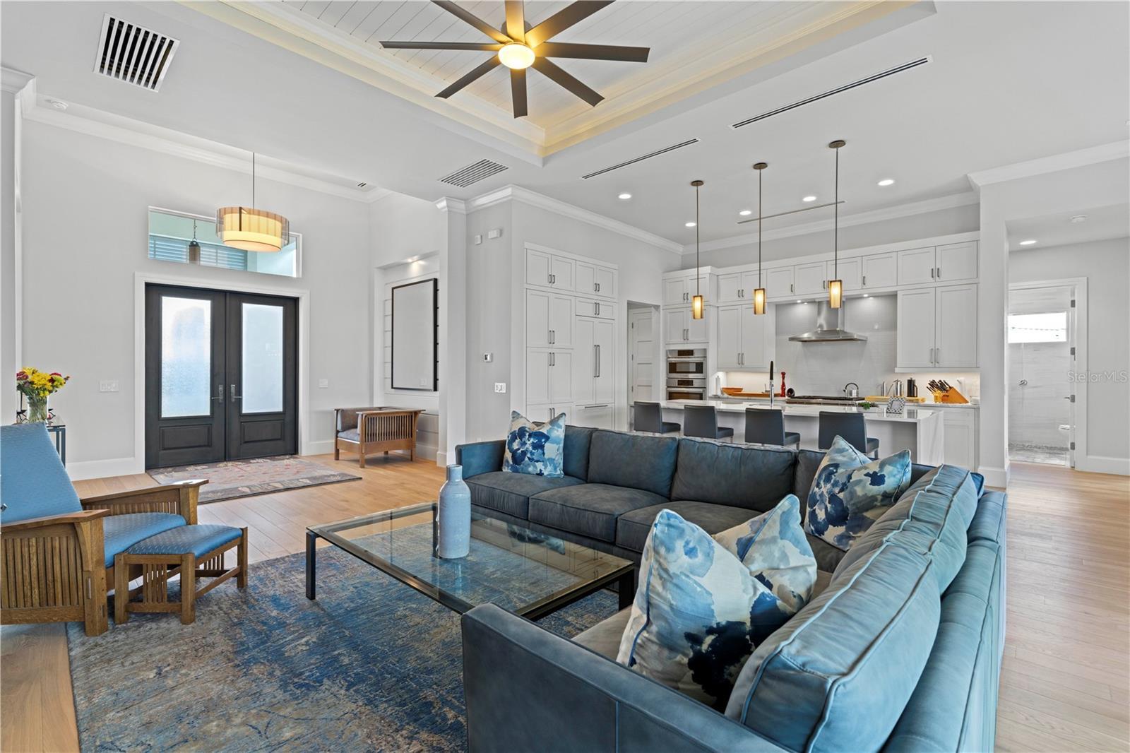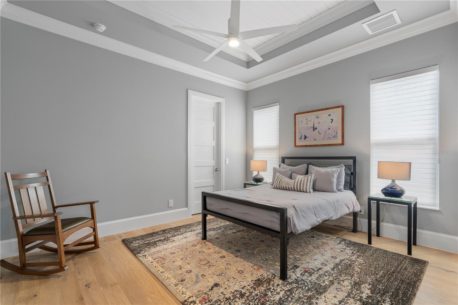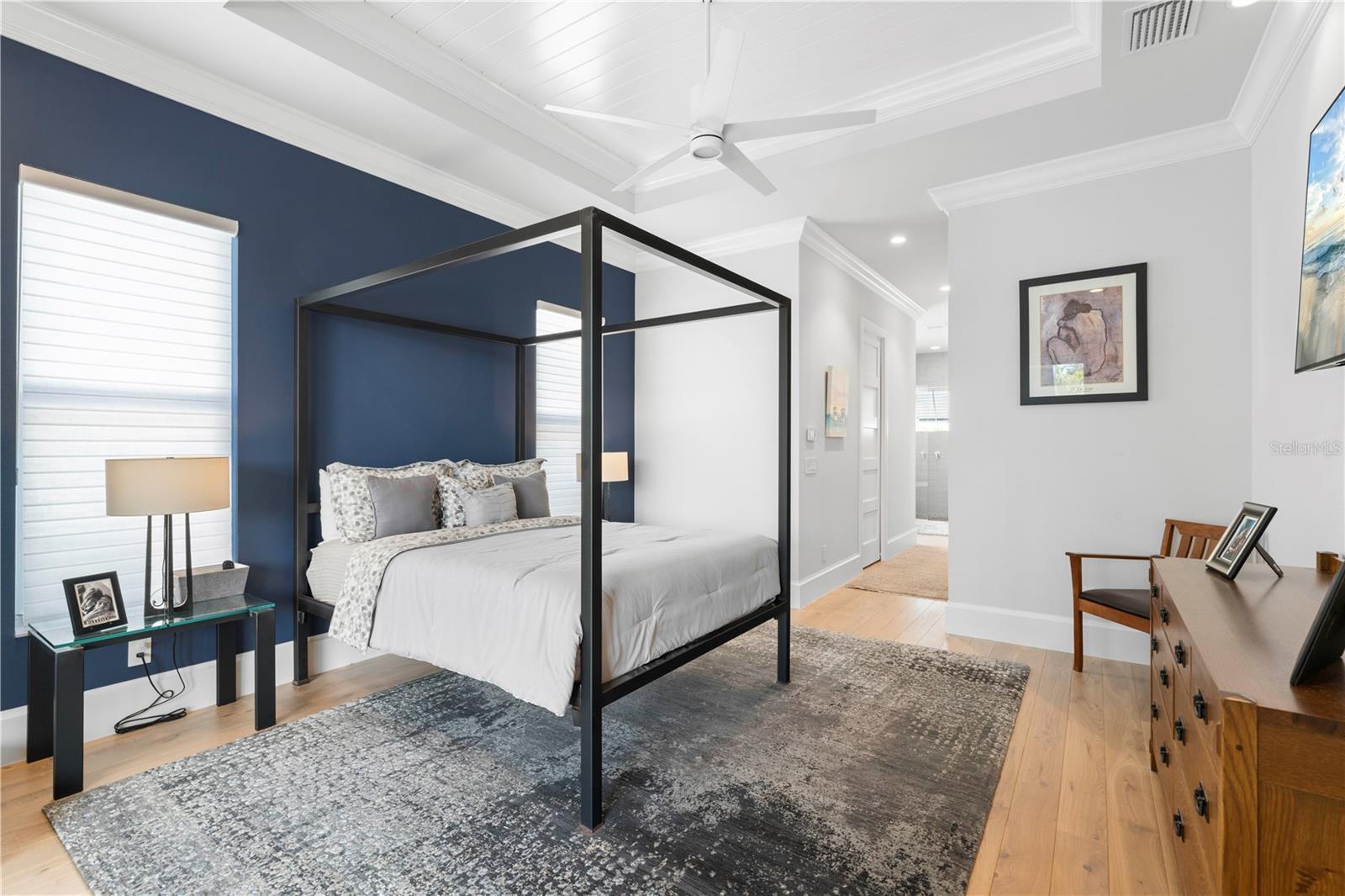 - Ceiling Fans(s), Crown Molding, High Ceilings, Open Floorplan, Solid Wood Cabinets, Split Bedroom, Stone Counters, Tray Ceiling(s), Walk-In Closet(s)