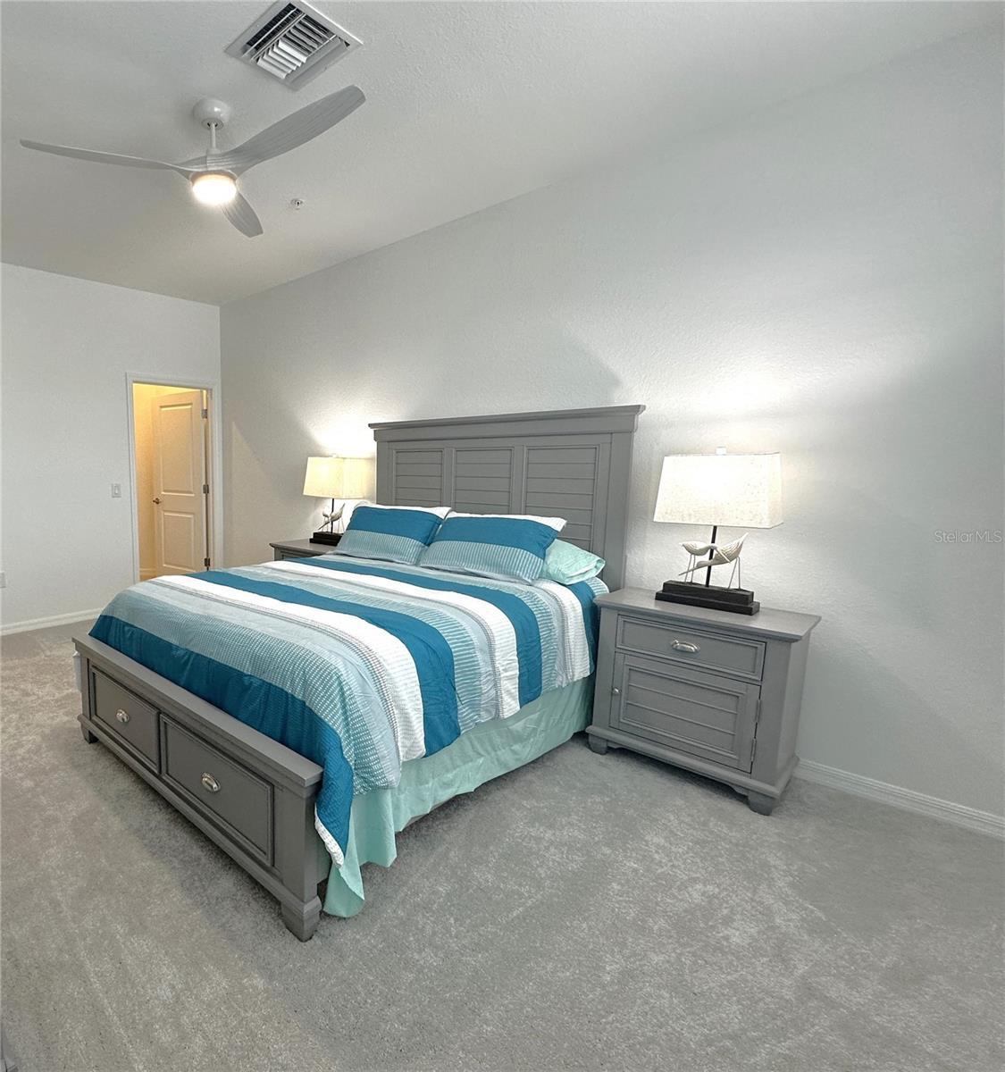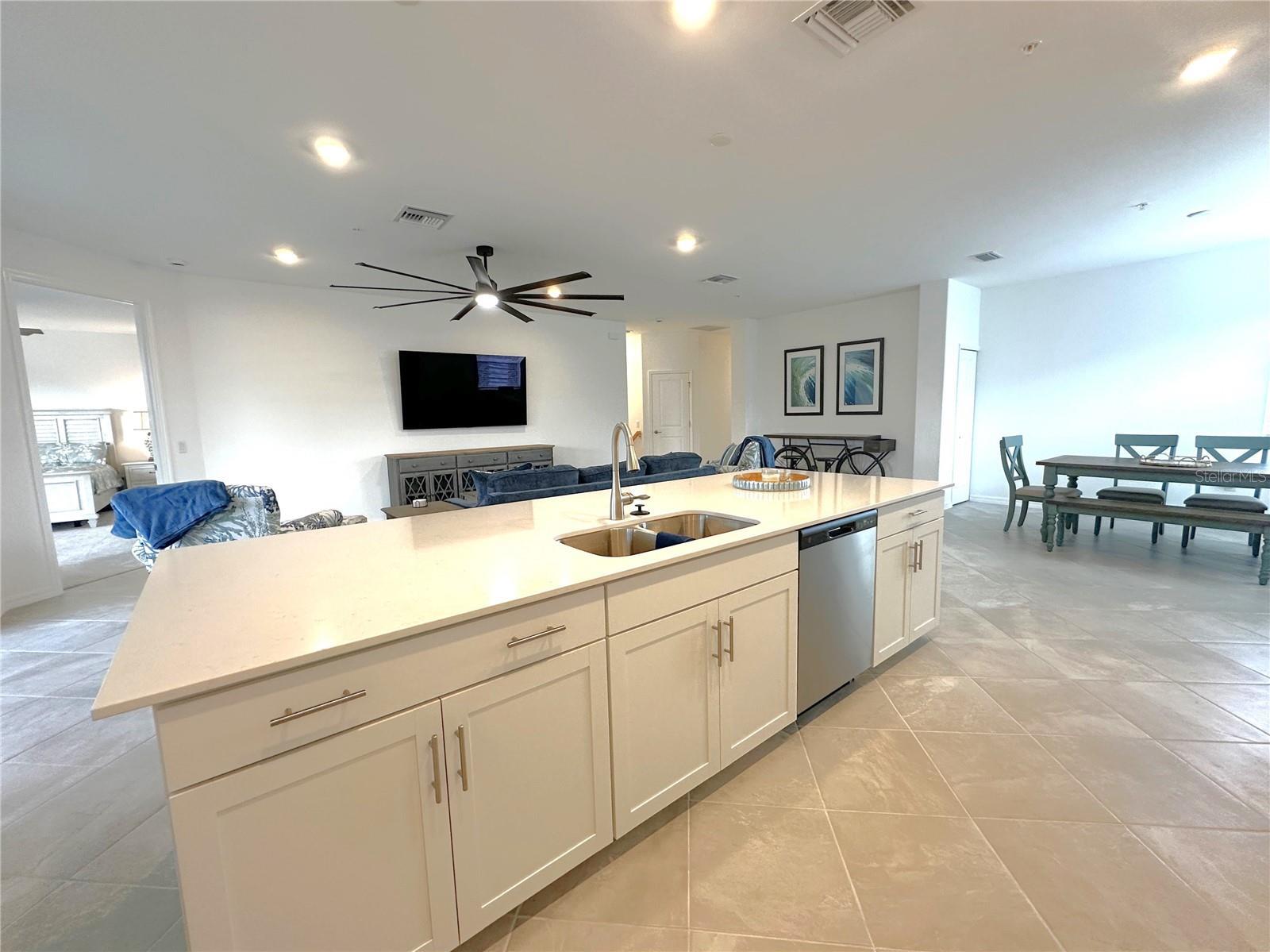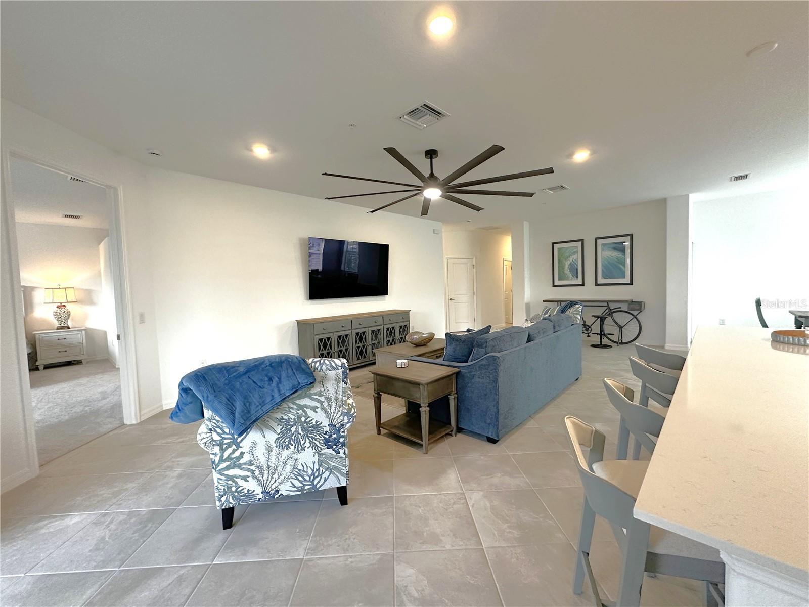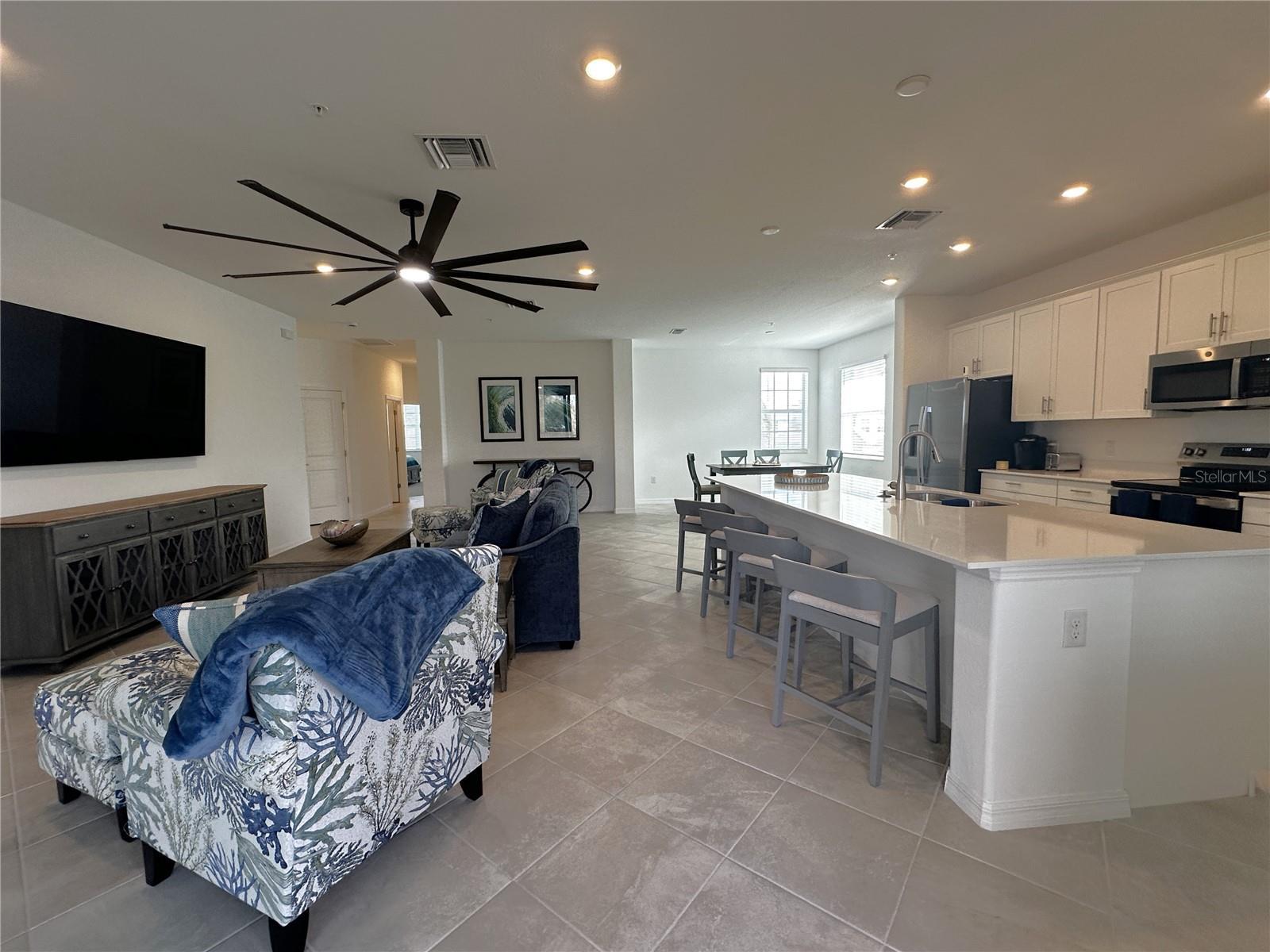 - Ceiling Fans(s), Eat-in Kitchen, High Ceilings, Open Floorplan, Stone Counters, Thermostat, Walk-In Closet(s), Window Treatments