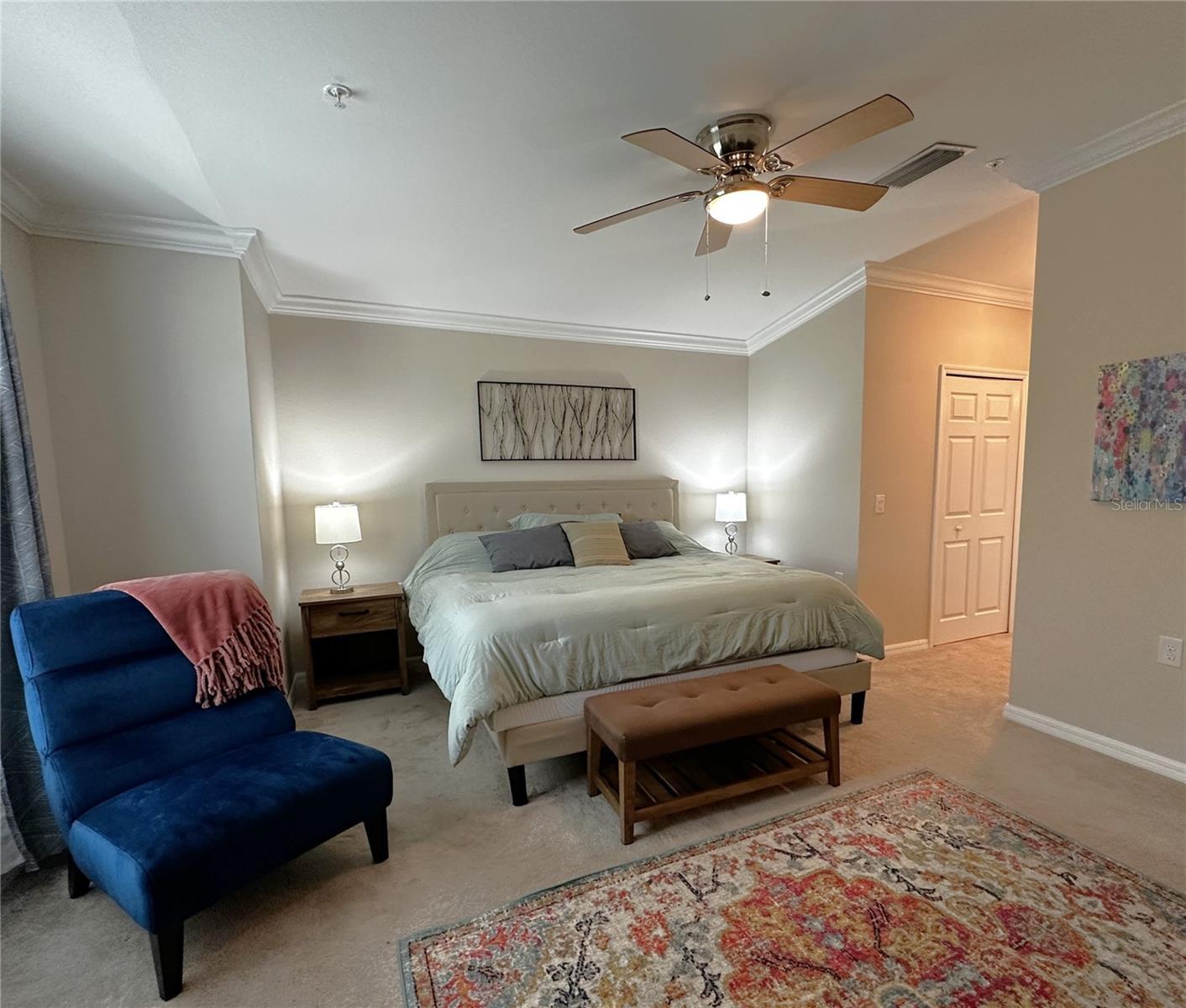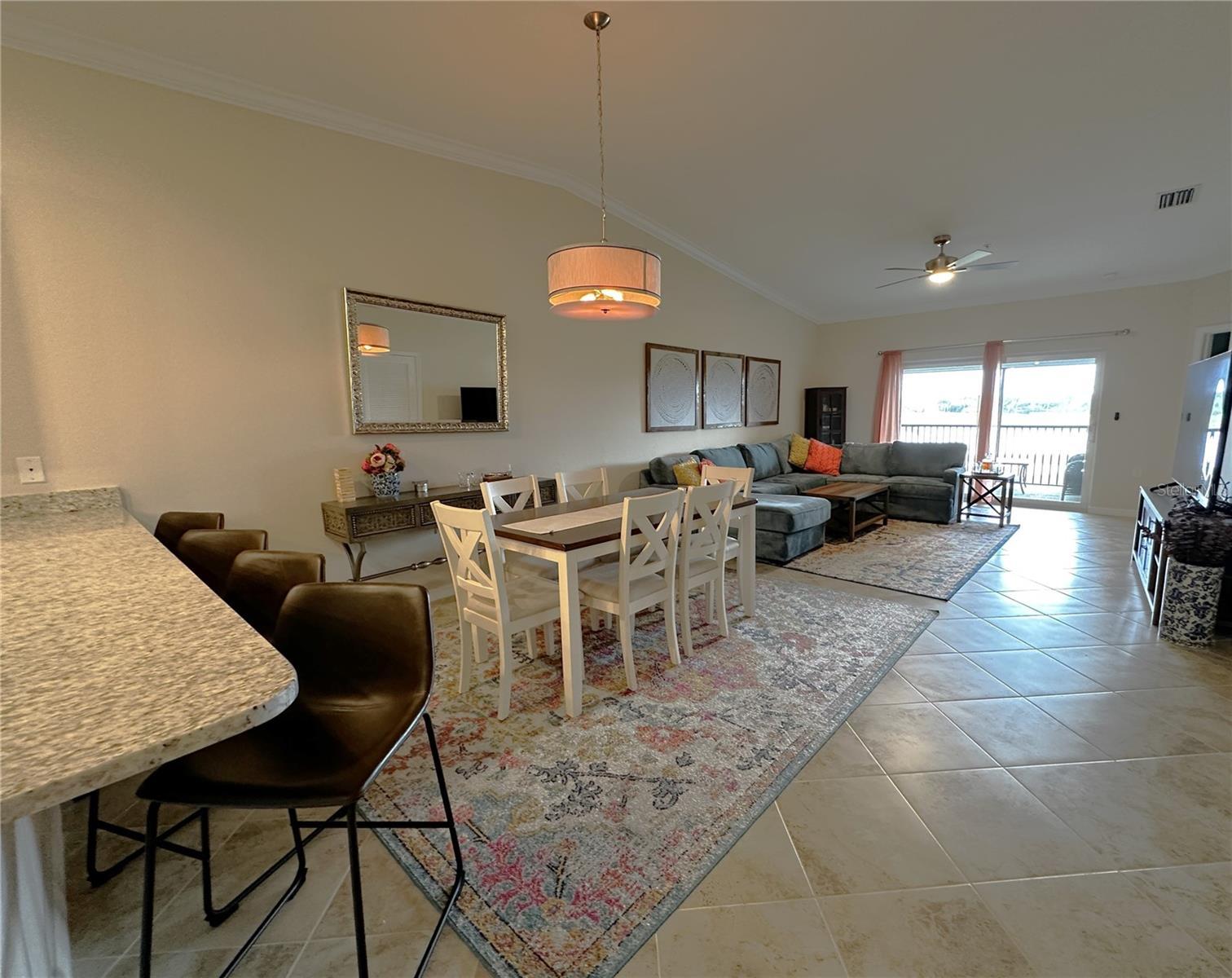 - Ceiling Fans(s), Crown Molding, Eat-in Kitchen, High Ceilings, Kitchen/Family Room Combo, Living Room/Dining Room Combo, Open Floorplan, Stone Counters, Thermostat, Walk-In Closet(s), Window Treatments