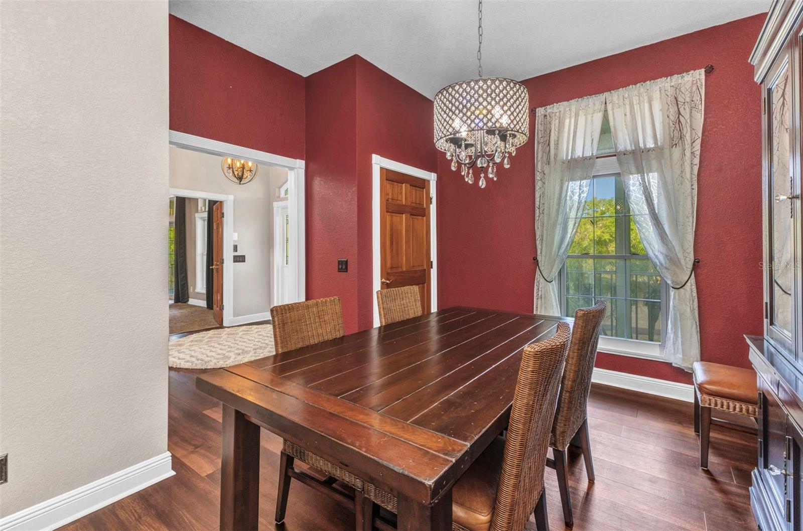 - Built-in Features, Central Vaccum, Crown Molding, Eat-in Kitchen, High Ceilings, Living Room/Dining Room Combo, Primary Bedroom Main Floor, Solid Surface Counters, Solid Wood Cabinets, Split Bedroom, Thermostat, Walk-In Closet(s), Wet Bar, Window Treatments