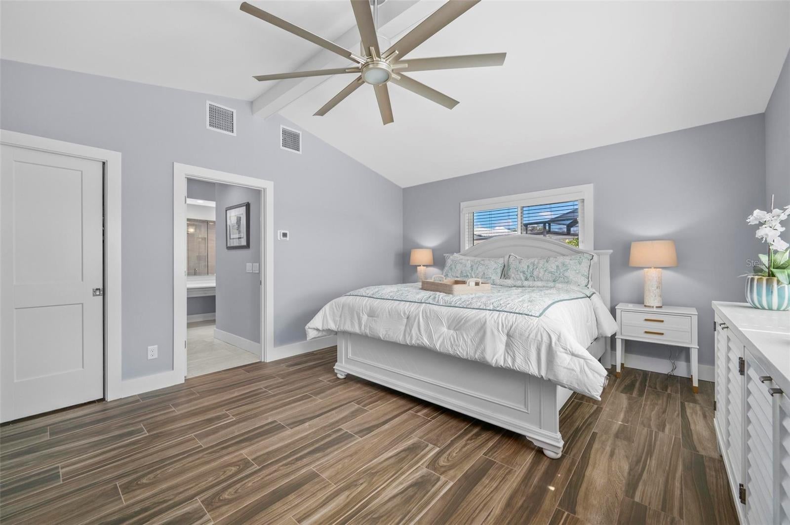 - Ceiling Fans(s), High Ceilings, Open Floorplan, Solid Surface Counters, Split Bedroom, Stone Counters, Vaulted Ceiling(s), Walk-In Closet(s), Window Treatments