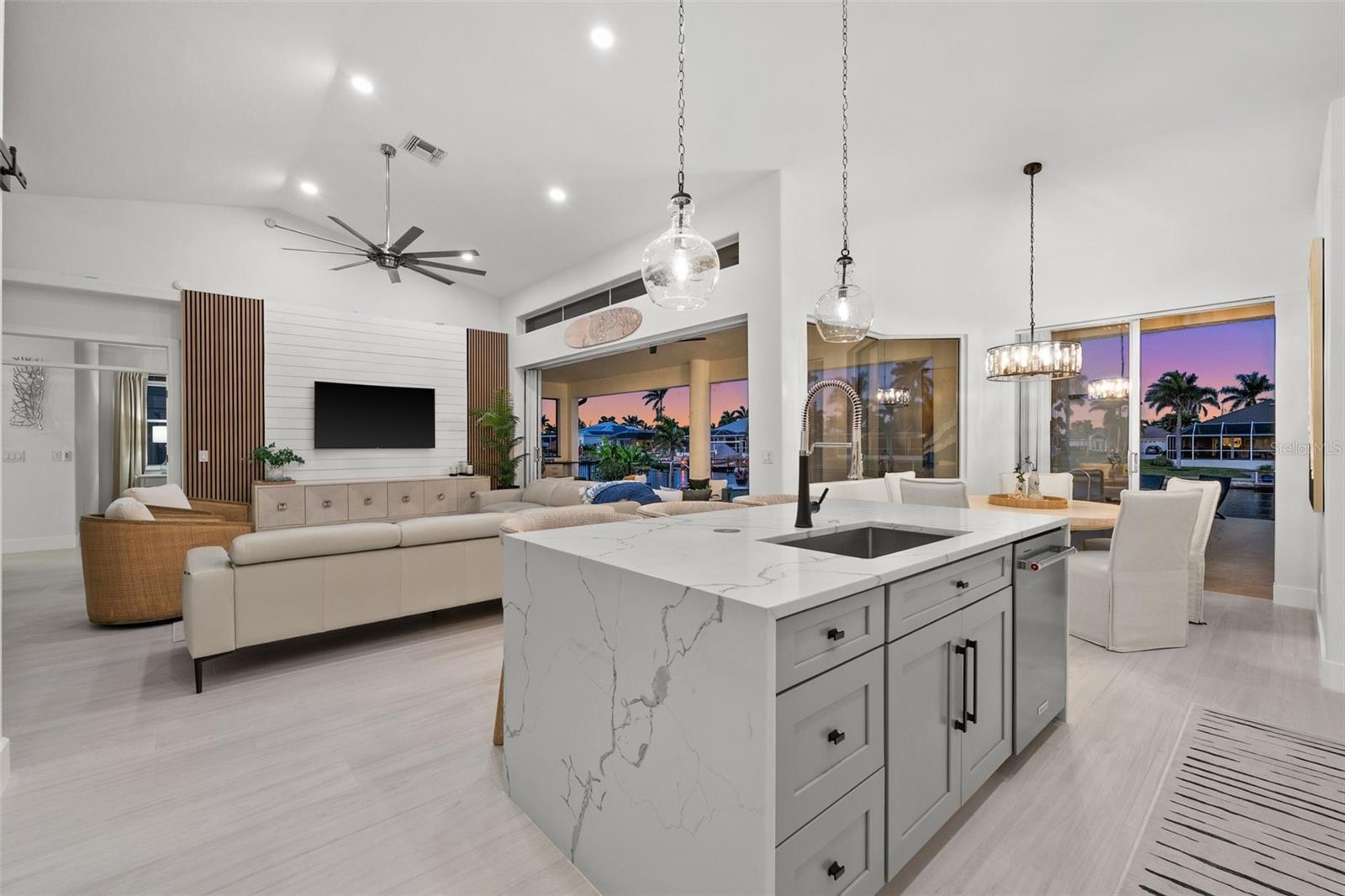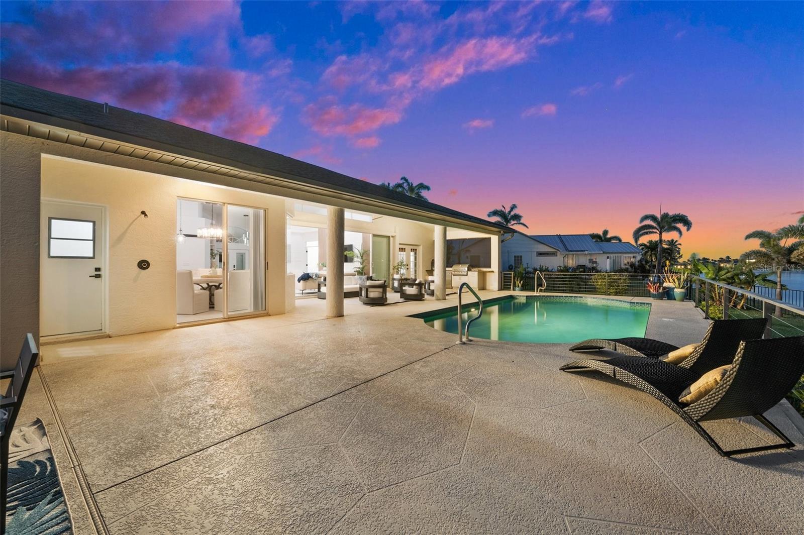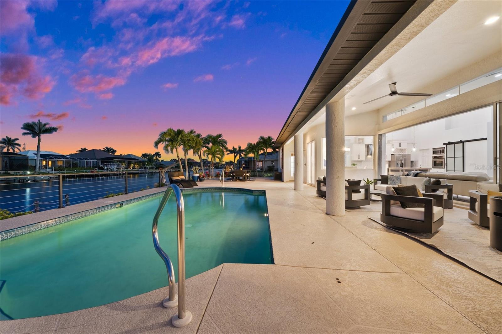 Under contract-accepting backup offers. PRICED TO SELL! Live the ultimate Southwest Florida lifestyle in this beautifully updated FURNISHED Gulf-access pool home located just minutes from Cape Harbour's shops, restaurants, and marina. Situated on an oversized, fenced triple lot with 120 FEET OF GULF ACCESS WATERFRONT, this 3-bedroom, 3-bath home with a private OFICE offers wide canal views and plenty of room to relax and entertain. The open-concept layout features high ceilings, new porcelain tile flooring throughout, and pocketing sliders in the great room for seamless indoor-outdoor living. The island kitchen is updated, modern and coastal, with quartz countertops, stainless appliances, a breakfast bar, upgraded lighting, and a new tile backsplash. The spacious primary suite includes French doors to the lanai, a walk-in closet, and a fully remodeled en suite bath with dual sinks, a freestanding soaking tub, and a glass-enclosed shower. Two guest bedrooms, a dedicated office, a full guest bath, and a pool bath provide comfort and flexibility for family or visitors. Outside, enjoy a large covered lanai, brand-new outdoor kitchen with built-in grill and beverage fridge, and an expansive pool deck surrounding the sparkling pool. Recent upgrades include whole-house re-piping, a new electrical panel, new water heater, new dishwasher, remodeled bathrooms, updated lighting and fixtures, fresh interior and garage paint, and new landscaping. A circular driveway and lush tropical setting enhance the curb appeal. With quick access to open water and NO FLOODING during Ian, Helene, or Milton, this is a true Cape Coral waterfront retreat. ROOF 2023 AC 2025 POOL HEATER 2025