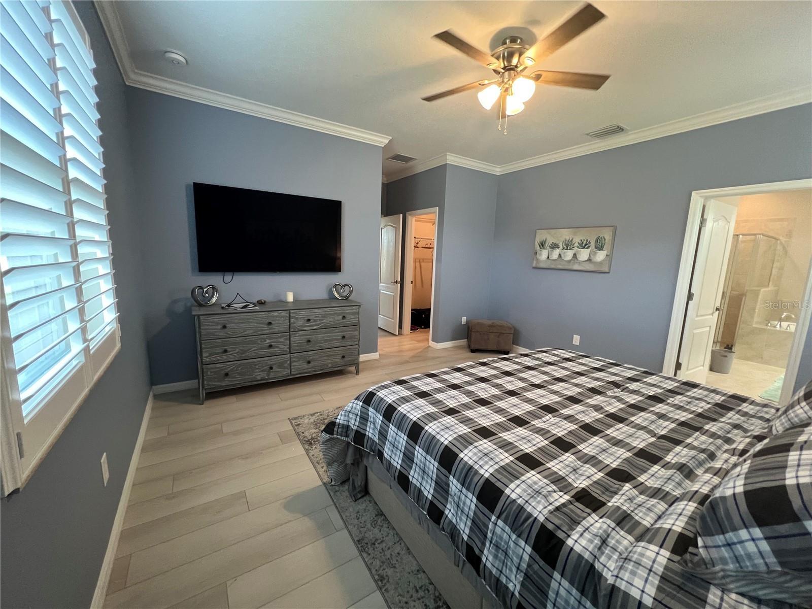 - Ceiling Fans(s), Crown Molding, In Wall Pest System, Open Floorplan, Stone Counters, Walk-In Closet(s)