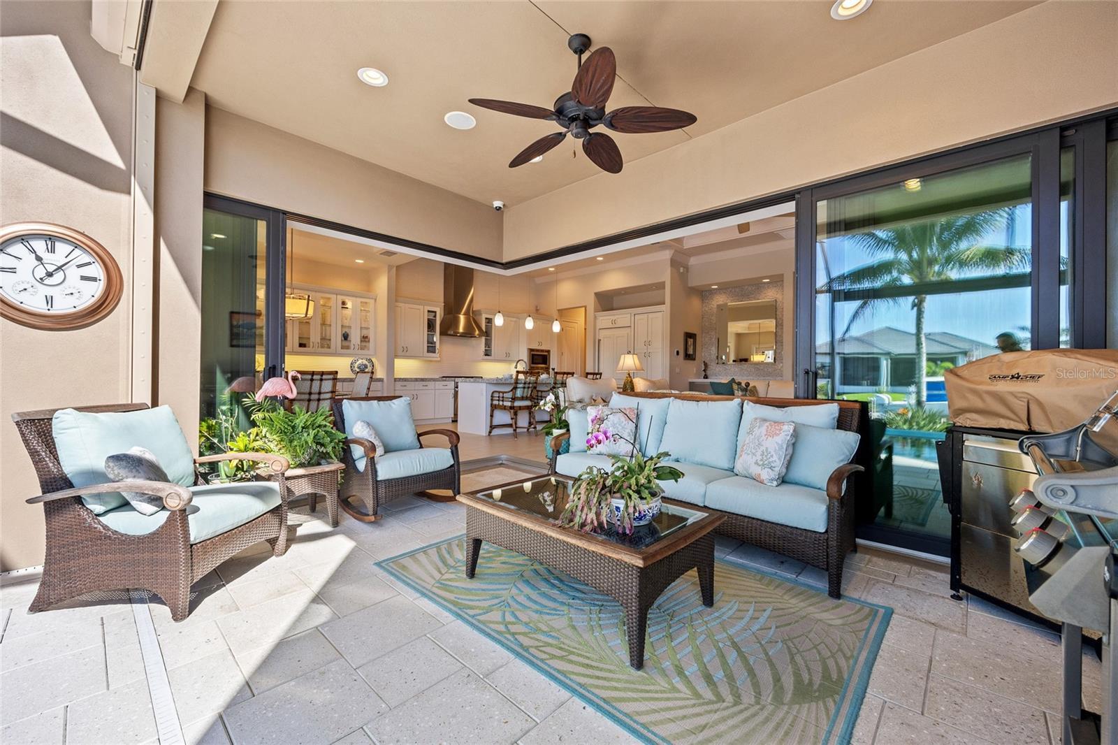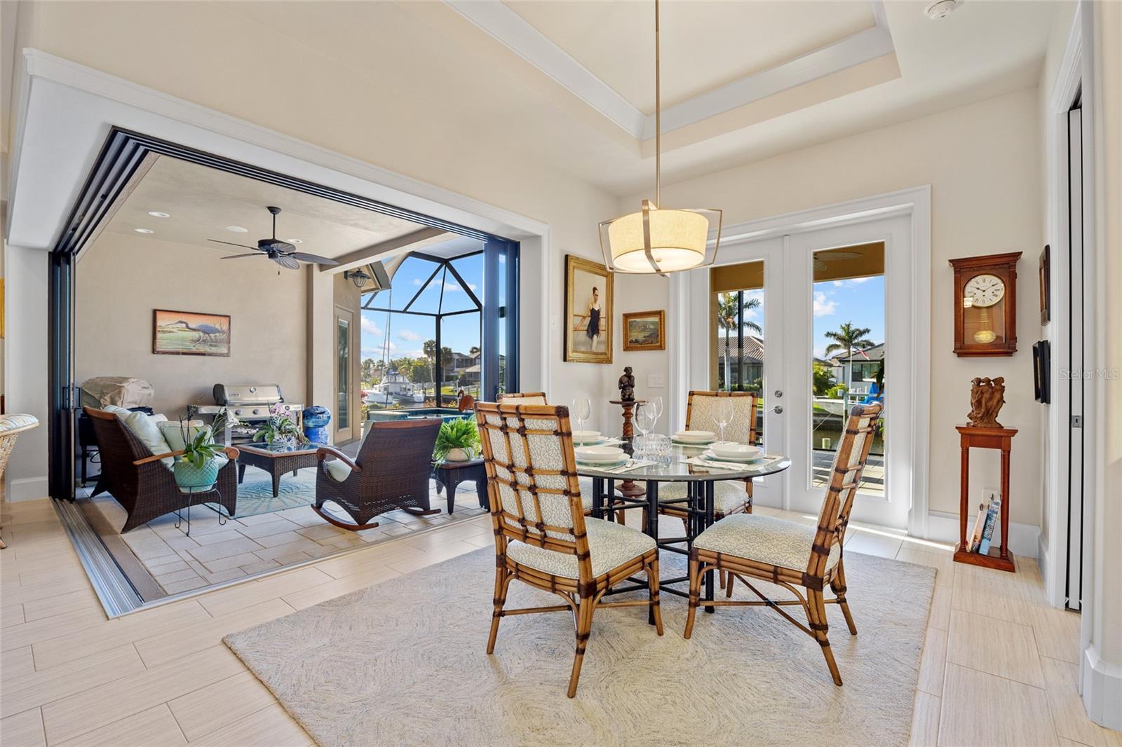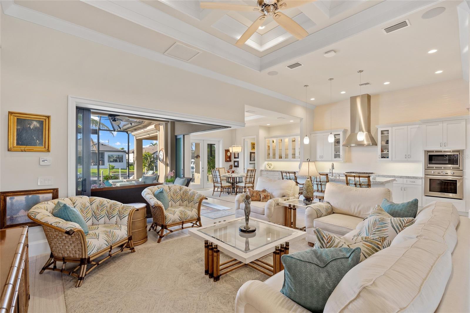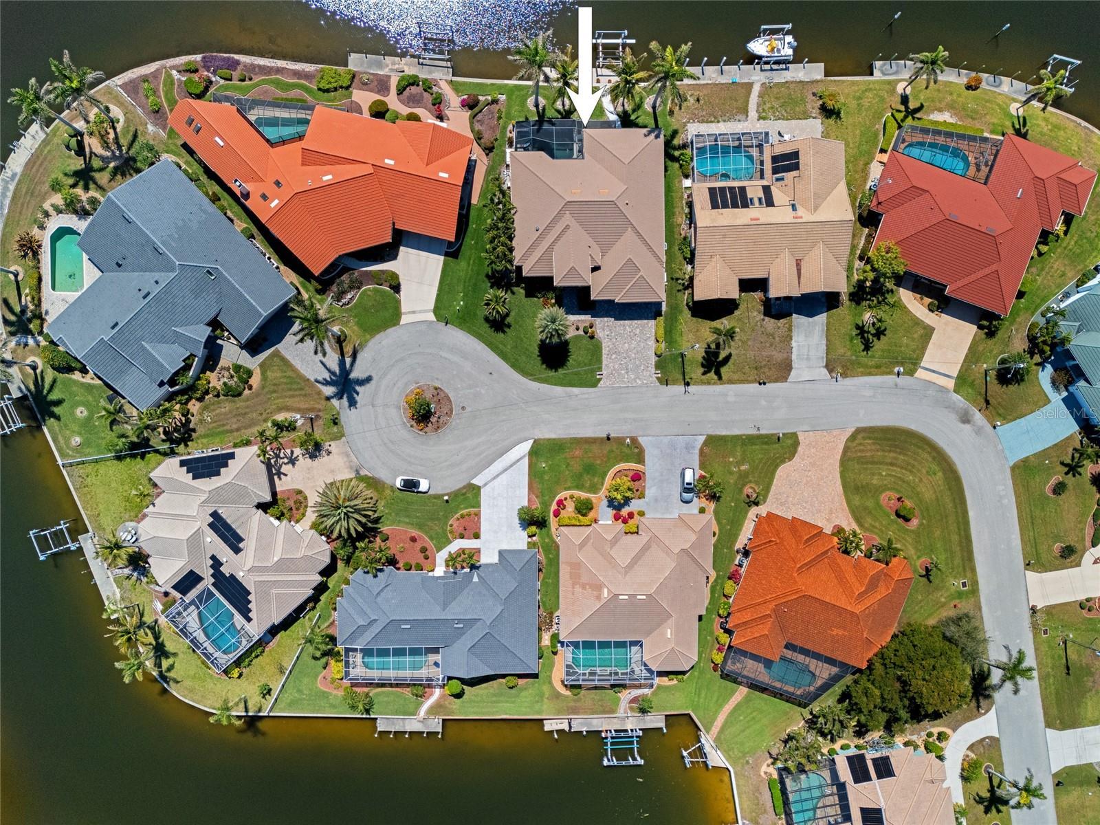 Punta Gorda Isles! Stunning 3 bedroom plus office, 3 bath, 3-car garage waterfront pool home built by prestigious PGI Builders with quick sailboat access to Charlotte Harbor leading to the Gulf of Mexico via Ponce Inlet! For the boating enthusiast, this south facing lanai home features a remote-operated boat lift currently set for a 10,000 lb. boat with power available for up to 20,000 lbs. plus electric and water dockside. Custom built to withstand 200 mph winds and offers PGT impact windows and motorized Storm Smart hurricane shades ensuring peace of mind. Step inside to an elegant open floor plan rich in every detail including coffered and tray ceilings, abundant can lights with dimmer switches for customizable ambiance, crown molding, 8’ doors, motorized shades and high-quality porcelain tile throughout. The great room features separate bar and zero-corner slider to lanai seamlessly blending indoor and outdoor living space. The kitchen is a chef's delight, equipped with a propane gas stove, built-in refrigerator, soft-close cabinets, pull-out drawers, discreet under-cabinet outlets, center island with breakfast bar and large pantry with hidden entrance next to refrigerator. The primary suite features an abundance of natural light, dual custom walk-in closets and a luxurious ensuite with dual vanities, soaking tub, walk-in shower and Toto smart toilet. Split floor plan provides privacy for all. The outdoor entertaining area offers covered lanai, sparkling heated PebbleTec pool and spa with fountain and waterfall features plus panoramic screen to enjoy unobstructed water views. A 500 gallon in-ground propane tank powers Generac whole house generator, pool and spa heater, outdoor grill, and stovetop. Additional special features include custom closet systems in all bedrooms, an overabundance of storage space, state of the art security system with four exterior cameras, surround sound audio/visual setup with ceiling speakers throughout, Kinetico water filtration system, front door retractable screens, automatic irrigation system to water potted plants on lanai and cabana, plus lush tropical landscaping and automatic exterior landscape lighting system surround the home providing amazing curb appeal. Nestled on a quiet cul-de-sac street in a popular golf and boating community, this home is just minutes from St. Andrews South Golf Club, the Yacht Club, Fishermen's Village, and the historic downtown area of Punta Gorda. Enjoy access to arts, community events, entertainment, world-class fishing, boating, fine dining, and beautiful parks, as well as easy access to the SWFL gulf beaches. Don't miss your chance to own this waterside treasure! Schedule your private showing today!