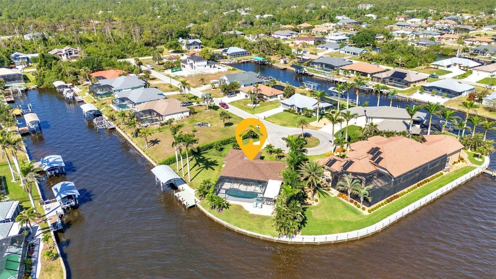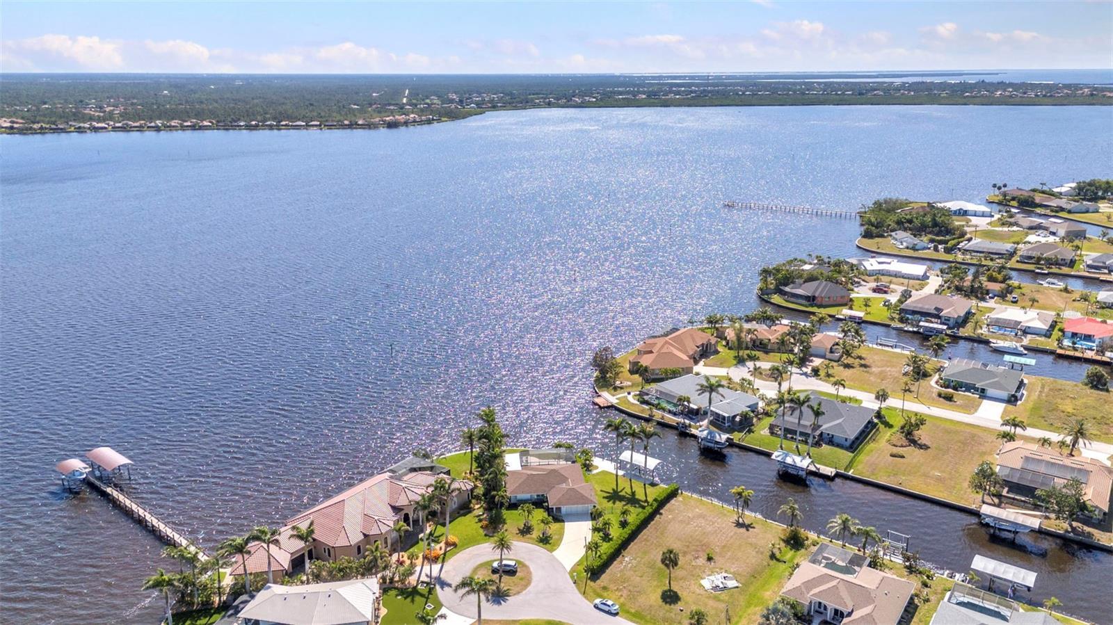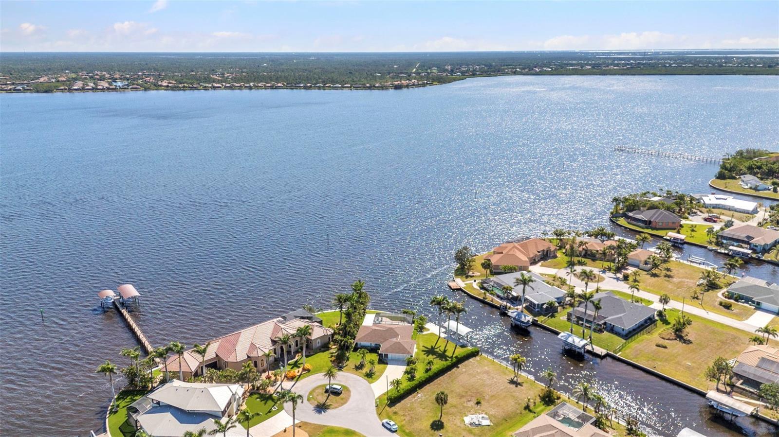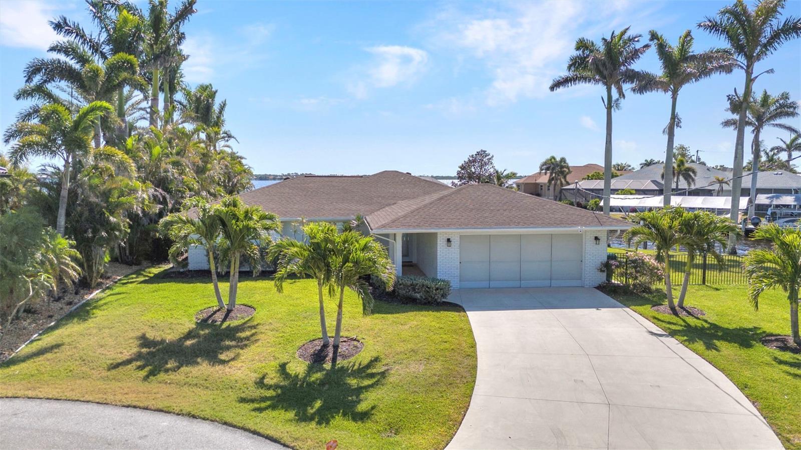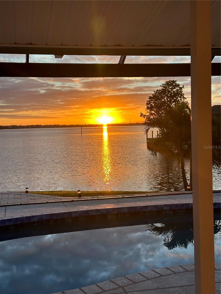 Jaw-Dropping Myakka River Views from This Oversized Tip Lot in Gulf Cove! Perfectly positioned on an oversized tip lot with 160 feet of concrete seawall, this remodeled 2-bedroom, 2-bath waterfront home with 12,000 lb. boat lift offers some of the most spectacular, unobstructed views of the Myakka River you’ll find in Gulf Cove. Whether it's sunrise reflections or glowing sunsets, the backdrop is pure magic. Located at the end of a quiet cul-de-sac, this bright and beautiful home was renovated just two years ago with timeless finishes and thoughtful upgrades throughout. The open split floor plan features elegant 28" porcelain tile flooring, a soft white palette, and a seamless flow between indoor and outdoor living spaces. The kitchen is a showpiece, designed with both beauty and functionality in mind. You'll find a waterfall island with storage, sleek stone countertops, soft-close solid wood cabinetry with pull-out drawers, top-of-the-line stainless appliances, a farmhouse sink and a pantry with additional pull-outs for easy organization. Just off the dining area, a built-in beverage station with a wine fridge and matching cabinetry adds a perfect touch for entertaining. The spacious ensuite primary offers sliding doors to the lanai, a walk-in closet, dual sinks, and a large tiled walk-in shower. On the opposite side of the home, the guest bedroom also features sliding doors to the lanai, along with a nearby full bath, ideal for visitors seeking privacy and comfort. Two sets of sliding doors from the main living space lead to the expansive paver lanai, where a heated pool, a recently resurfaced deck, and a panoramic screen create a resort-style space to relax and take in those incredible views. Whether you're savoring your morning coffee in the gentle breeze or enjoying a glass of wine as the sky turns gold at sunset, the lanai becomes your front-row seat to the beauty and tranquility of waterfront living. Just beyond the screen enclosure, a paver walkway and Trex deck guide you to your covered 12,000 lb. boat lift, ready for spontaneous boat days and sunset cruises. Lush tropical landscaping wraps the home in beauty and privacy, making it feel like a true retreat. Additional highlights include custom blinds & shutters, impact-resistant windows and doors, an oversized two-car garage with a laundry area, utility sink and a retractable screen to let in light and fresh air. This home remained dry during recent storms and is ready for new memories to be made. Furnishings are negotiable outside of the contract, making your move-in even easier. Conveniently located near shopping, dining, entertainment, and some of Southwest Florida’s most beautiful beaches, this home is perfect for anyone who seeks luxury, sophistication and breathtaking views. Don’t miss out on the opportunity to own this exquisite piece of paradise!