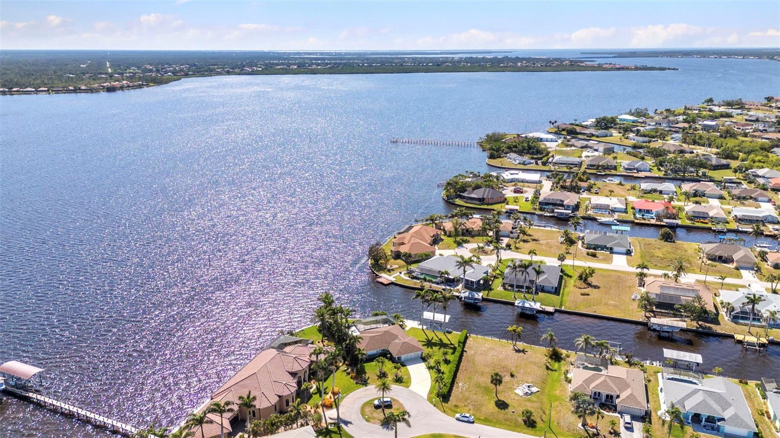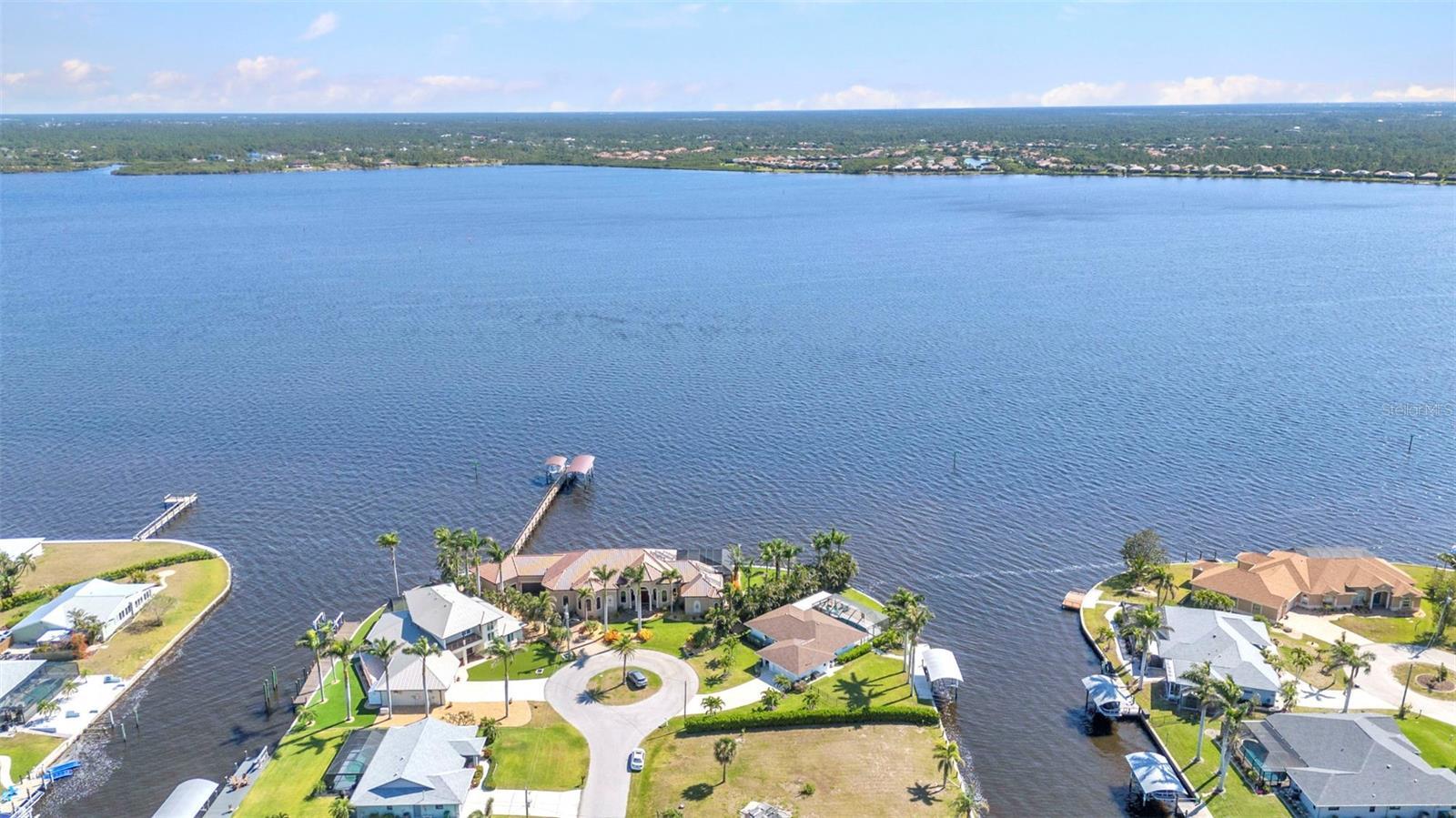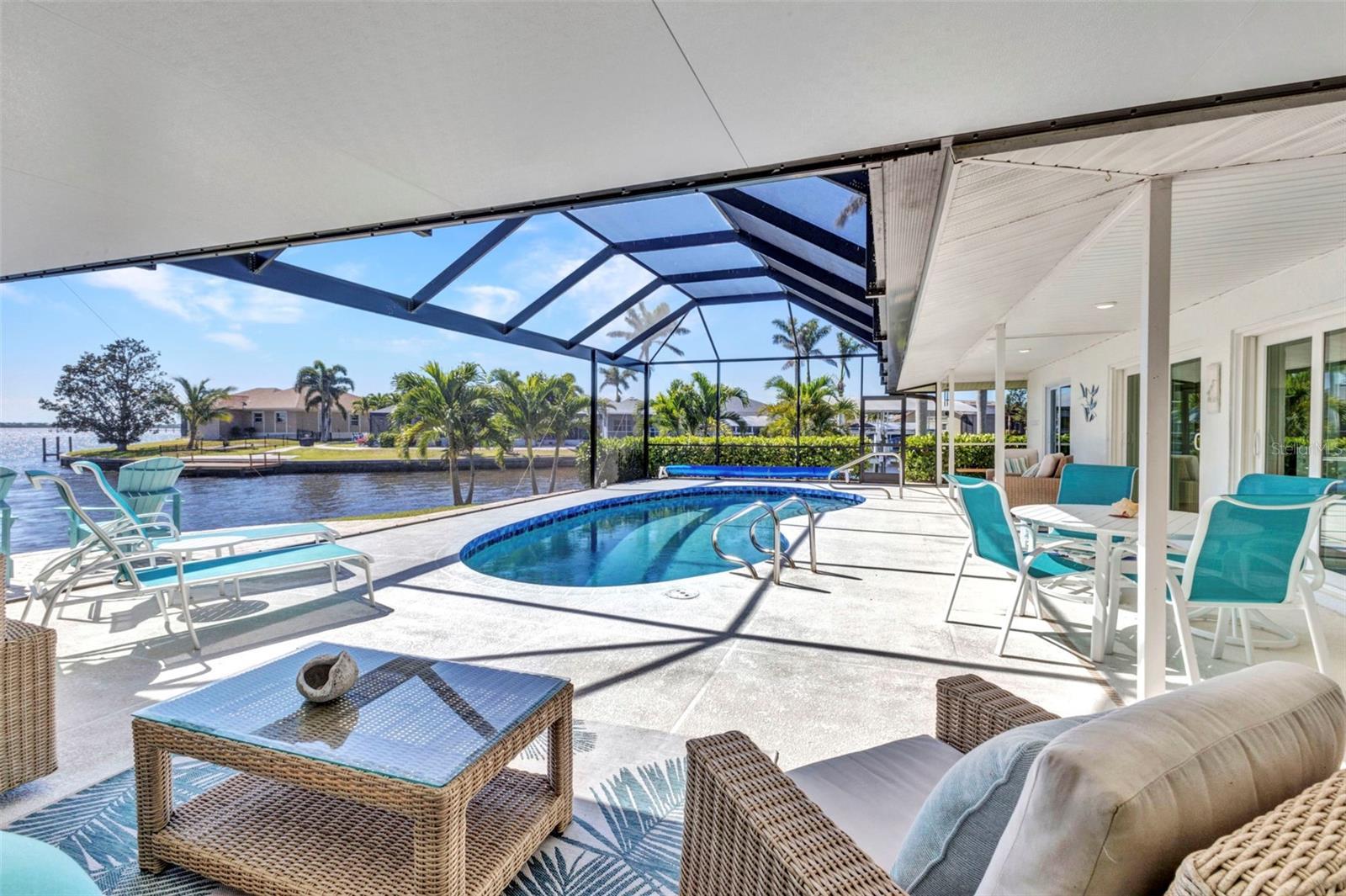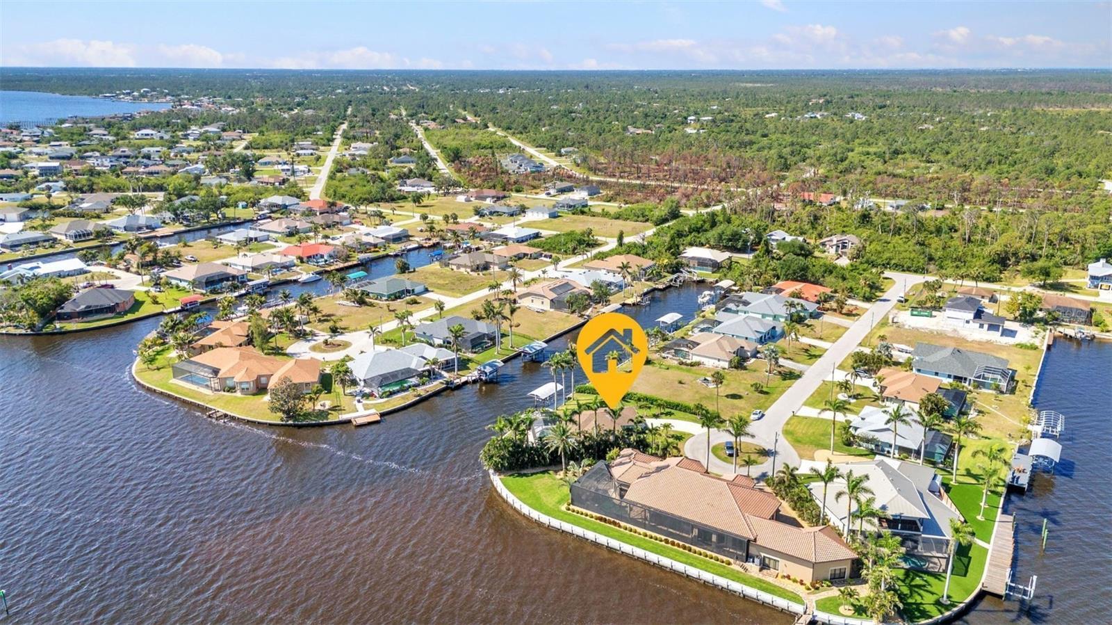 Jaw-Dropping Myakka River Views from This Oversized Tip Lot in Gulf Cove! Perfectly positioned on an oversized tip lot with 160 feet of concrete seawall, this remodeled 2-bedroom, 2-bath waterfront home with 12,000 lb. boat lift offers some of the most spectacular, unobstructed views of the Myakka River you’ll find in Gulf Cove. Whether it's sunrise reflections or glowing sunsets, the backdrop is pure magic. Located at the end of a quiet cul-de-sac, this bright and beautiful home was renovated just two years ago with timeless finishes and thoughtful upgrades throughout. The open split floor plan features elegant 28" porcelain tile flooring, a soft white palette, and a seamless flow between indoor and outdoor living spaces. The kitchen is a showpiece, designed with both beauty and functionality in mind. You'll find a waterfall island with storage, sleek stone countertops, soft-close solid wood cabinetry with pull-out drawers, top-of-the-line stainless appliances, a farmhouse sink and a pantry with additional pull-outs for easy organization. Just off the dining area, a built-in beverage station with a wine fridge and matching cabinetry adds a perfect touch for entertaining. The spacious ensuite primary offers sliding doors to the lanai, a walk-in closet, dual sinks, and a large tiled walk-in shower. On the opposite side of the home, the guest bedroom also features sliding doors to the lanai, along with a nearby full bath, ideal for visitors seeking privacy and comfort. Two sets of sliding doors from the main living space lead to the expansive paver lanai, where a heated pool, a recently resurfaced deck, and a panoramic screen create a resort-style space to relax and take in those incredible views. Whether you're savoring your morning coffee in the gentle breeze or enjoying a glass of wine as the sky turns gold at sunset, the lanai becomes your front-row seat to the beauty and tranquility of waterfront living. Just beyond the screen enclosure, a paver walkway and Trex deck guide you to your covered 12,000 lb. boat lift, ready for spontaneous boat days and sunset cruises. Lush tropical landscaping wraps the home in beauty and privacy, making it feel like a true retreat. Additional highlights include custom blinds & shutters, impact-resistant windows and doors, an oversized two-car garage with a laundry area, utility sink and a retractable screen to let in light and fresh air. This home remained dry during recent storms and is ready for new memories to be made. Furnishings are negotiable outside of the contract, making your move-in even easier. Conveniently located near shopping, dining, entertainment, and some of Southwest Florida’s most beautiful beaches, this home is perfect for anyone who seeks luxury, sophistication and breathtaking views. Don’t miss out on the opportunity to own this exquisite piece of paradise!