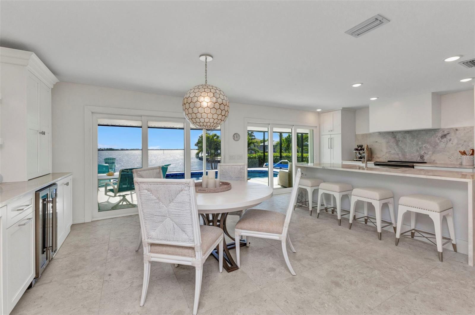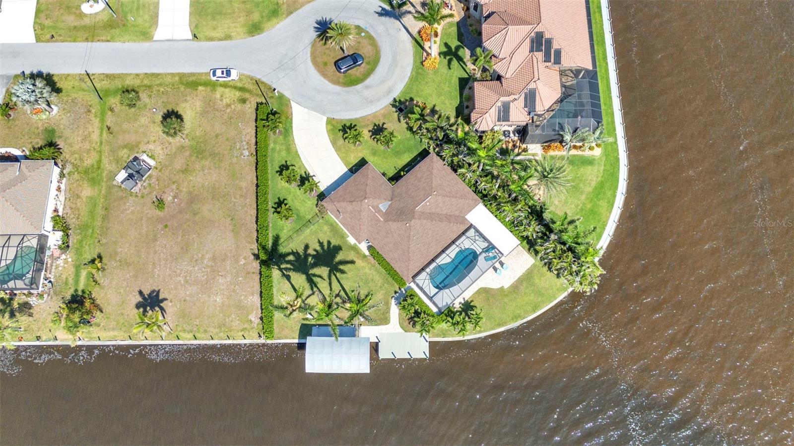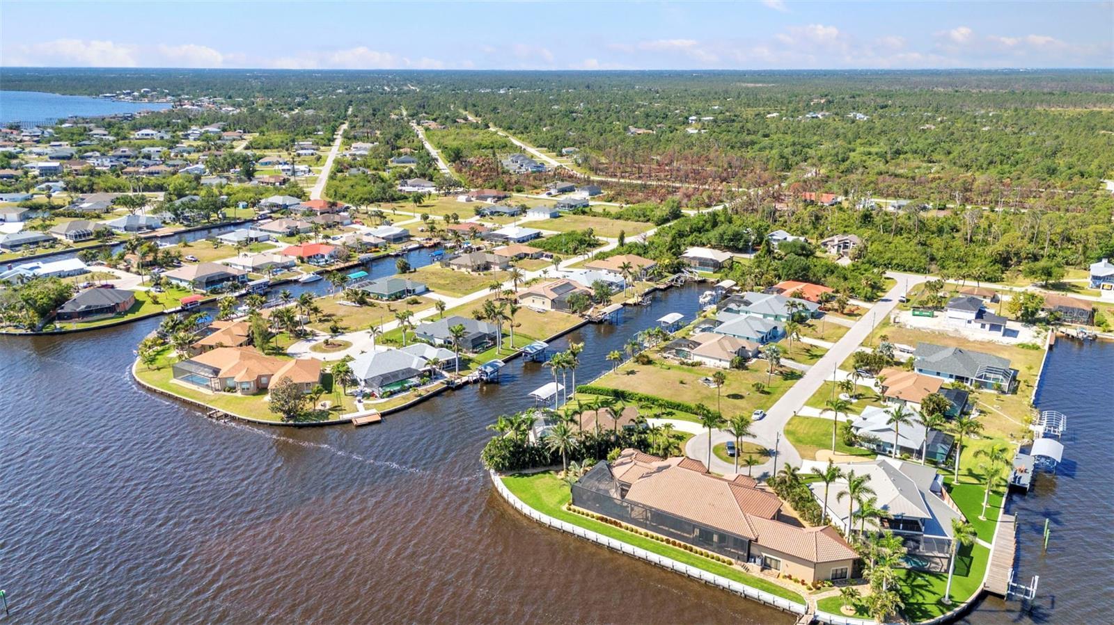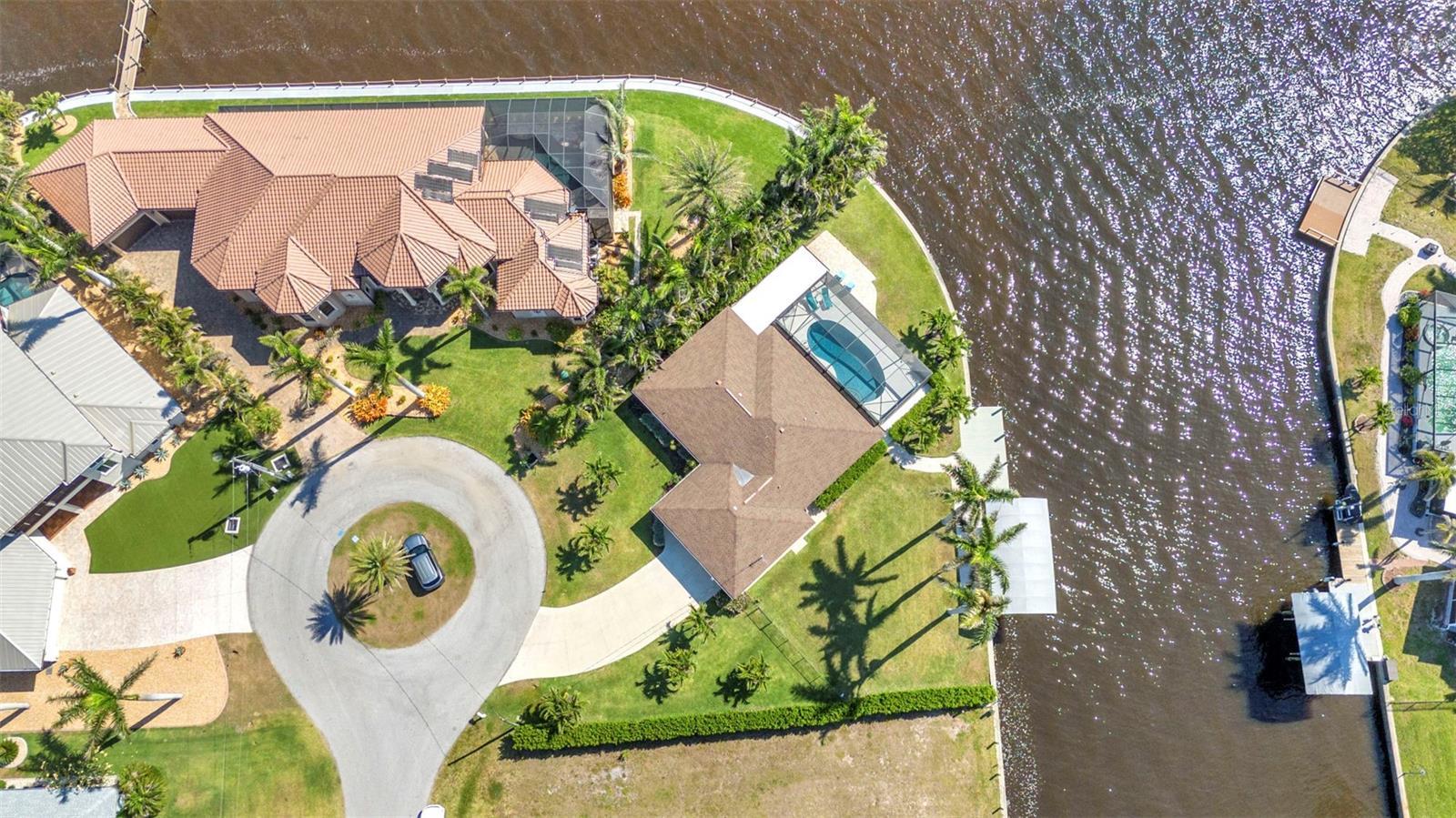 Jaw-Dropping Myakka River Views from This Oversized Tip Lot in Gulf Cove! Perfectly positioned on an oversized tip lot with 160 feet of concrete seawall, this remodeled 2-bedroom, 2-bath waterfront home with 12,000 lb. boat lift offers some of the most spectacular, unobstructed views of the Myakka River you’ll find in Gulf Cove. Whether it's sunrise reflections or glowing sunsets, the backdrop is pure magic. Located at the end of a quiet cul-de-sac, this bright and beautiful home was renovated just two years ago with timeless finishes and thoughtful upgrades throughout. The open split floor plan features elegant 28" porcelain tile flooring, a soft white palette, and a seamless flow between indoor and outdoor living spaces. The kitchen is a showpiece, designed with both beauty and functionality in mind. You'll find a waterfall island with storage, sleek stone countertops, soft-close solid wood cabinetry with pull-out drawers, top-of-the-line stainless appliances, a farmhouse sink and a pantry with additional pull-outs for easy organization. Just off the dining area, a built-in beverage station with a wine fridge and matching cabinetry adds a perfect touch for entertaining. The spacious ensuite primary offers sliding doors to the lanai, a walk-in closet, dual sinks, and a large tiled walk-in shower. On the opposite side of the home, the guest bedroom also features sliding doors to the lanai, along with a nearby full bath, ideal for visitors seeking privacy and comfort. Two sets of sliding doors from the main living space lead to the expansive paver lanai, where a heated pool, a recently resurfaced deck, and a panoramic screen create a resort-style space to relax and take in those incredible views. Whether you're savoring your morning coffee in the gentle breeze or enjoying a glass of wine as the sky turns gold at sunset, the lanai becomes your front-row seat to the beauty and tranquility of waterfront living. Just beyond the screen enclosure, a paver walkway and Trex deck guide you to your covered 12,000 lb. boat lift, ready for spontaneous boat days and sunset cruises. Lush tropical landscaping wraps the home in beauty and privacy, making it feel like a true retreat. Additional highlights include custom blinds & shutters, impact-resistant windows and doors, an oversized two-car garage with a laundry area, utility sink and a retractable screen to let in light and fresh air. This home remained dry during recent storms and is ready for new memories to be made. Furnishings are negotiable outside of the contract, making your move-in even easier. Conveniently located near shopping, dining, entertainment, and some of Southwest Florida’s most beautiful beaches, this home is perfect for anyone who seeks luxury, sophistication and breathtaking views. Don’t miss out on the opportunity to own this exquisite piece of paradise!