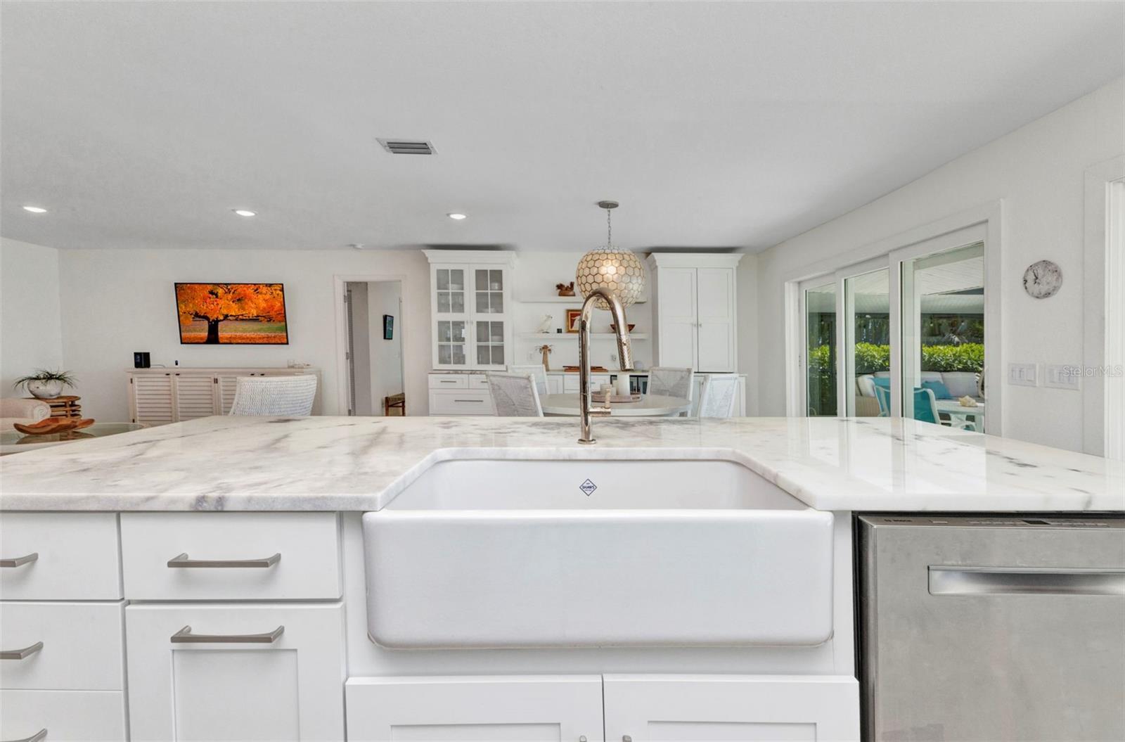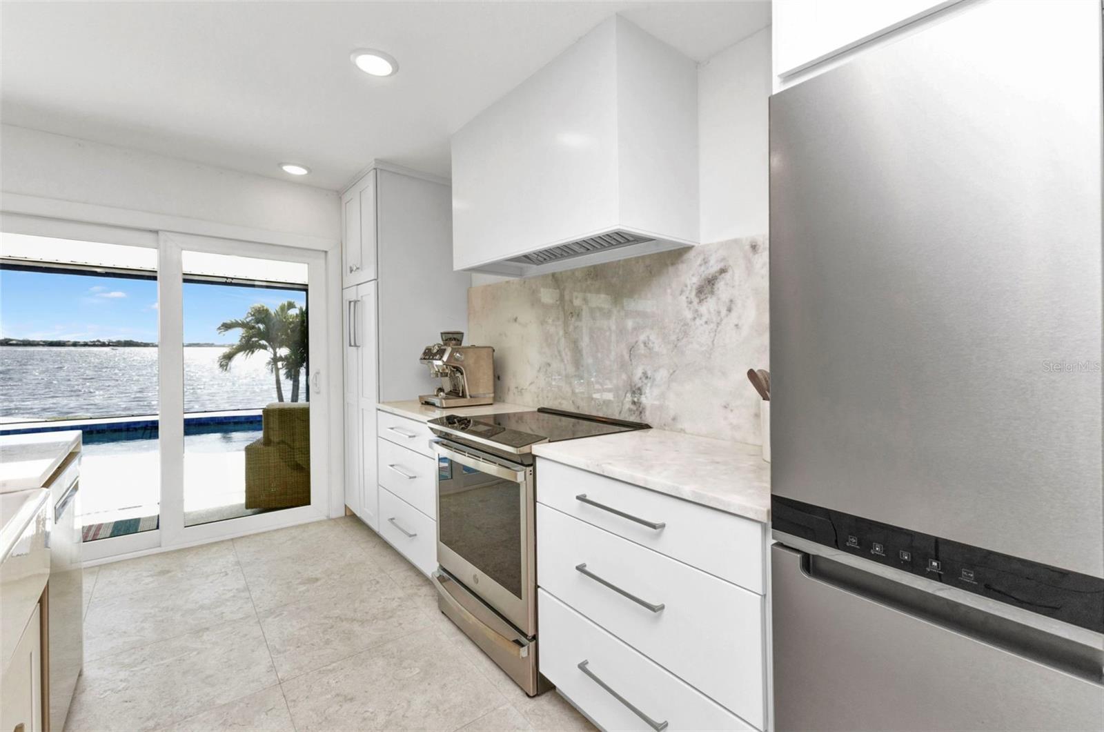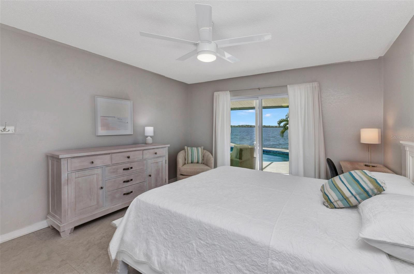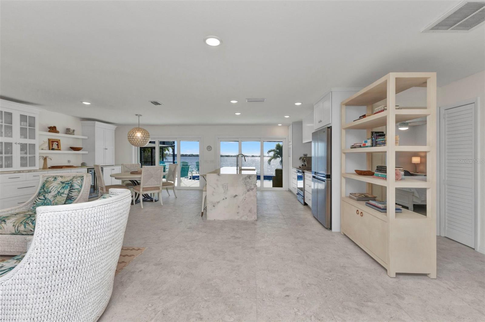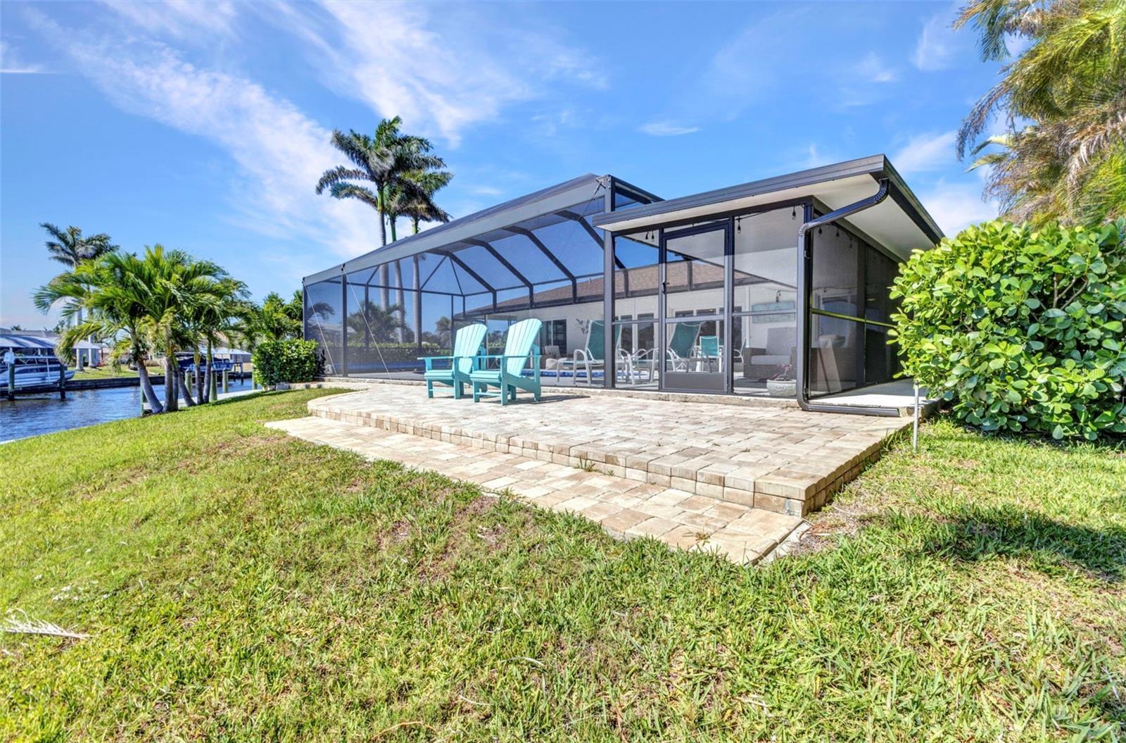 Jaw-Dropping Myakka River Views from This Oversized Tip Lot in Gulf Cove! Perfectly positioned on an oversized tip lot with 160 feet of concrete seawall, this remodeled 2-bedroom, 2-bath waterfront home with 12,000 lb. boat lift offers some of the most spectacular, unobstructed views of the Myakka River you’ll find in Gulf Cove. Whether it's sunrise reflections or glowing sunsets, the backdrop is pure magic. Located at the end of a quiet cul-de-sac, this bright and beautiful home was renovated just two years ago with timeless finishes and thoughtful upgrades throughout. The open split floor plan features elegant 28" porcelain tile flooring, a soft white palette, and a seamless flow between indoor and outdoor living spaces. The kitchen is a showpiece, designed with both beauty and functionality in mind. You'll find a waterfall island with storage, sleek stone countertops, soft-close solid wood cabinetry with pull-out drawers, top-of-the-line stainless appliances, a farmhouse sink and a pantry with additional pull-outs for easy organization. Just off the dining area, a built-in beverage station with a wine fridge and matching cabinetry adds a perfect touch for entertaining. The spacious ensuite primary offers sliding doors to the lanai, a walk-in closet, dual sinks, and a large tiled walk-in shower. On the opposite side of the home, the guest bedroom also features sliding doors to the lanai, along with a nearby full bath, ideal for visitors seeking privacy and comfort. Two sets of sliding doors from the main living space lead to the expansive paver lanai, where a heated pool, a recently resurfaced deck, and a panoramic screen create a resort-style space to relax and take in those incredible views. Whether you're savoring your morning coffee in the gentle breeze or enjoying a glass of wine as the sky turns gold at sunset, the lanai becomes your front-row seat to the beauty and tranquility of waterfront living. Just beyond the screen enclosure, a paver walkway and Trex deck guide you to your covered 12,000 lb. boat lift, ready for spontaneous boat days and sunset cruises. Lush tropical landscaping wraps the home in beauty and privacy, making it feel like a true retreat. Additional highlights include custom blinds & shutters, impact-resistant windows and doors, an oversized two-car garage with a laundry area, utility sink and a retractable screen to let in light and fresh air. This home remained dry during recent storms and is ready for new memories to be made. Furnishings are negotiable outside of the contract, making your move-in even easier. Conveniently located near shopping, dining, entertainment, and some of Southwest Florida’s most beautiful beaches, this home is perfect for anyone who seeks luxury, sophistication and breathtaking views. Don’t miss out on the opportunity to own this exquisite piece of paradise!