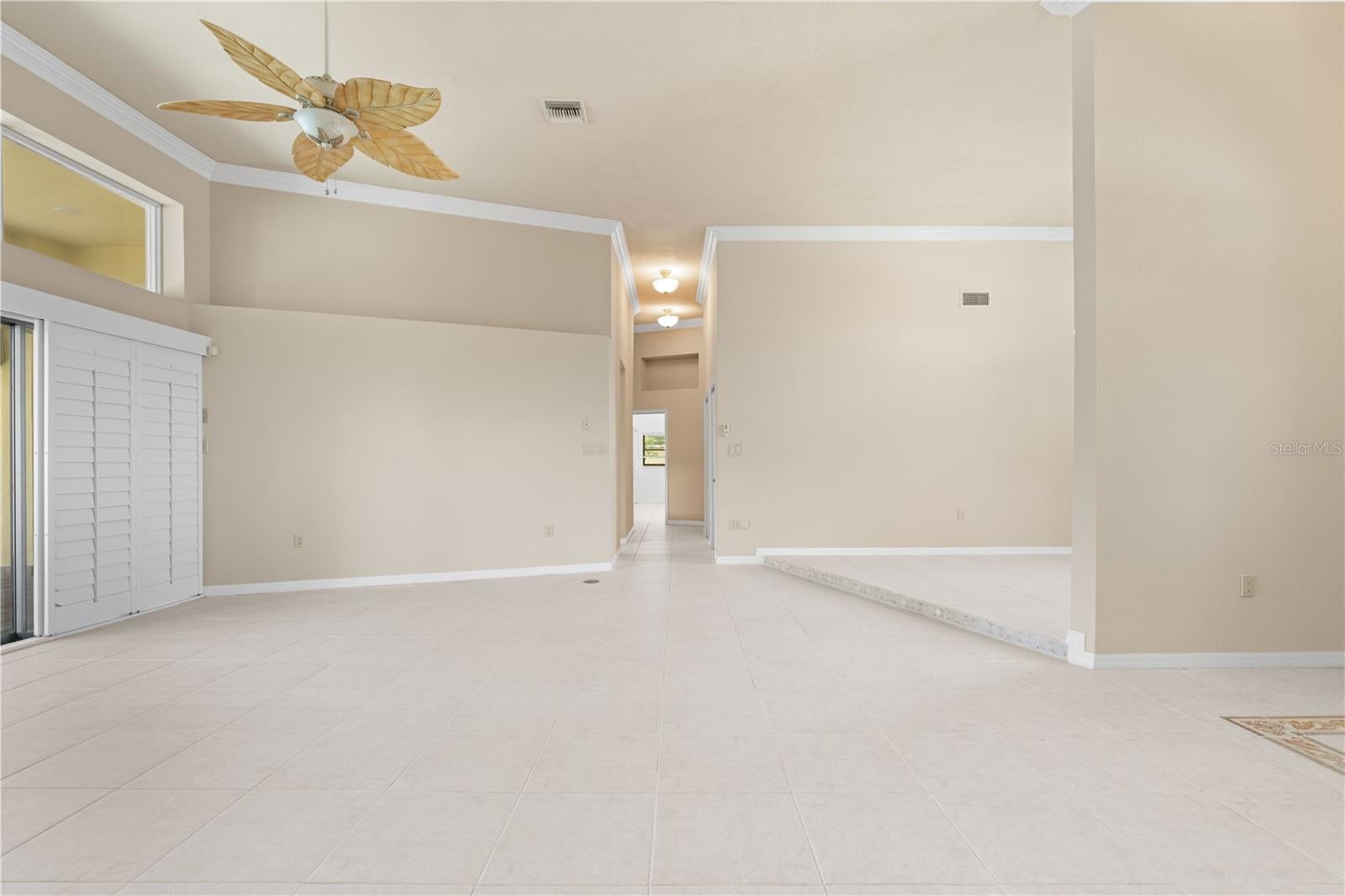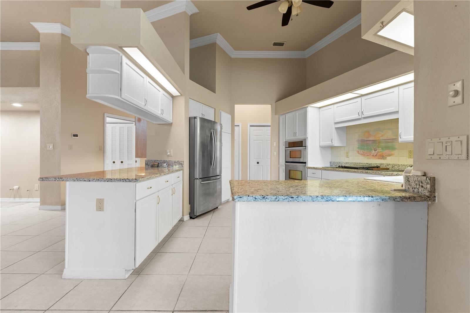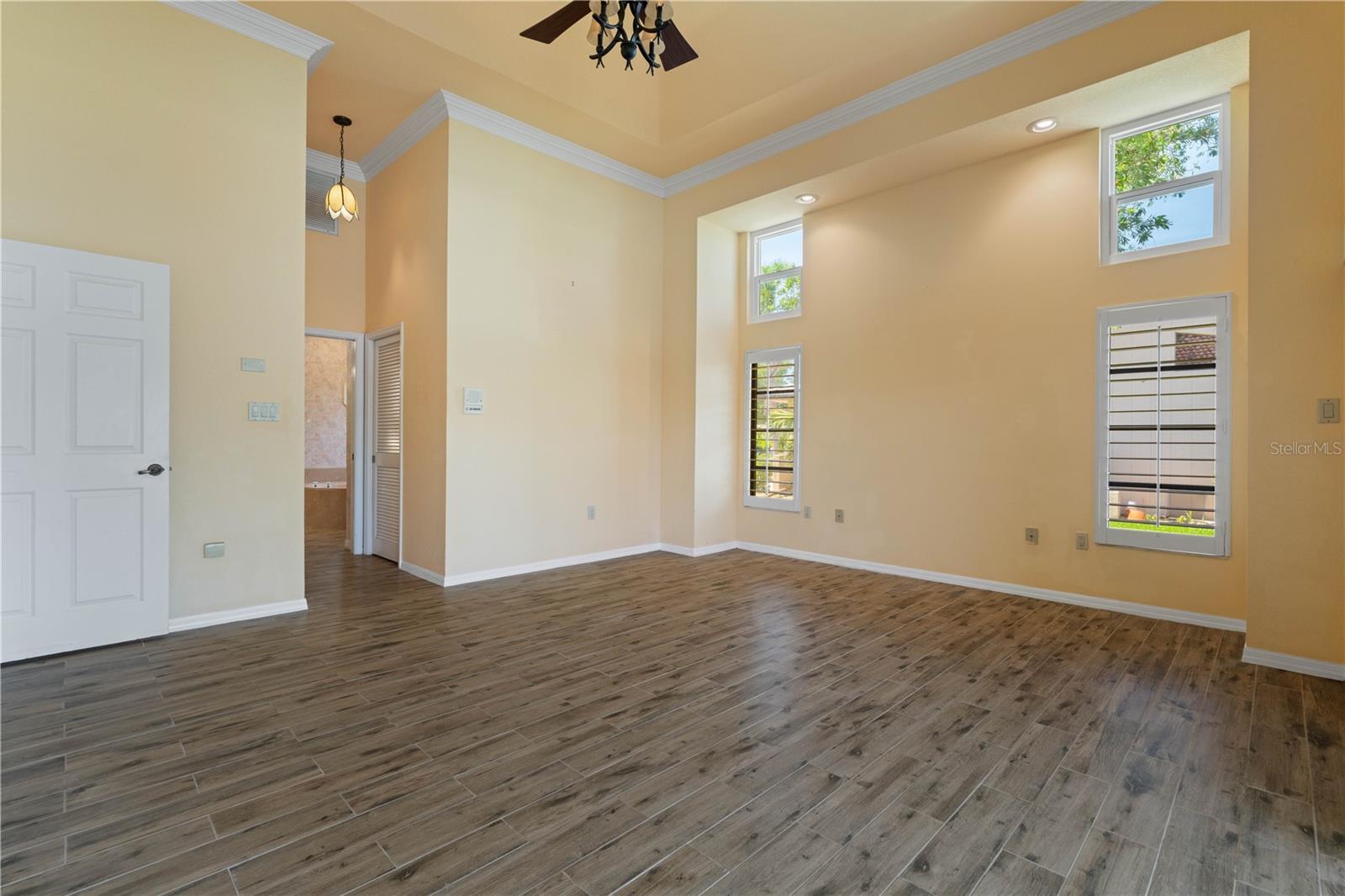- Ceiling Fans(s), Crown Molding, High Ceilings, Living Room/Dining Room Combo, Open Floorplan, Split Bedroom, Stone Counters, Walk-In Closet(s)
