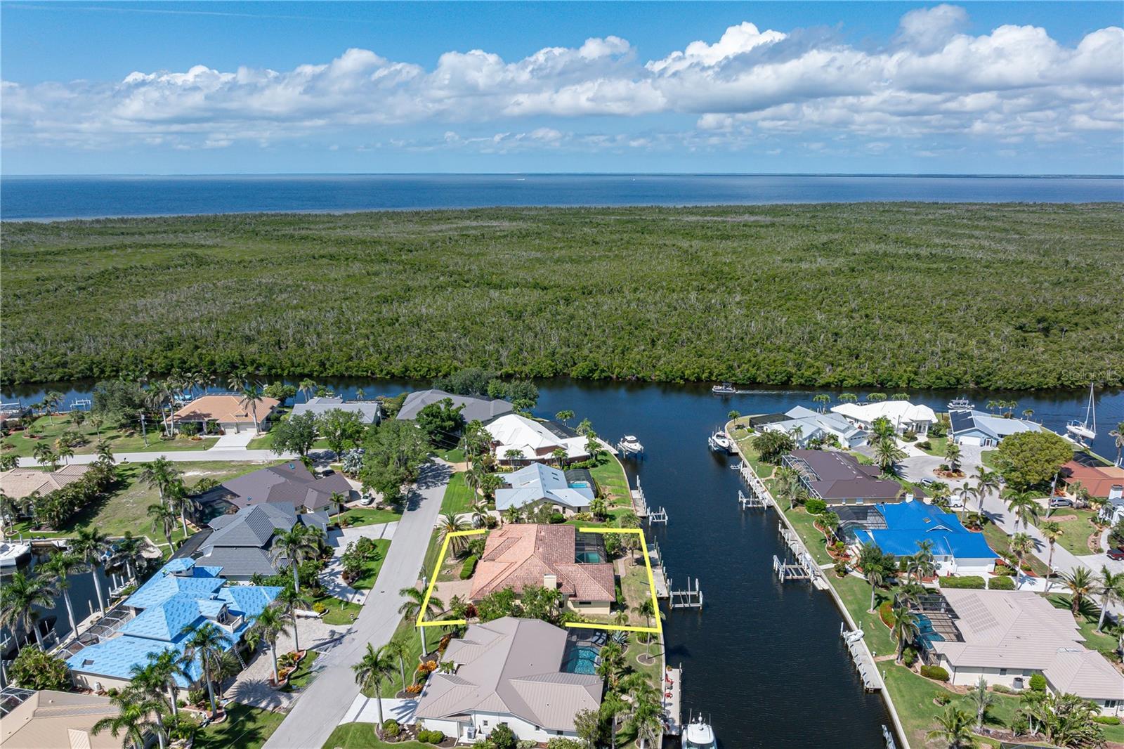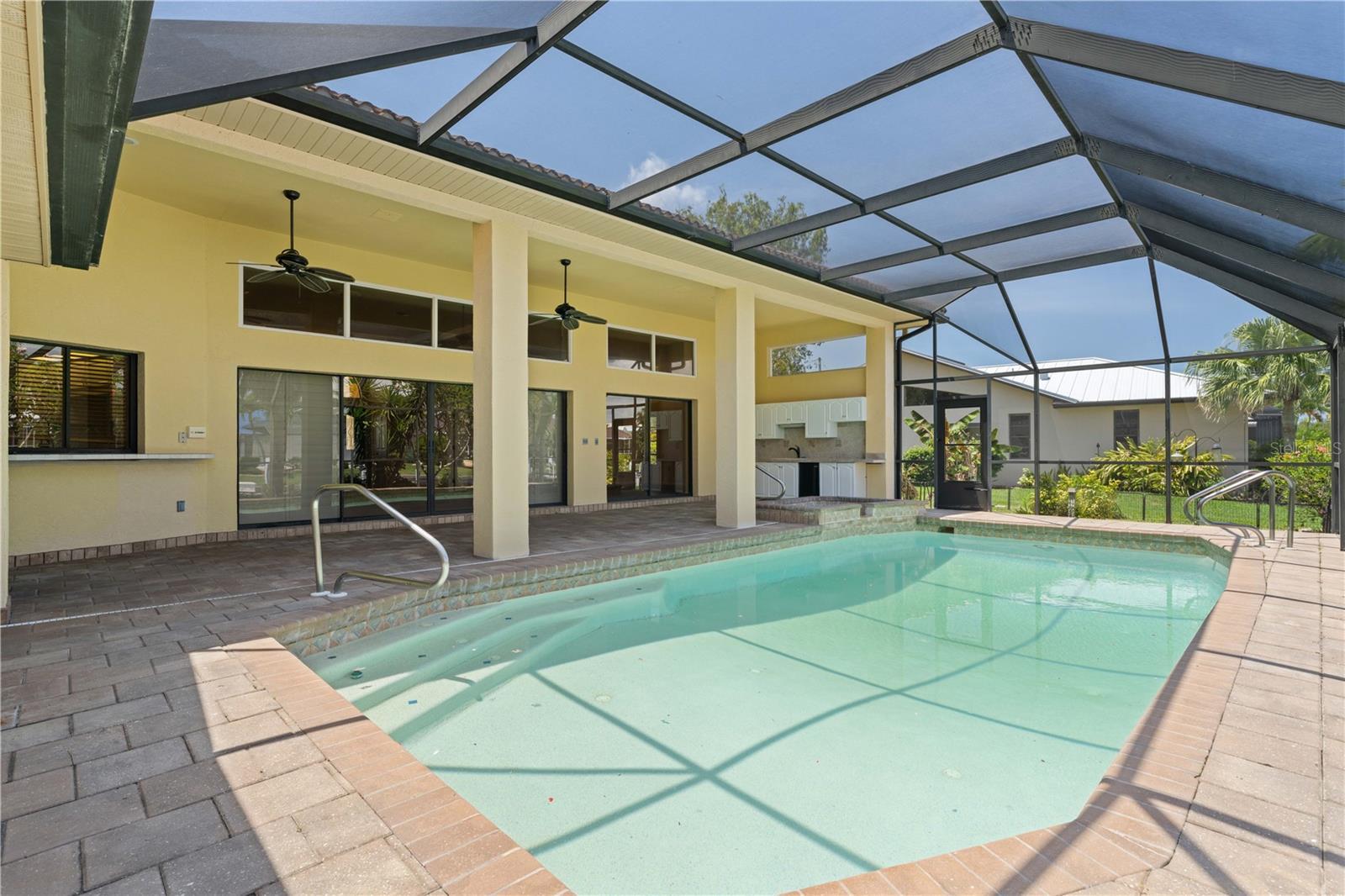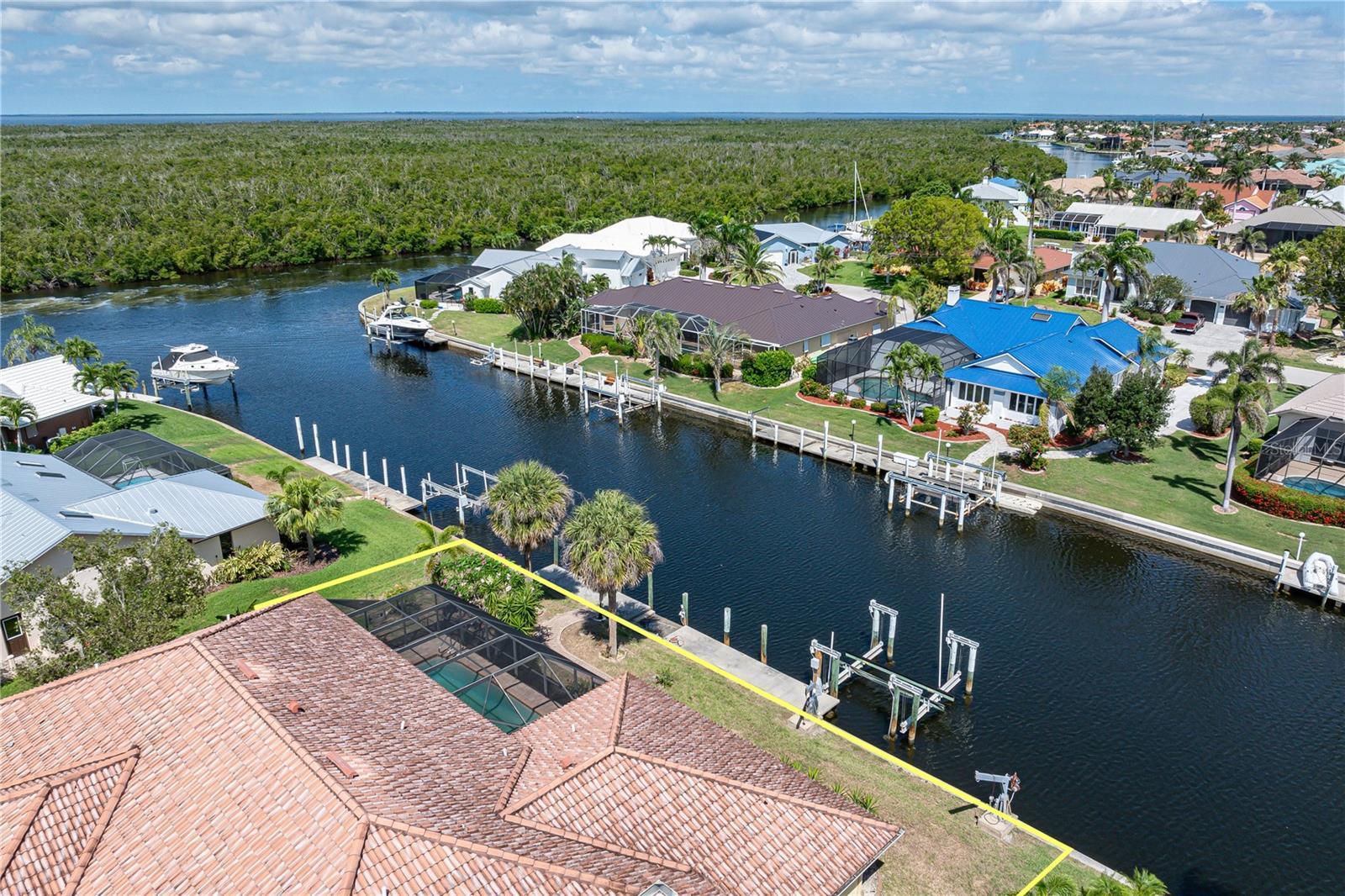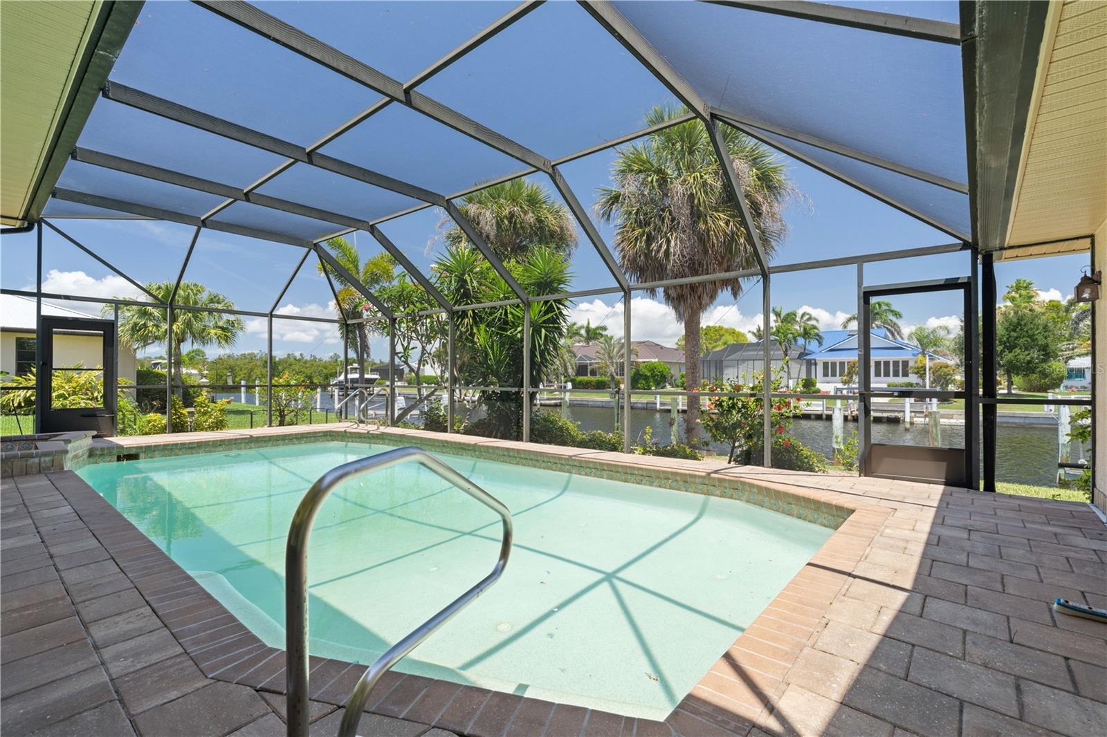 SAIL ACCESS POOL HOME IN PGI W/110FT SEAWALL, 3-CAR GARAGE & OVERSIZED DOCK - Located just off the perimeter canal in Punta Gorda Isles, this 4 bed/2 bath, sailboat-access waterfront home delivers just over 3,000 sqft of living space. Inside, soaring ceilings with crown molding, transom windows, and a neutral color palette create a bright, welcoming interior. HOME HAS SO MUCH POTENTIAL! A formal living room and dining room anchor the front of the home while a separate family room with fireplace offers a more casual space to unwind or gather. The spacious kitchen features granite counters, stainless steel appliances, ample cabinetry, a closet pantry, breakfast bar, and built-in desk. A breakfast nook sits just off the kitchen with French doors that open to the lanai. The split bedroom layout ensures privacy for guests and owners alike. The master suite has sliding doors that open to the pool, two walk-in closets, and a large en-suite bath with dual sinks, soaking tub, and separate shower. Three guest bedrooms are located on the opposite side of the home—two of which include walk-in closets. The shared guest bath also functions as a convenient pool bath. Step outside to your personal paradise. The screened lanai offers covered outdoor living space with ceiling fans, a full summer kitchen, and a sparkling in-ground pool with attached spa—all with a tranquil canal view as your backdrop. A walkway leads down to the extended dock where your next boating adventure awaits. Situated on an oversized lot with 110 feet of seawall and a wide canal view, the property features a 60ft concrete dock with 20,000 lb lift, davits, and water/electric hook-ups dockside. Cruise to open water via Buckley’s Pass or explore Charlotte Harbor through Ponce Inlet. Home also includes an oversized three-car garage with workshop area, large interior laundry room w/additional storage closets & tropical landscaping that surrounds the home. Enjoy world-class fishing, waterfront dining, and Florida’s year-round boating lifestyle right from your backyard. Looking to hit the links? The home is not far from St Andrews South golf course. In addition to the boating & golf, Punta Gorda is also known for its art & music scene w/frequent festivals & art fairs on the weekends. Discover the relaxing pace of living in a laid-back, waterfront community w/a charming historic downtown area plus waterfront shopping & dining at Fishermen's Village or Laishley Park. Enjoy an active lifestyle here where miles of sidewalks connect you by bike or foot to numerous parks, Harbor Walk & downtown Punta Gorda. Make an appointment today.