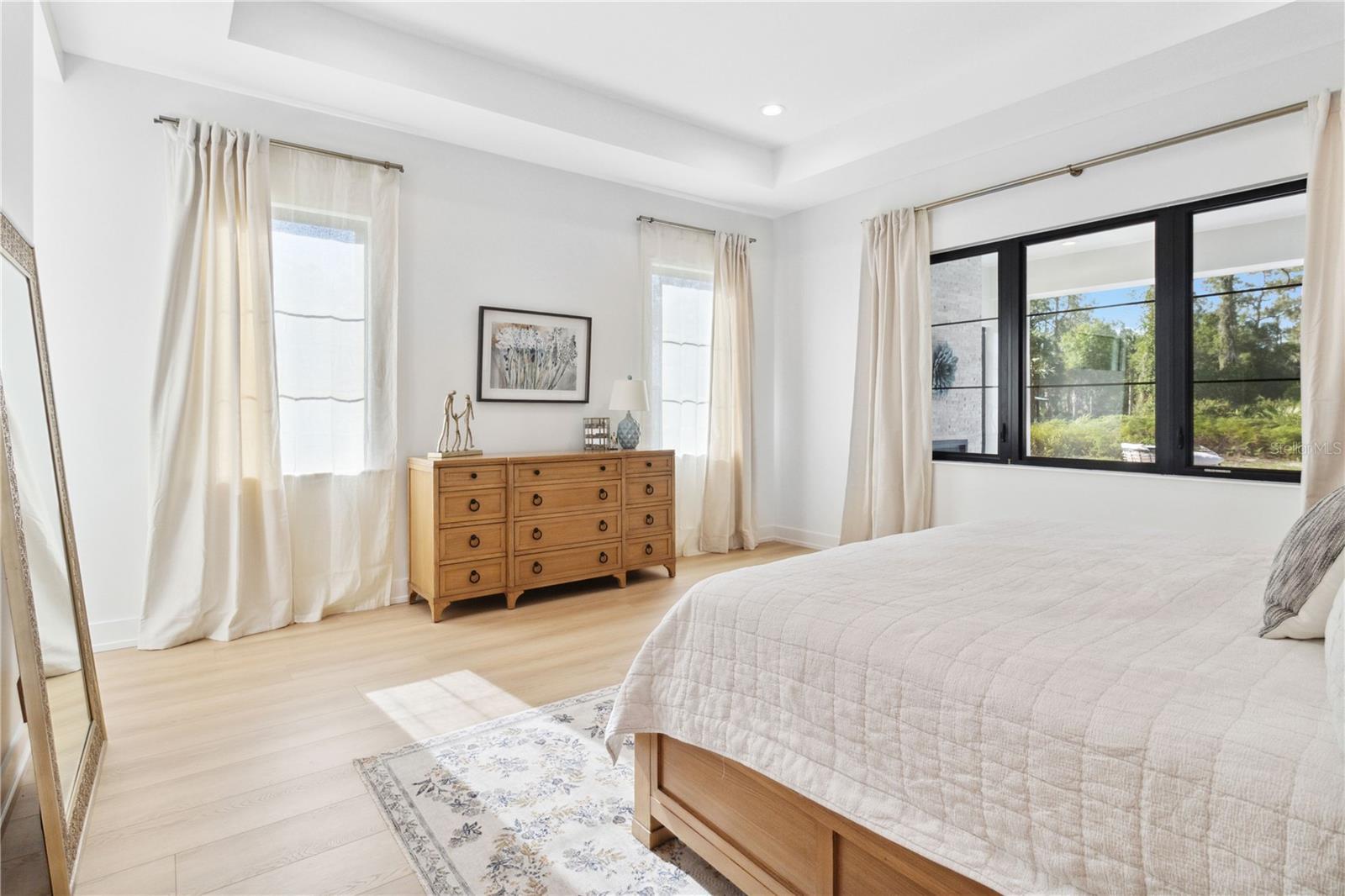 - Accessibility Features, Cathedral Ceiling(s), High Ceilings, Pest Guard System, Primary Bedroom Main Floor, Stone Counters, Thermostat, Tray Ceiling(s), Walk-In Closet(s)