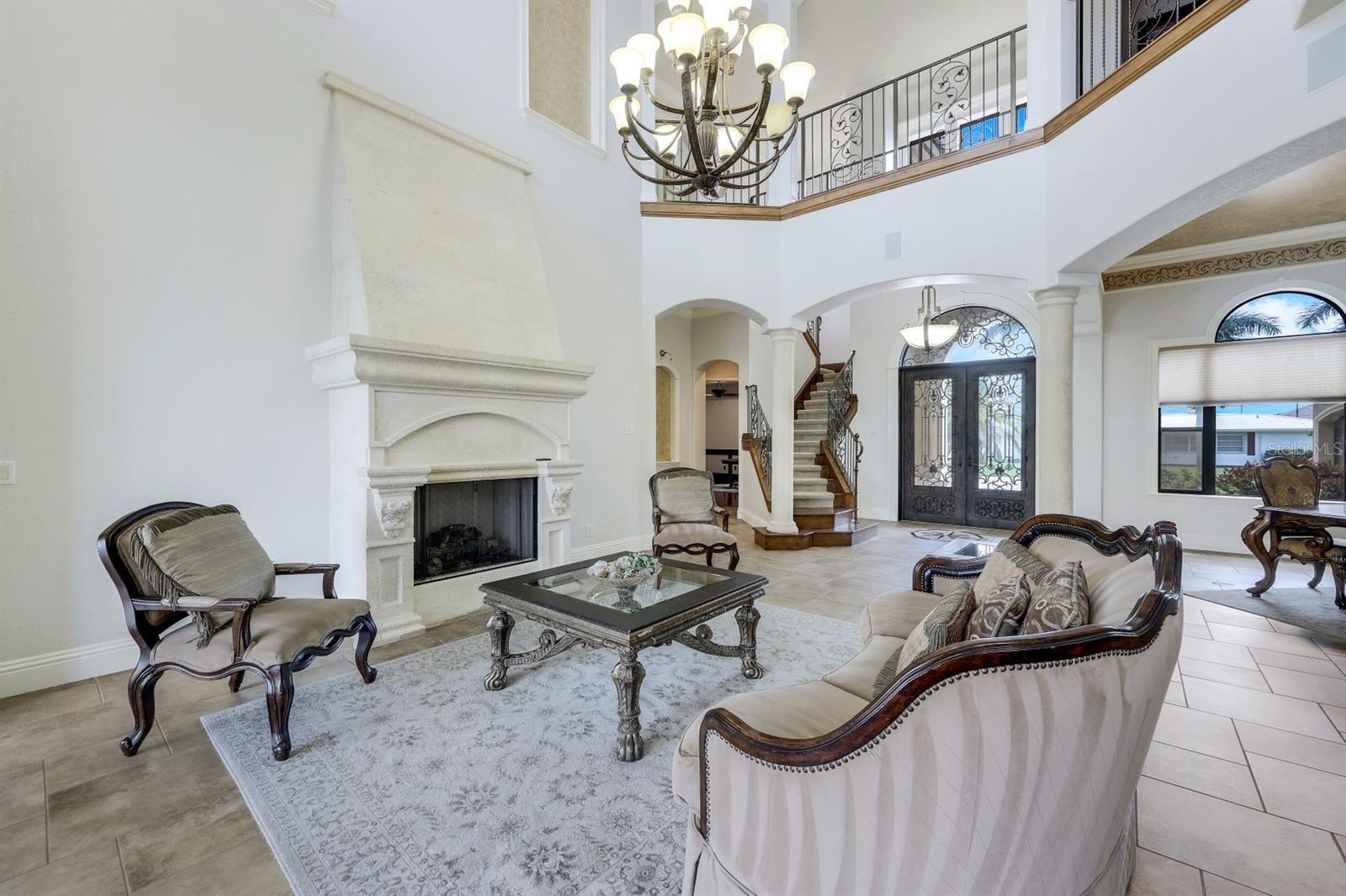 A Rare Waterfront Masterpiece: Ultimate Luxury, Prime Location, Limitless Potential! Welcome to your dream escape in Southwest Florida—where timeless elegance meets unmatched boating access. Whether you're envisioning a private estate, a luxury vacation rental, or a corporate retreat, this impeccably crafted home offers the perfect balance of comfort, sophistication, and opportunity. Nestled on an oversized corner lot, this stunning Koogler-built residence is just one turn from the Caloosahatchee River—no bridges, no locks, and pure open-water convenience. Designed for those who crave the best in waterfront living, this property is both a serene sanctuary and an entertainer’s dream. From the moment you arrive, grand double glass doors with wrought iron detail open to a stately foyer, setting the tone for the home’s refined style. The formal living room dazzles with a dramatic chandelier, stone-accented electric fireplace, and seamless indoor-outdoor flow through expansive sliders to the lanai. Nearby, the formal dining room is an ideal space for elevated entertaining, complete with a wet bar, U-Line appliances, and a Marvel beer tap. The primary suite is a private retreat, showcasing double-door entry, tray ceiling, custom his-and-hers closets, lanai access, and a spa-inspired bath. Indulge in a jetted soaking tub, granite dual vanities, a spacious walk-in shower with dual shower heads, and precision temperature controls. The heart of the home—the chef’s kitchen—is outfitted with premium KitchenAid appliances, a Viking 6-burner gas stove with griddle, dual dishwashers, granite countertops, and a walk-in pantry. A cozy breakfast nook opens to the inviting family room with built-in entertainment and lanai access, creating effortless flow for everyday living or large gatherings. Step outside to a resort-style lanai with a tongue-and-groove ceiling, half bath, built-in GE Monogram grill and refrigerator, and a cozy gas fireplace. The electric-heated saltwater pool and spa feature a sun deck and gated access to your private dock—crafted from composite decking and equipped with water, electricity, and dual boat lifts (10,000 lb and 20,000 lb). 200 feet wide canal, 66 feet dock with 21 feet width. Upstairs, a generous entertainment loft offers a billiards area, full bar with granite counters, and balcony access. Guests will feel pampered in spacious en-suite bedrooms with custom walk-in closets and private balcony access. A well-appointed laundry room with GE Profile appliances and an additional half bath complete the second floor. This versatile luxury residence is as functional as it is exquisite—ideal for homeowners, investors, or business professionals seeking an elite retreat in paradise. Don’t miss this extraordinary opportunity. Schedule your private tour today and experience the pinnacle of waterfront luxury living.
