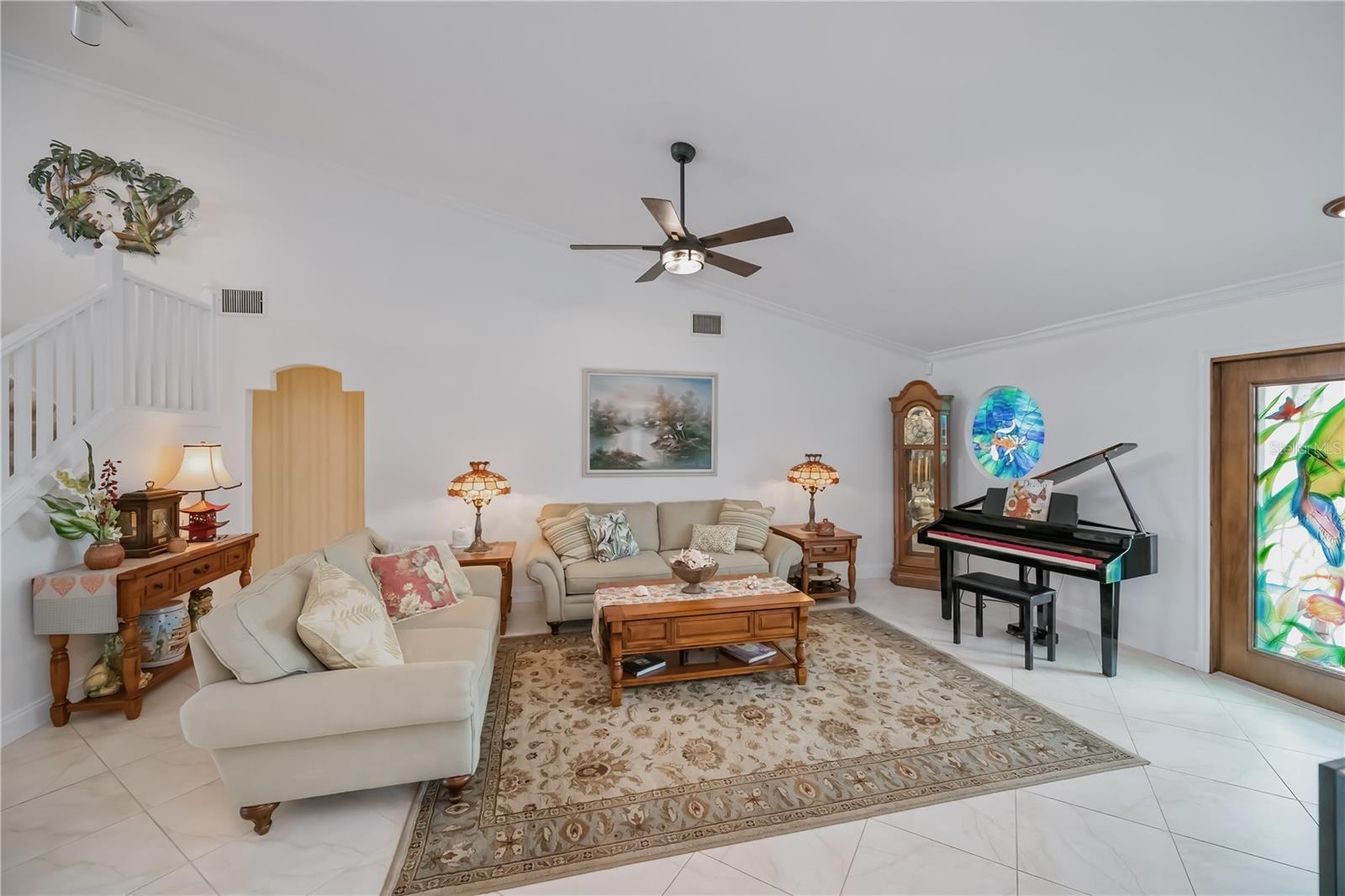 - Crown Molding, High Ceilings, Primary Bedroom Main Floor, Solid Wood Cabinets, Split Bedroom, Stone Counters, Vaulted Ceiling(s), Walk-In Closet(s), Window Treatments