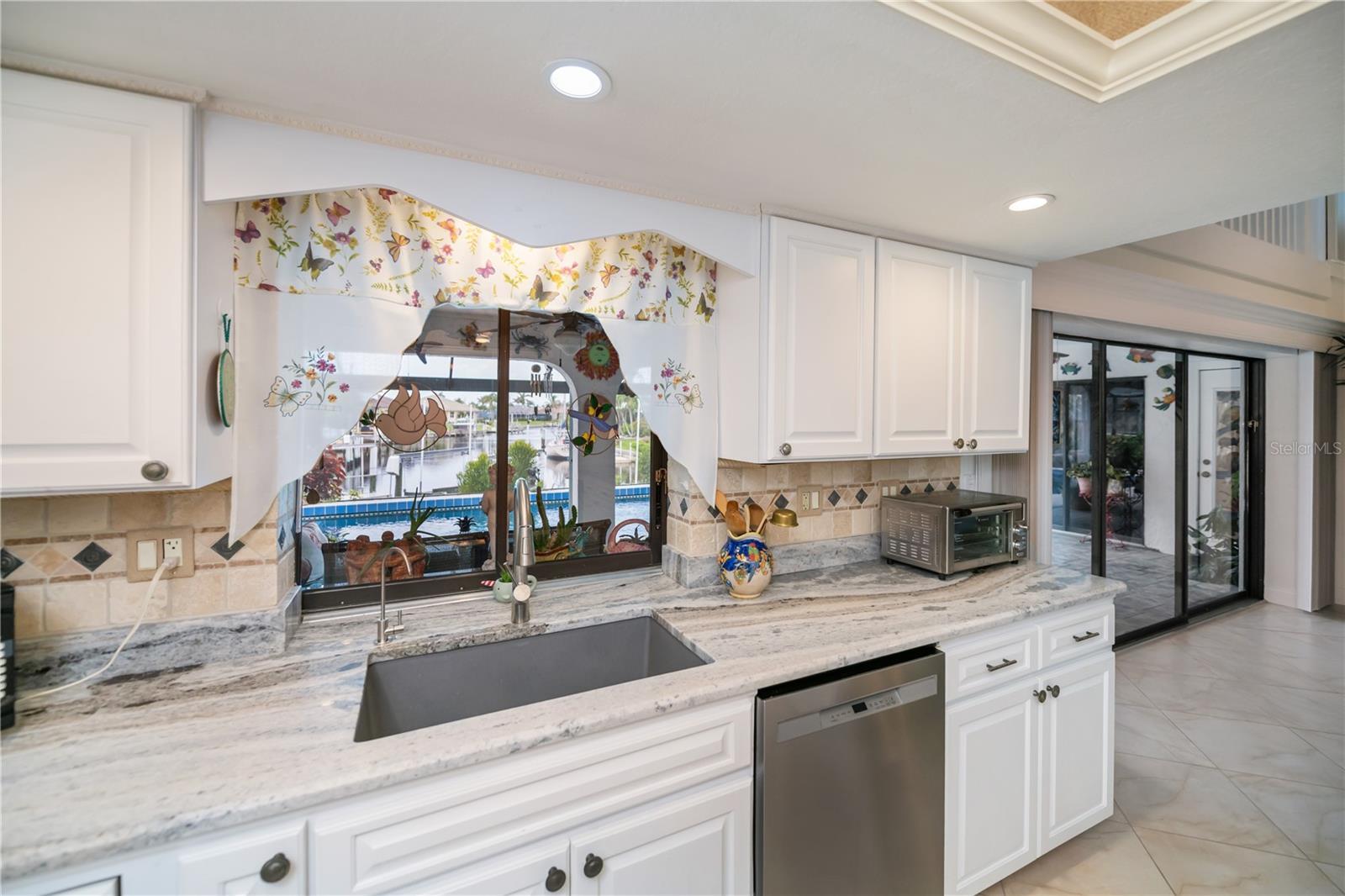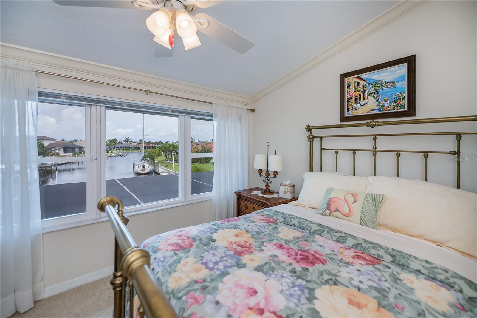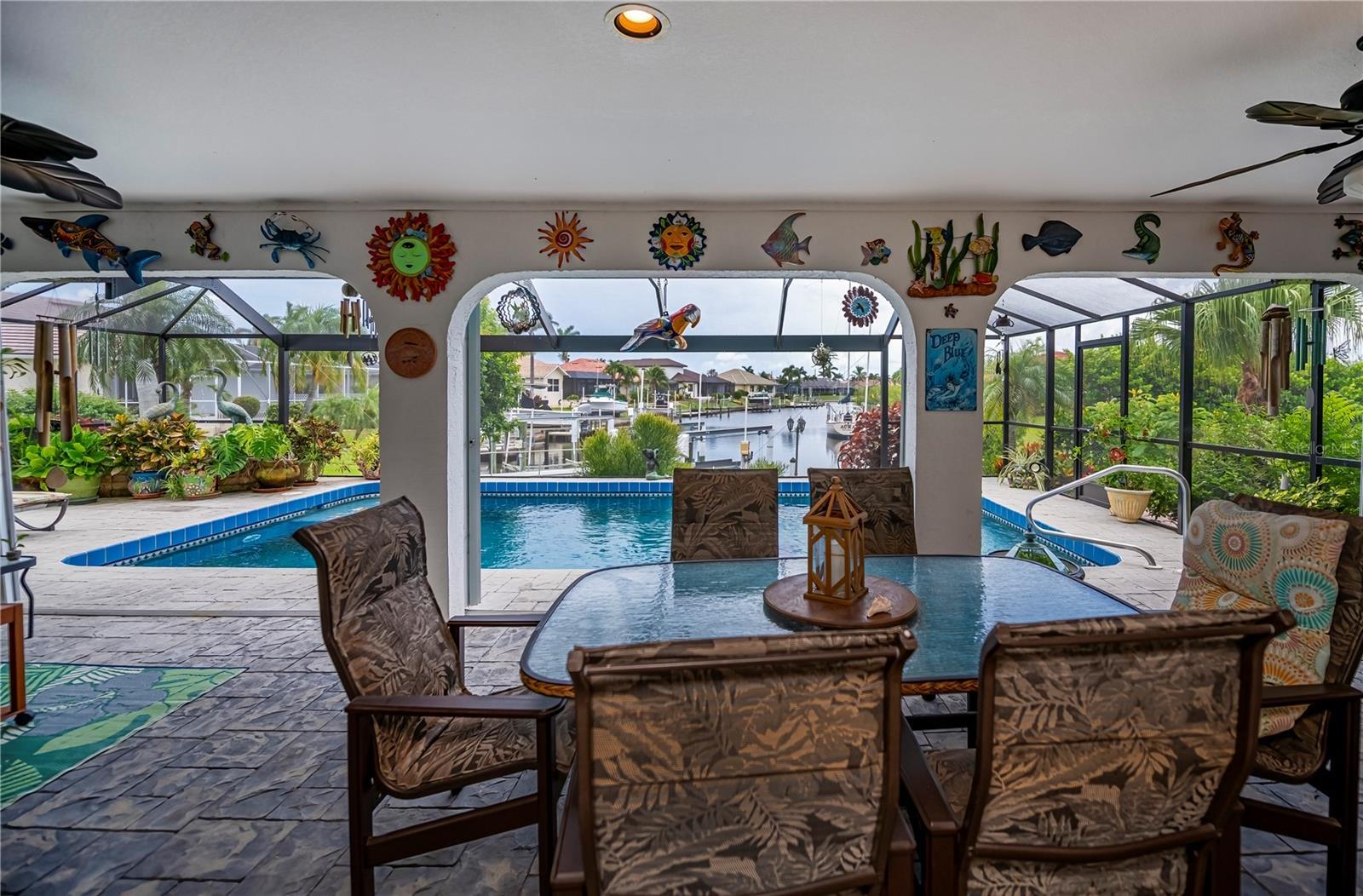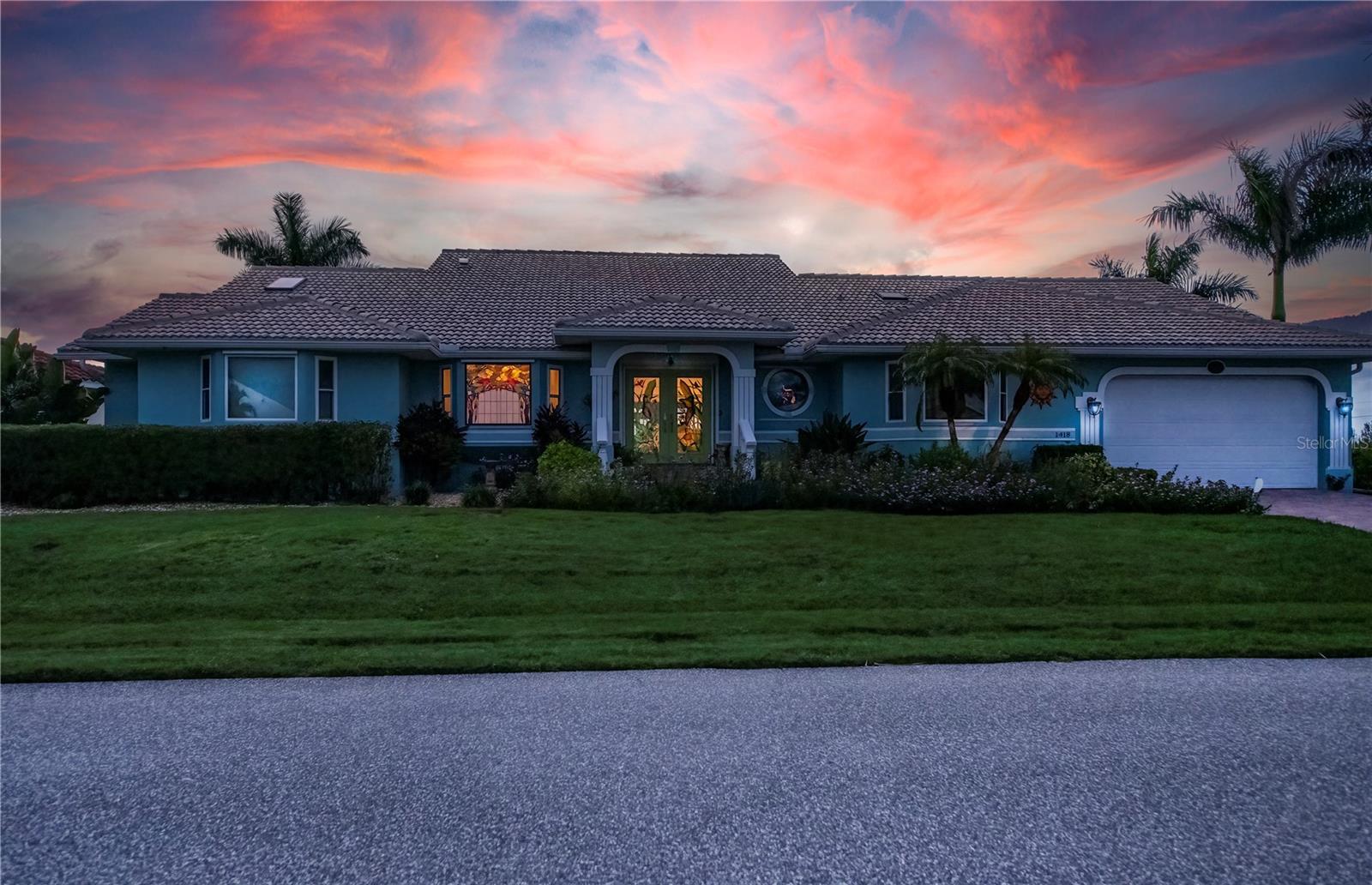 water canal granting excellent access to the Charlotte Harbor and the Gulf of America. Arriving at this home you’ll be greeted by magnificent landscaping. The custom tropical design, double entrance doors and impact glass windows, shutters on stained glass in the front. All this opens to a huge great room with soaring ceilings, porcelain tile floors, an awesome chef style kitchen with granite countertops. Four bedrooms downstairs including a huge primary bedroom suite. Adjacent to the primary bedroom suite is another bedroom that is currently used as an office/den. To access the fifth bedroom, you’ll be guided up the open staircase, which is a great place for guest or a great place to go to enjoy peace and tranquility overlooking the commanding view of the canal. The approximately six-car garage has high ceilings and is perfect for the car folks that just wants to have room for all their toys. The adjacent lot is available by separate purchase and can accommodate a very large home if so desired. Please see MLS# 7521320 Make your appointment today to see this fabulous home and I’m certain you will want to make this home your own. This is a one-of-a-kind home in this area.