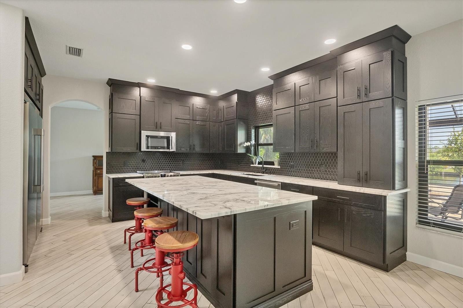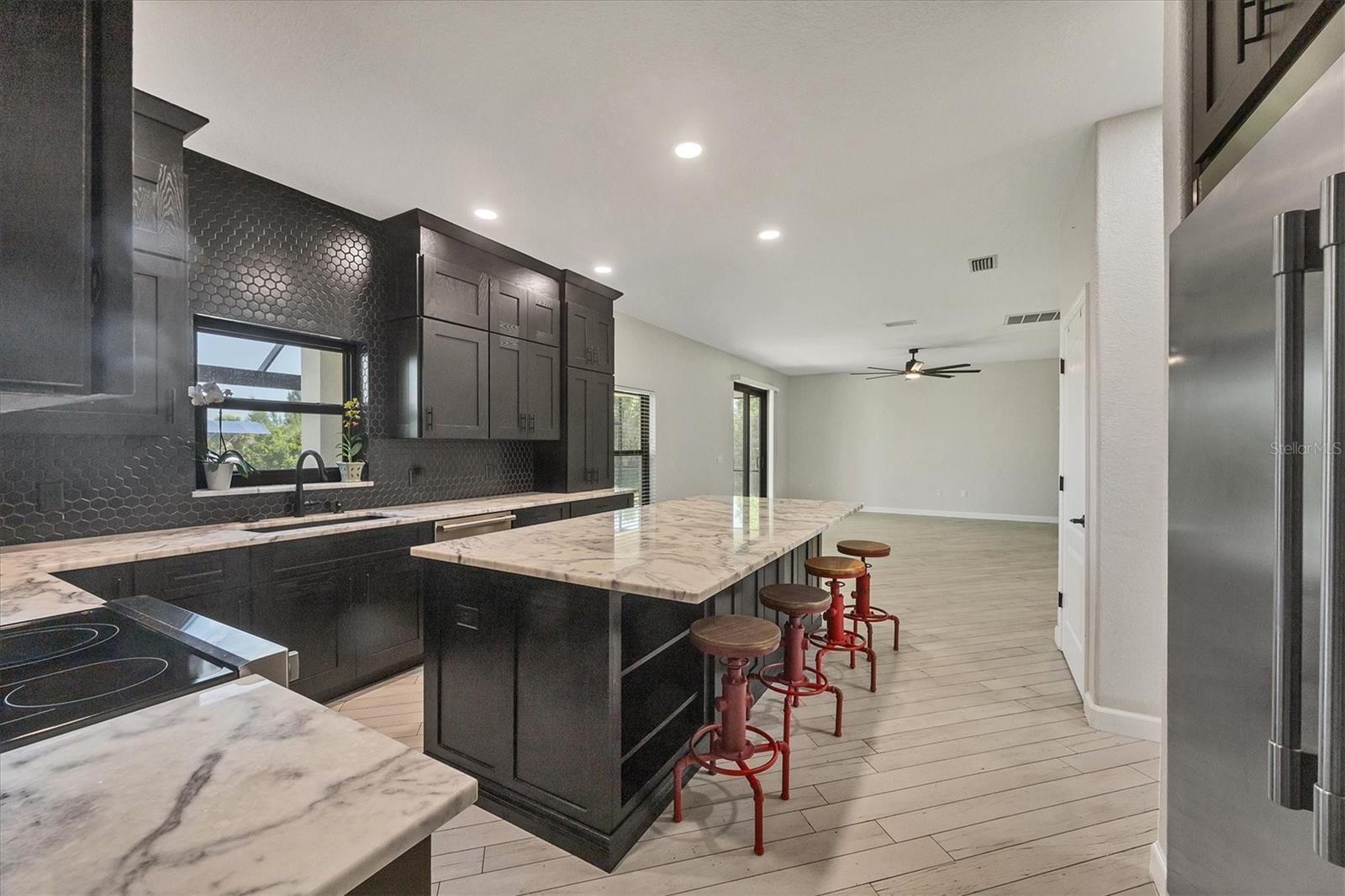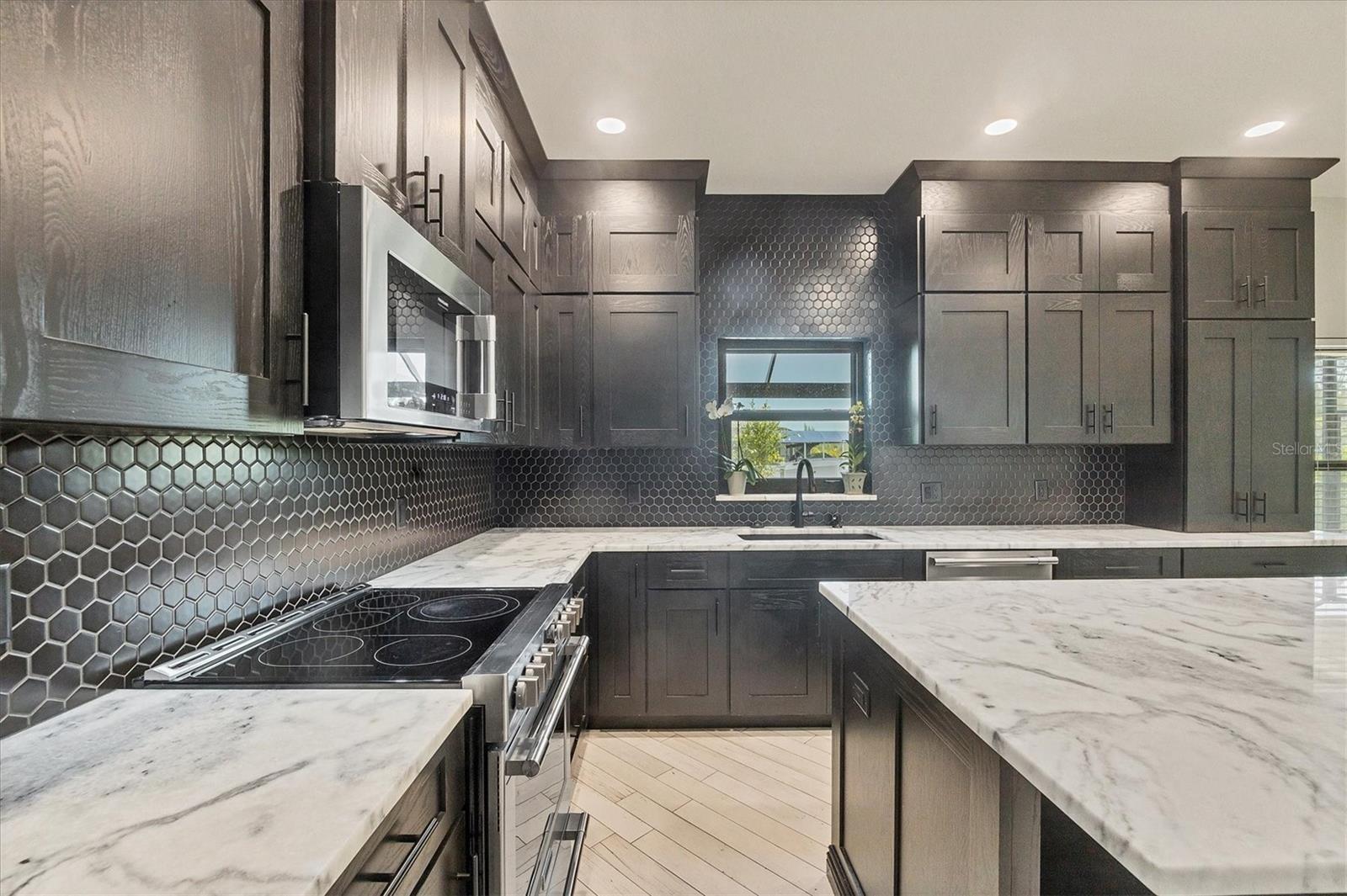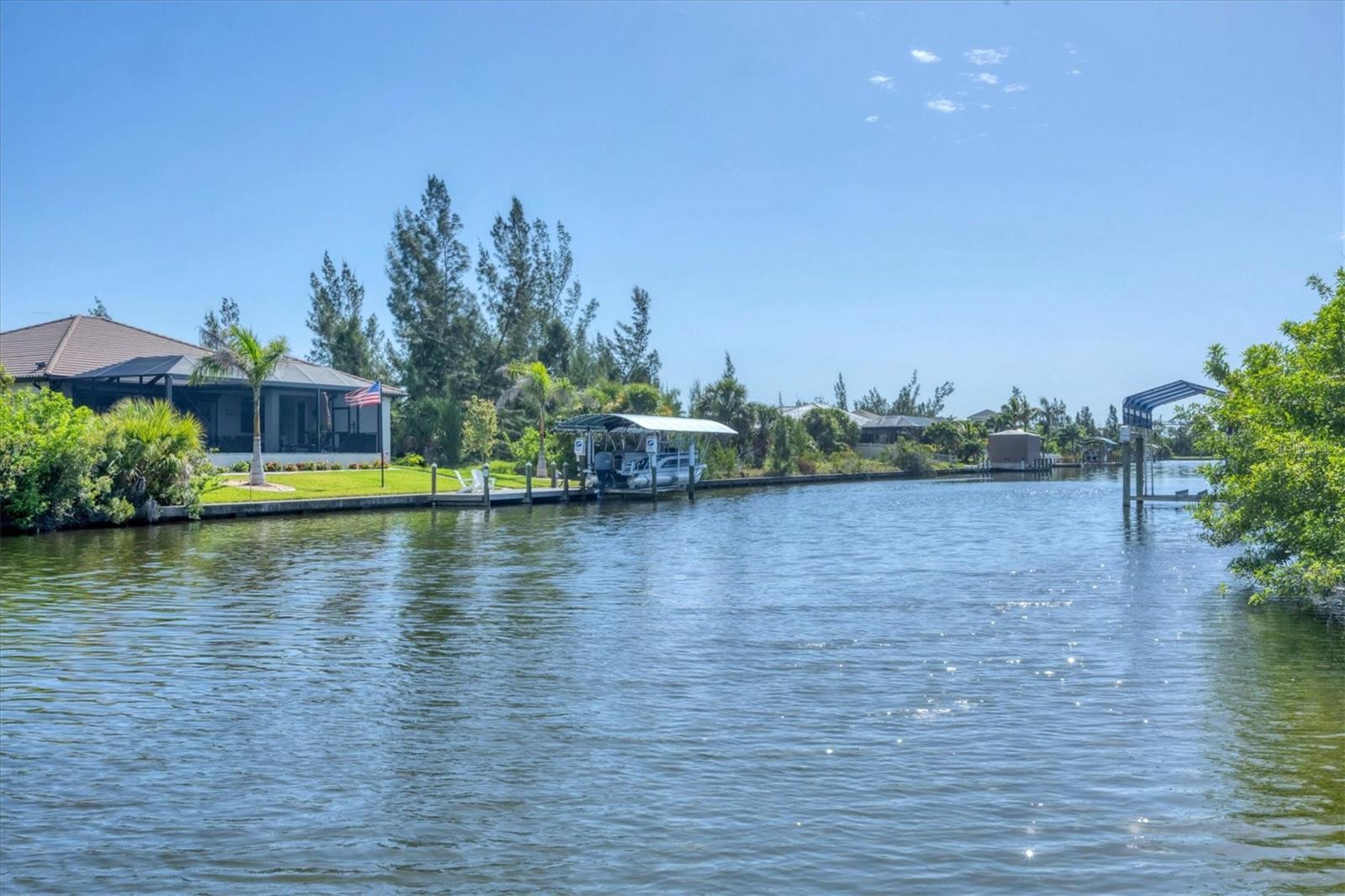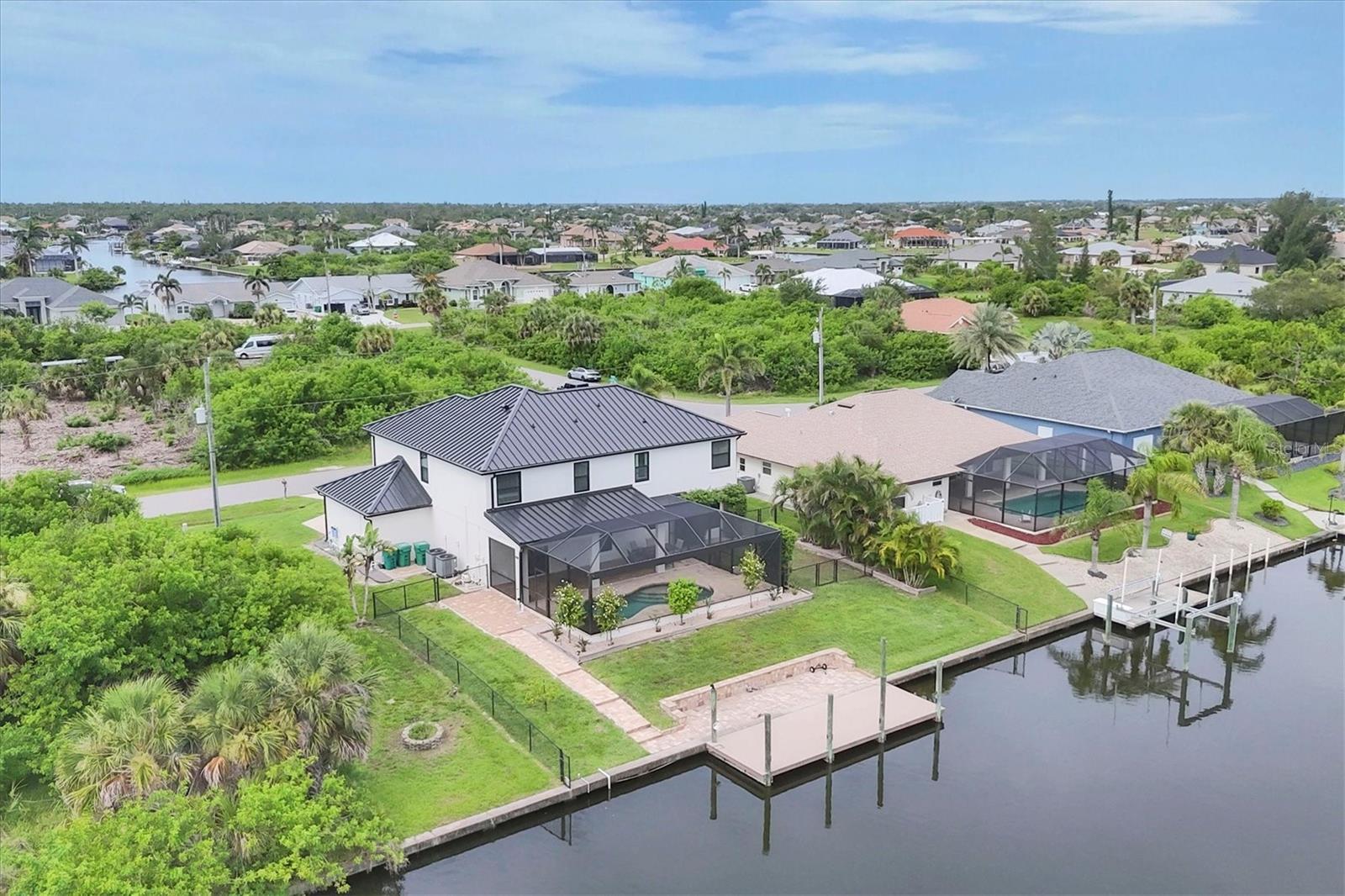 Significant price adjustment makes you question why wait to build when you can move right into this like new home. All since 2023 - New 24 gauge metal roof, impact windows/doors, garage door, HVAC, pool cage, LVP flooring in all bedrooms, wood plank look tile other areas, spray foam insulation in attic (seller's says reduced elec. bill $100), It feels like home as soon as you step through the custom double door entry of the WATERFRONT, 4 bedroom, 3 CAR GARAGE home! Located in sought after Sec 93 of South Gulf Cove. Noticing first the custom designed Italian glass light in foyer, wood plank look tile on the diagonal throughout the downstairs, custom updated kitchen with wood cabinets, granite counters and spacious island with breakfast bar fully applianced including commercial fridge/freezer. Directly off of kitchen is dining room and at front of home formal living room. From kitchen you'll overlook your large family room with sliders to pool and lanai. Rounding out the practicality of the downstairs is the 1/2 bath at hallway from foyer to kitchen. Talk about great home for family or large gatherings, this one more than fits the bill. Up the beautiful redone staircase you'll find the primary suite with organizer walk in closet and en suite bath that is bright and beautiful walk in shower w/frameless glass door, dual sinks and private water closet and wood plank look tile on diagonal. The remaining 3 bedrooms are situated nicely around the staircase, two with built in closets and one with walk in closets. At the very front of the home upstairs is a large "bonus" room, perfect for media room, game room, second family room, endless choices. Also on second floor where it belongs for ease of use, is the laundry room that includes utility sink. Lanai has new screen cage with Picture window screen facing your waterfront canal and dock, that will take you out to the Lagoon if you just want a quick fishing trip or through the lock onto the Myakka River, then Charlotte Harbor or to the Intracoastal and Gulf of Mexico. Desirable South Gulf Cove waterfront community offers a park, boat launch (for a fee) walking paths and so much more, it is also appx. 15-20 minutes to Boca Grande beaches and Englewood (Manasota Key) beaches as well as 10-15 minutes to golf courses in the area. If you're looking for YOUR Florida paradise with lots of room for family and friends, do yourself a favor and call to see this one now!