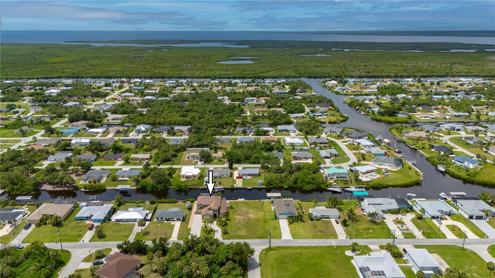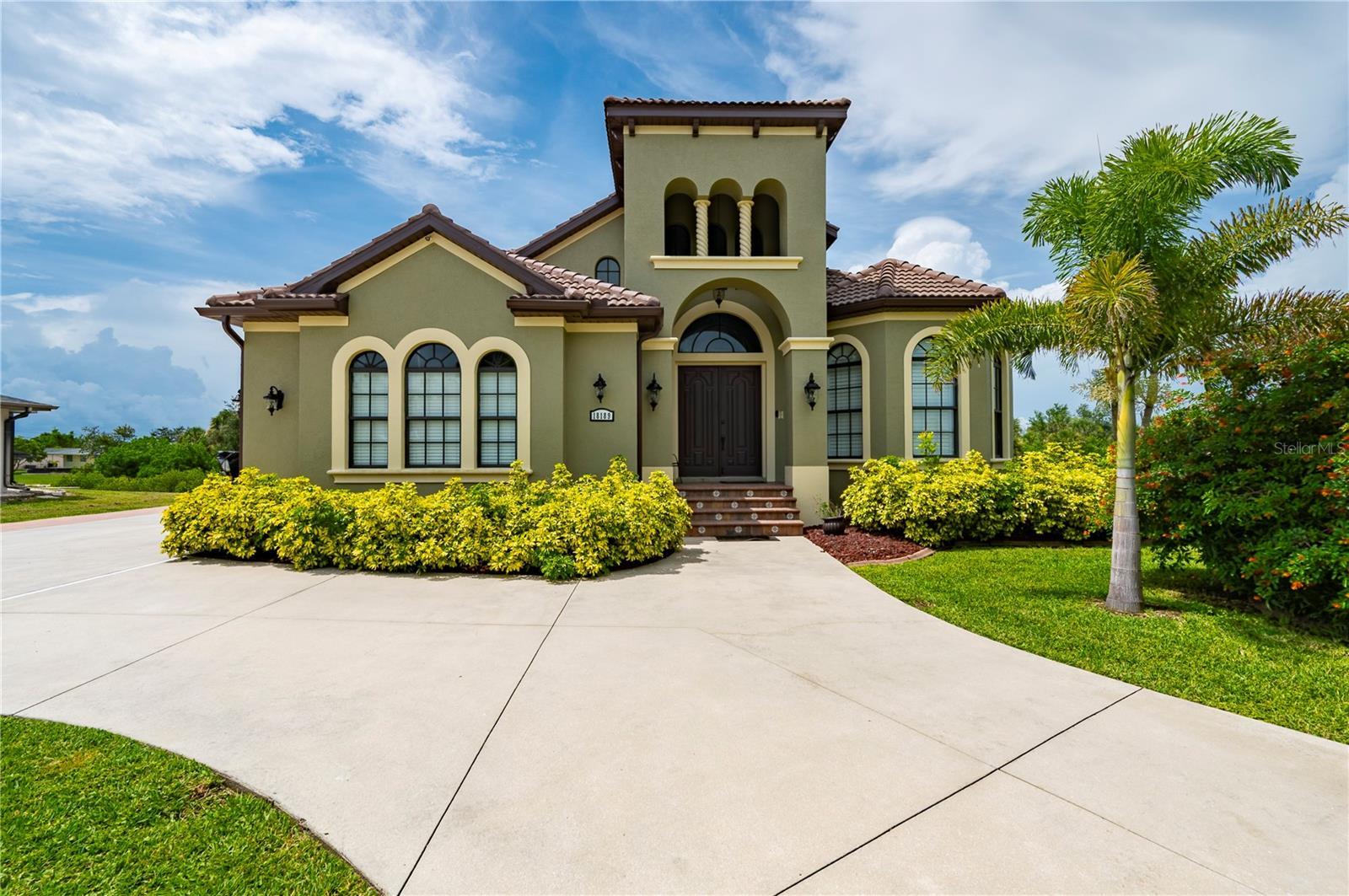 Some homes quietly check the boxes. Others stir something deeper the moment you arrive. From the soft rustle of palm fronds in the breeze to the glint of sun dancing across the canal, this custom 4 bedroom, 4.5 bathroom, 3 car garage waterfront estate in the Port Charlotte Beach area offers more than luxury- it offers a coastal sanctuary. Sailboat-accessible with no fixed bridges, 80 feet of waterfront, and a private 60ft dock with a 24,000lb lift, this is a property designed for those who feel most at home on the water-yet crave elegant living on land. Every inch of this residence reflects thoughtful design and enduring craftsmanship. The entry opens into soaring, light-filled spaces framed by arched passageways, tray ceilings, and stately columns. An elegant double-sided gas fireplace warms both the formal dining room and private office, while plantation shutters, crown molding, and curated finishes add warmth and sophistication. The heart of the home is its gourmet kitchen, seamlessly blending form and function. Solid wood cabinetry, granite countertops, and stainless steel appliances are complemented by an induction cooktop, built-in oven, microwave, warming drawer, and a wine bar with a wine fridge. Whether you're hosting holiday dinners or quiet evenings for two, the layout invites connection and conversation. The first-floor primary suite feels like a private wing, with a spacious walk-in closet and a spa-like bath that features a jetted soaking tub, Roman-style shower with multiple heads, and dual vanities. Upstairs, three oversized bedrooms and two full baths offer privacy and flexibility for family or guests. One bedroom enjoys an en suite, while the other two share a Jack-and-Jill layout. A secluded loft with a balcony offers a peaceful perch overlooking the pool-a perfect morning retreat or creative hideaway. Step outside and the story deepens. A screened porch with double doors leads to the lanai with a heated saltwater pool framed by paver decking, lush tropical landscaping, and a custom tiki hut with a fully equipped outdoor kitchen. It’s a space built for memory-making-from sunlit pool days to starlit dinners by the water. And beyond the beauty? The peace of mind that comes with knowing this home has been impeccably maintained: a new tile roof (2022), impact-resistant windows, new A/C systems with zoned climate control, new pool heater, pump, and salt system, new carpeting, and fresh interior and exterior paint. A circular paver driveway and side-loading 3-car garage offer convenience and curb appeal in equal measure. With no HOA, no deed restrictions, and no flooding or hurricane damage from recent storms, this home offers rare freedom along with its luxury. And the location places you just minutes from Port Charlotte Beach Park, the Sunseeker Resort, golf courses, restaurants, Punta Gorda airport, I-75, and the charm of historic downtown Punta Gorda. Whether it’s a full-time residence or seasonal escape, this is more than just a place to live—it’s a setting for the life you’ve worked hard to create.