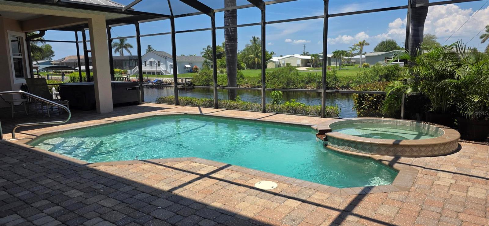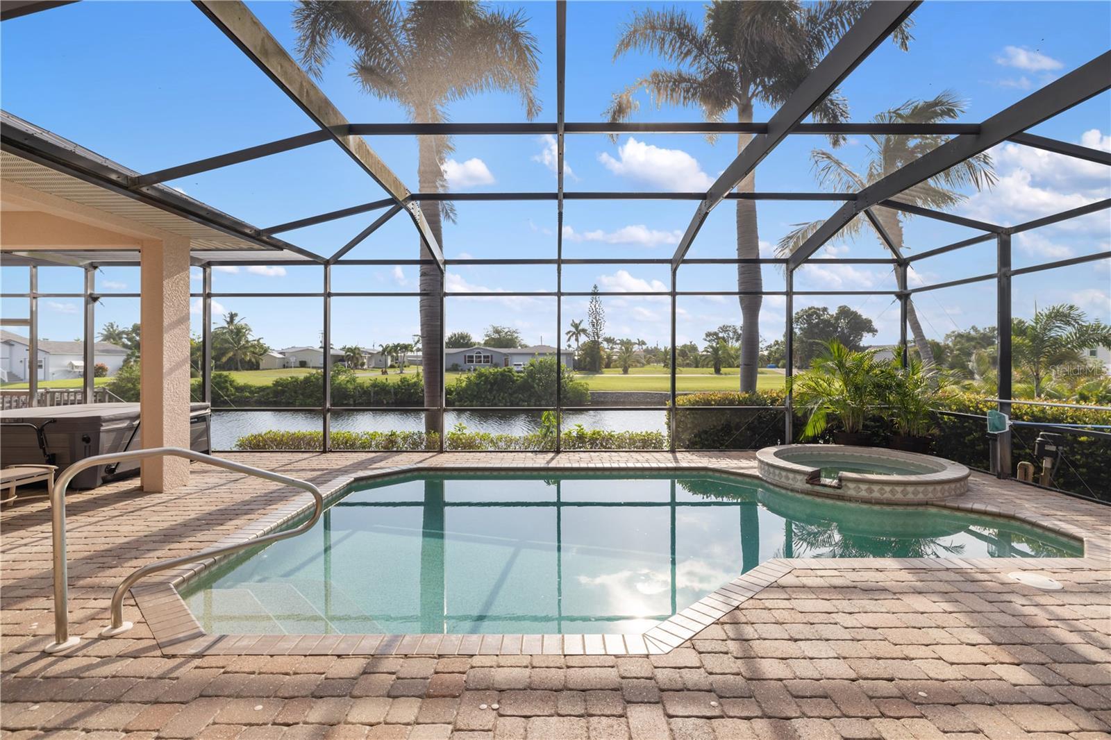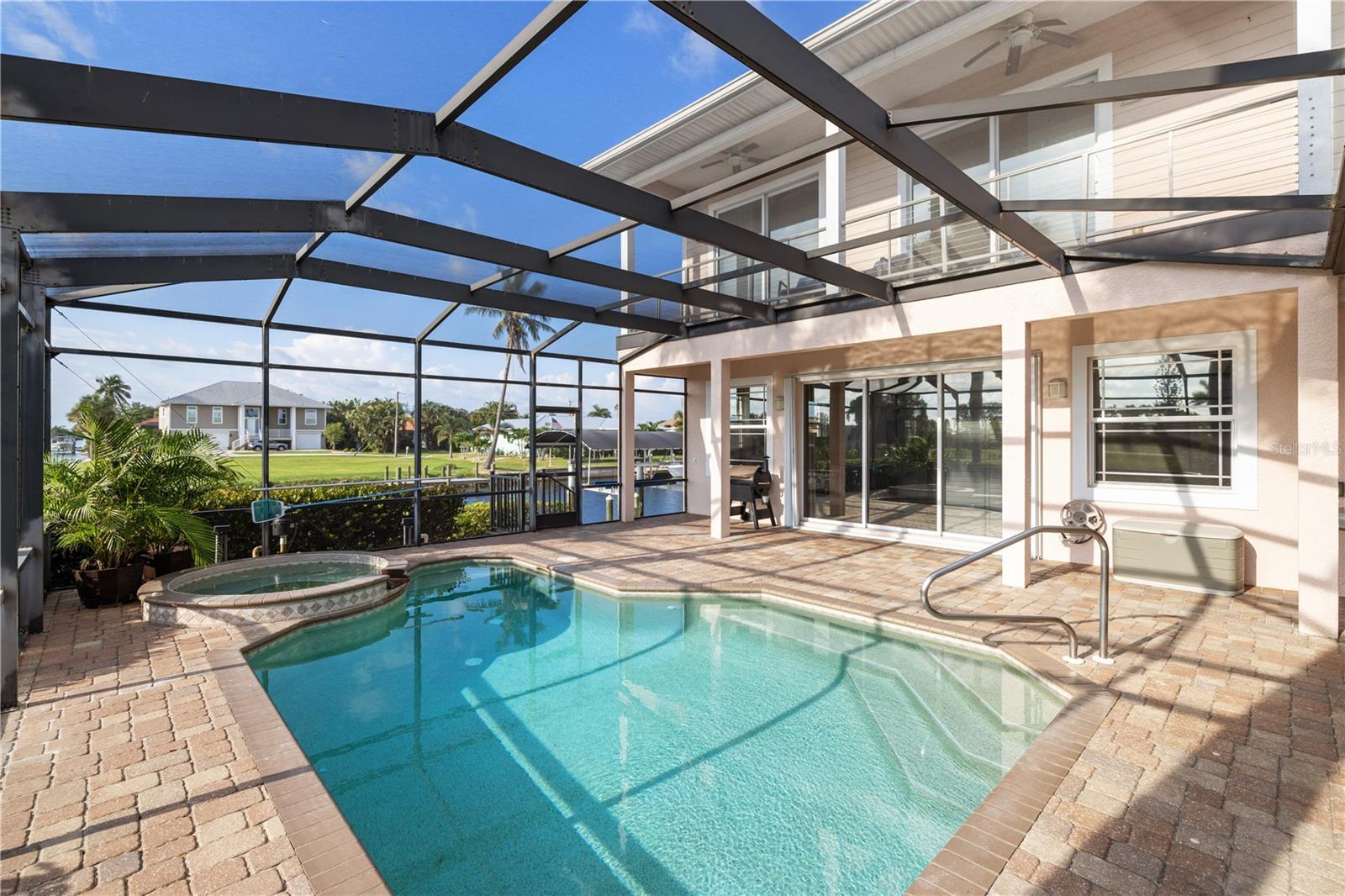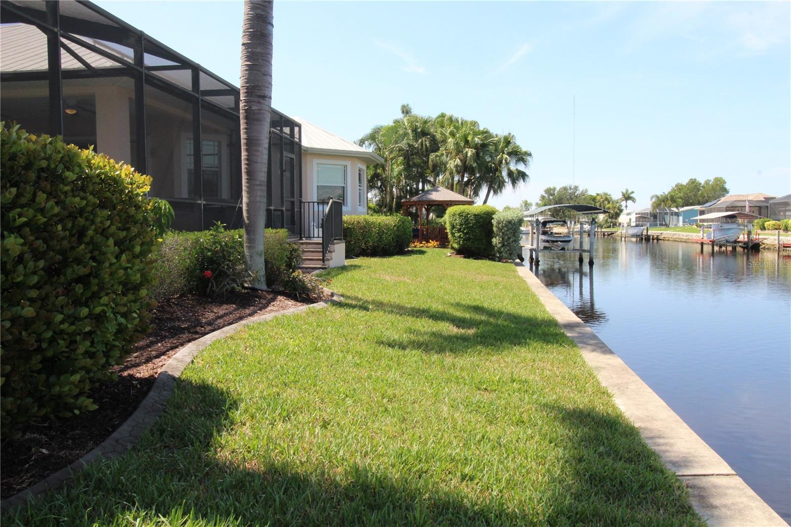 Welcome to Paradise!! Time to Start Living the Florida Lifestyle in this Luxurious 4 Bedroom, 3.5 Bath, 2 Car Garage Pool Home offering 247 feet of Sailboat Saltwater Frontage with 20 ft Composite Dock and Covered Boat Lift that can hold up to 9,000 lbs.....With over 4100 sf under air and 5700 total sf, you will be astonished how much room and privacy you have in this spectacular home. Brand New Lawn recently installed. You will fall in love with this Beautiful Florida Home as you walk through the etched glass double doors....into the foyer that flows into the Great room with amazing views of your private saltwater heated pool and stunning views of the waterway. The living room area features vaulted ceilings with a built-in entertainment center that includes the tv. The Kitchen is a chef's dream with a huge 2-tier breakfast bar, granite countertops, plenty of cabinets and countertop space and center island with wine rack for that extra touch.... The dinette area has three huge windows with exquisite views of the water...The formal dining room has tray ceiling with crown molding to give it that extra touch of class. The Primary bedroom is located on the main floor and is immaculate and huge, has two walk-in closets, large sitting area with sliding glass doors out to your private sparkling pool. Primary Bathroom is amazing with long vanity with dual sinks, garden tub, glass enclosed walk-in shower that is nicely tiled with 5 jets & handheld showerhead and separate toilet area. The second bedroom/office is also on the main floor and quite spacious with two closets. The second bathroom is on the main floor and features a nice vanity, glass enclosed walk-in shower, built-in shelves and door out to your lanai/pool area. The 3rd and 4th bedrooms are upstairs and have walk-in closets and both have sliding glass doors out to the adjoining balcony with new Nezan balcony railings with Spectacular Views of Your New Florida Lifestyle!! The third bathroom is just across from the two bedrooms upstairs... features long vanity with dual sinks, tub/shower with nice tile walls and linen closet. The laundry room is nice size just off the kitchen and features washer, dryer, utility sink and kitchen pantry closet. Half bath is just off the kitchen and great room. Other Features of this Gorgeous Waterfront Home: Tile flooring throughout except the bedrooms and formal dining room have luxury vinyl flooring, Plantation shutters throughout including on all the sliding glass doors, high impact windows, 35 Solar Panels with Electric bill under $50 a month, A/C 2019 & 2021, water heaters 2016 x 2 upstairs, metal roof screws replaced in 2023, Gazebo 2023, concrete curbing 2023, pool heater/pump 2023, Hot tub with cover 2022 and more..... ***One Year Home Protection Plan Included*** Relax out back by your sparkling pool or enjoy hanging out at your Gazebo with breathtaking views of the water.... plenty of room to entertain... Nearby shopping, restaurants, golfing, fishing, parks, beaches and more...... Great Price!!! Great Curb Appeal!!! Great Location!!! Don't miss the boat on this "Exquisite Living Experience"!! Call today for your private showing. Start Living the Florida Lifestyle Now!!