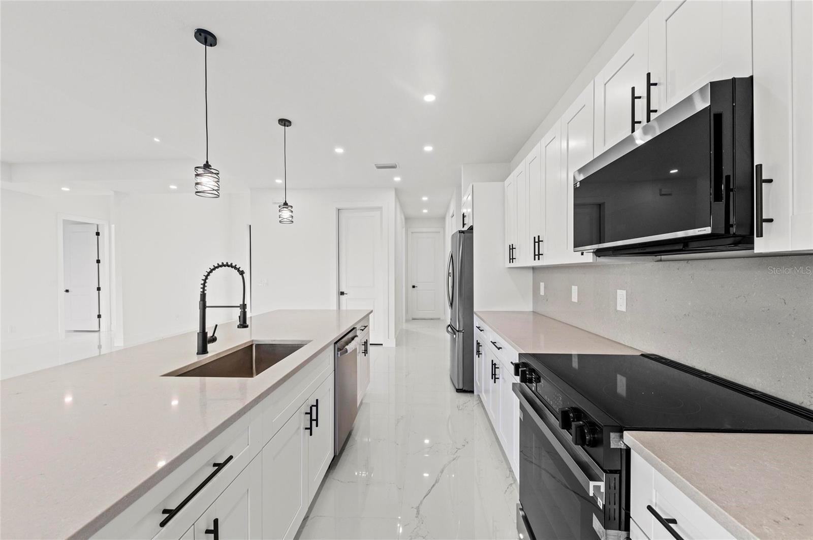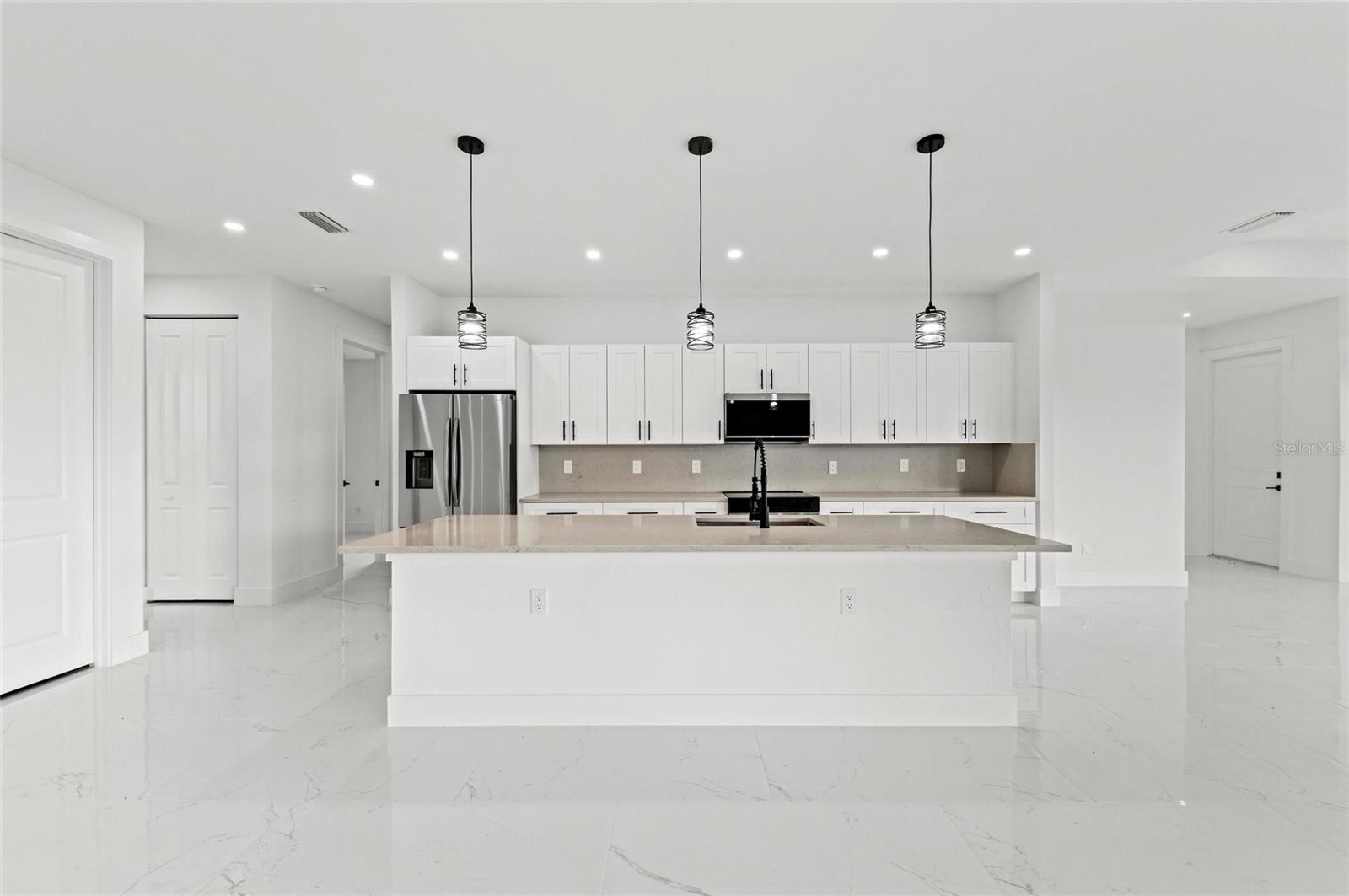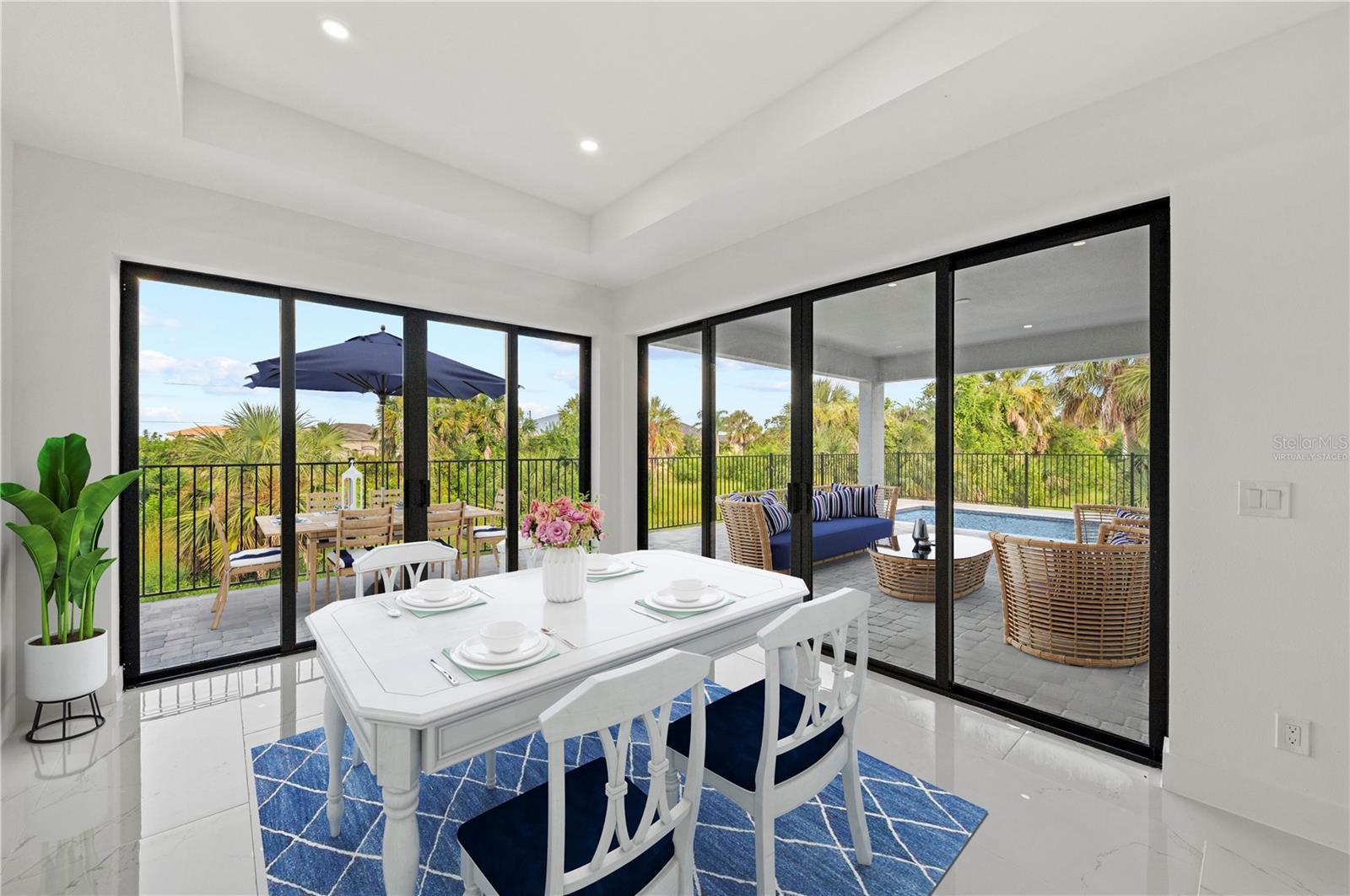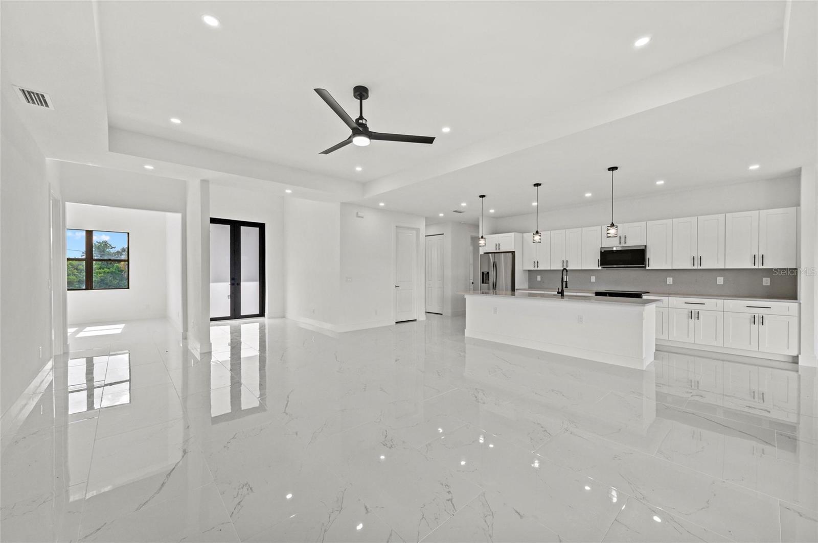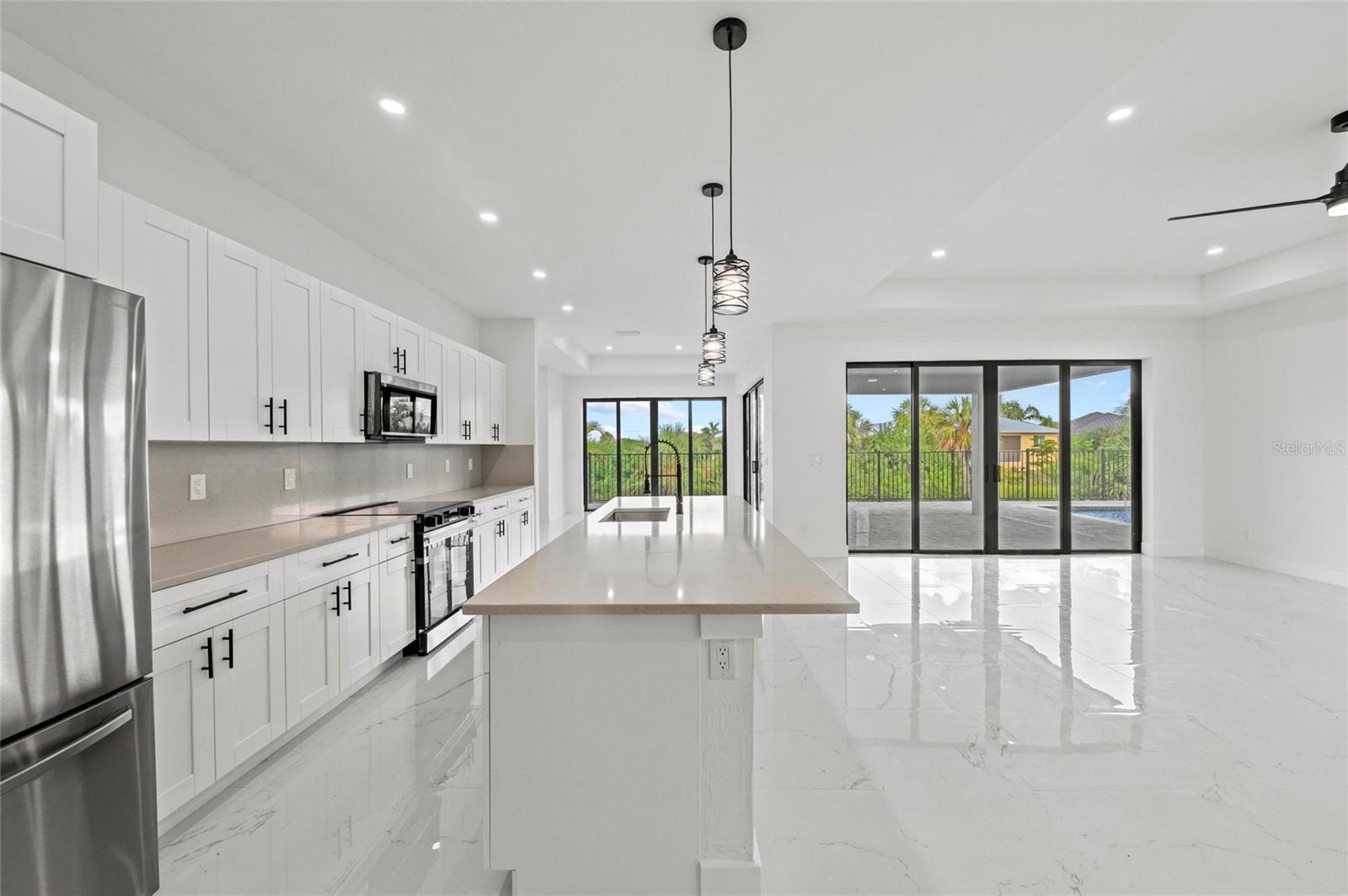 One or more photo(s) has been virtually staged. PRICE REDUCED $20,000! Paradise Found! Discover your dream coastal lifestyle in this brand-new 2025 custom pool home—offering the perfect blend of modern design, elegant comfort, and resort-style living at an incredible value. With over 2,600 sq ft under air (3,439 total), soaring ceilings, and a wide-open layout, this home lives large and bright. Located in the desirable harborfront community of Burnt Store Lakes, you’ll enjoy easy access to the best of Southwest Florida—boating, golf, dining, and more—all just minutes away. The striking curb appeal begins with clean modern lines, a 14-ft portico entry, multiple tile rooflines, and a paver drive that sets a polished tone. Inside, dramatic 12-ft ceilings, sleek 8-ft doors, and glossy tile floors create a fresh, elegant backdrop. Thoughtful black accents—lighting, plumbing fixtures, and window frames—add a touch of timeless sophistication. The contemporary kitchen shines with granite counters, premium cabinetry, upgraded fixtures, and a 10-ft island with bar seating for effortless entertaining. The adjoining dining area overlooks the pool and opens seamlessly to the lanai. The owner’s suite is a private retreat with pool access, dual walk-in closets, a luxurious soaking tub, a spacious walk-in shower, and double vanities. Two additional guest bedrooms offer generous closets and natural light, while the den/flex room provides an ideal office or fourth bedroom option. Outdoor living takes center stage here—an oversized heated pool, extended sun patio, and elevated lanai create the perfect setting for relaxation or entertaining. Positioned along Punta Gorda’s Burnt Store Corridor, this home places you just moments from Safe Harbor Burnt Store Marina—the largest deep-water marina in Southwest Florida—with direct access to the Gulf of America, plus Freedom Boat Club, waterfront dining at Cass Cay, tennis, pickleball, and executive golf. Burnt Store Lakes residents also enjoy community parks, kayak launches, and scenic walking paths. Only 30 minutes to Punta Gorda Airport and an hour to Fort Myers—this is where luxury meets lifestyle. Don’t miss this exceptional opportunity!