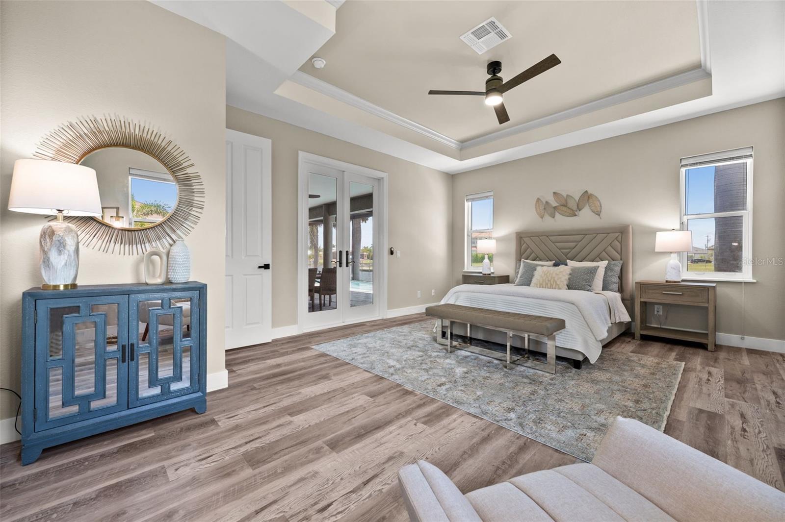 Welcome to 4012 SW 29th Ave, a beautifully renovated Gulf Access pool home offering spectacular views of multiple extra wide intersecting canal basins in the highly sought-after Surfside neighborhood. With 112 feet of waterfront and western exposure, offering breathtaking sunsets, this home boasts one of the most desirable water settings in Cape Coral. Although built in 2005, it lives like a new luxury home thanks to extensive 2023–2024 updates, including a standing-seam metal roof, picture-window pool cage, new flooring throughout, fully remodeled bathrooms, and a stunning chef’s kitchen with quartz waterfall counters, Café appliances, and a walk-in butler’s pantry. The great room features tall volume ceilings and French doors opening to a large covered lanai overlooking the heated 38-foot lap pool and spa. The primary suite offers tray ceilings, French doors to the lanai, two closets, and a spa-style bath with a freestanding tub and a glass-walled shower. The main level includes two additional guest suites, each with either direct bath access or a private bath, plus a fourth bedroom currently used as an office. Upstairs, a spacious loft with a full bath, walk-in closet, and balcony with commanding water views functions perfectly as a media room, office, or optional fifth bedroom. A dedicated pool bath and an updated laundry room complete the layout. This home blends the quality of an established neighborhood with the finishes and design of new construction. With impact windows and doors, elegant materials throughout, and great boating access with just one bridge and no lock to open water, this is an ideal waterfront retreat for year-round or seasonal living.