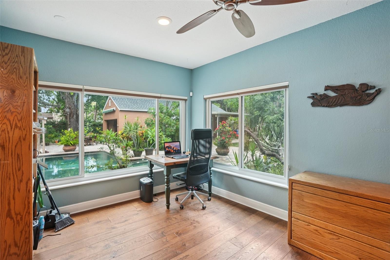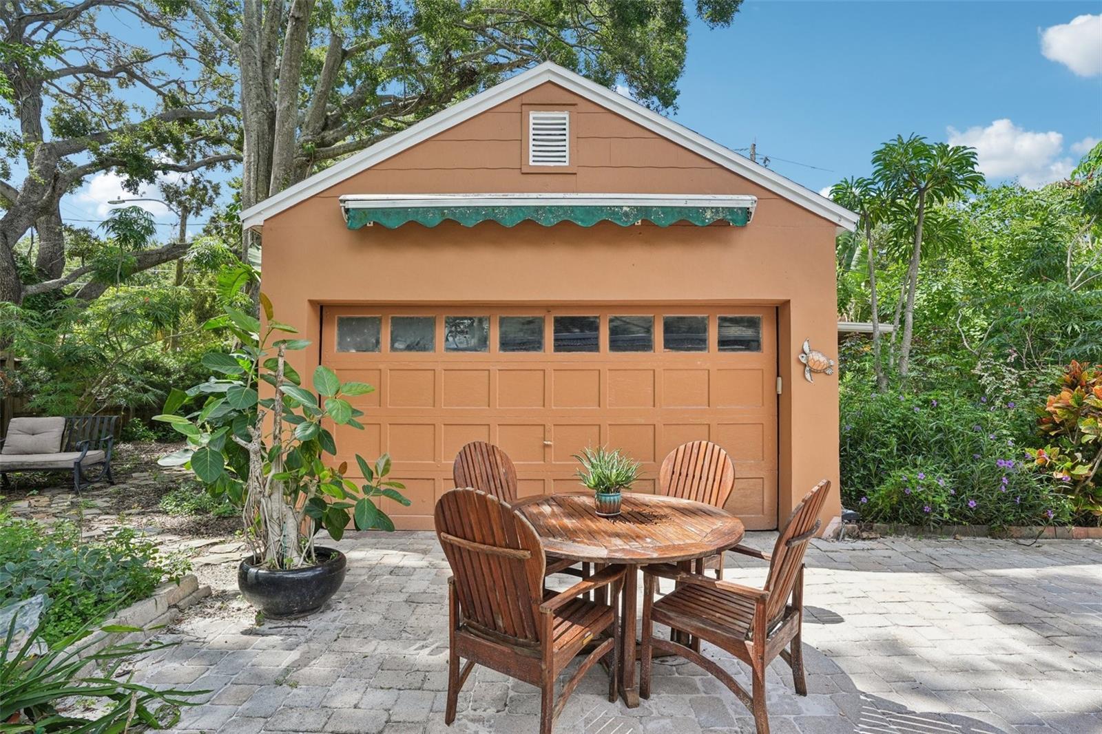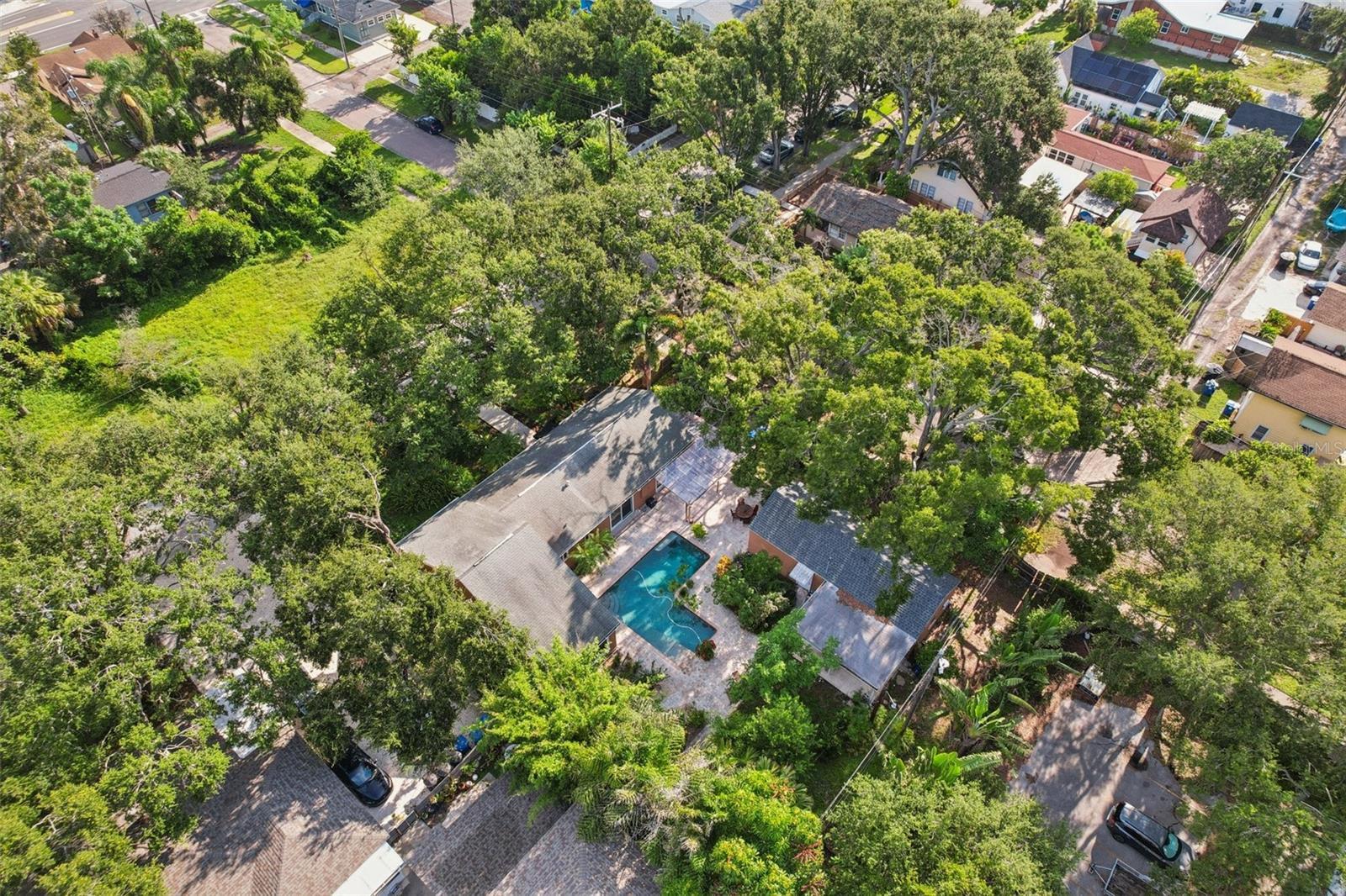 Under contract-accepting backup offers. Welcome to this exceptional residence in the heart of St. Petersburg’s highly desirable Historic Kenwood neighborhood—a community known for its tree-lined streets, colorful bungalows, and vibrant arts scene. This property perfectly blends timeless mid-century architecture with tasteful modern upgrades. Built in 1949, the home has been thoughtfully maintained to honor its original character while providing the conveniences expected in today’s market. With over 2,500 square feet of living space on a rare double lot, it delivers both substance and style. From the moment you arrive, the charming façade, lush landscaping, and welcoming front entry set the tone for what awaits inside. Step through the front door into an interior that feels warm and inviting. The layout flows easily from room to room, creating a space ideal for both everyday living and entertaining. At the heart of the home is the gourmet kitchen, featuring granite countertops, a sleek cooktop, convection microwave, dual sinks, and abundant cabinetry. Its generous prep space and open connection to the living areas make it perfect for casual meals or dinner parties. Adjacent to the kitchen, the spacious grand room offers bamboo hardwood floors, abundant natural light, and views of the lush landscaping and pool. This is the ideal setting for relaxing evenings or lively gatherings. The large primary bedroom is a true retreat, filled with natural light from multiple windows and offering plenty of room for a king-sized bed, sitting area, and more. A generous walk-in closet adds style and function, keeping everything organized and accessible. Additional bedrooms provide comfortable accommodations for guests or flexible space for an office, gym, or hobbies. Outside, the expansive backyard is a private oasis. A custom saltwater pool with a gentle ramp entrance invites you to cool off or simply float in the sun, surrounded by tropical gardens, mature trees, and a greenhouse for year-round gardening. The double lot offers rare extra space for outdoor living—whether sunbathing, dining under the shade, or hosting a barbecue. For hobbyists, the detached garage doubles as a workshop with ample space for tools, projects, and recreational gear. The thoughtful property design allows for generous parking without sacrificing green space. All of this is just minutes from downtown St. Petersburg’s dining, shopping, galleries, waterfront parks, and entertainment. Sports fans will appreciate the proximity to Tropicana Field, and beach lovers can reach the Gulf in no time. Located in FEMA’s non-flood Zone X, this home combines style, practicality, and a prime location into one outstanding offering.