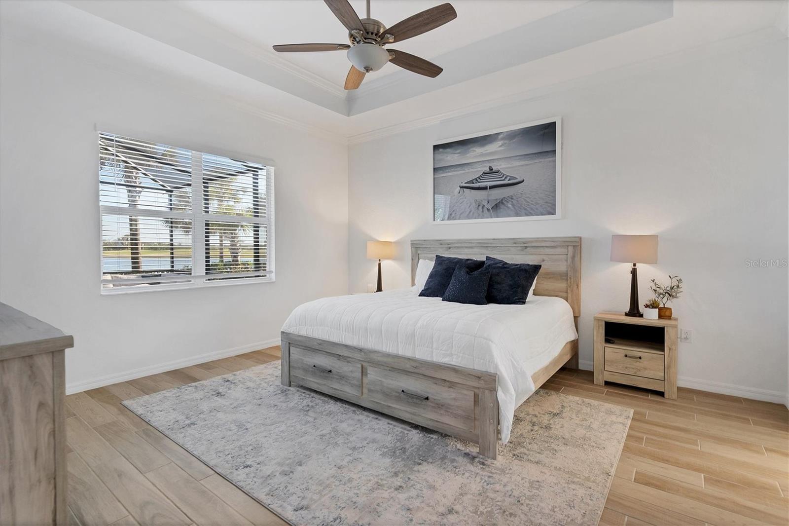 - Ceiling Fans(s), Crown Molding, Eat-in Kitchen, High Ceilings, Open Floorplan, Other, Smart Home, Split Bedroom, Stone Counters, Thermostat, Tray Ceiling(s), Walk-In Closet(s), Window Treatments