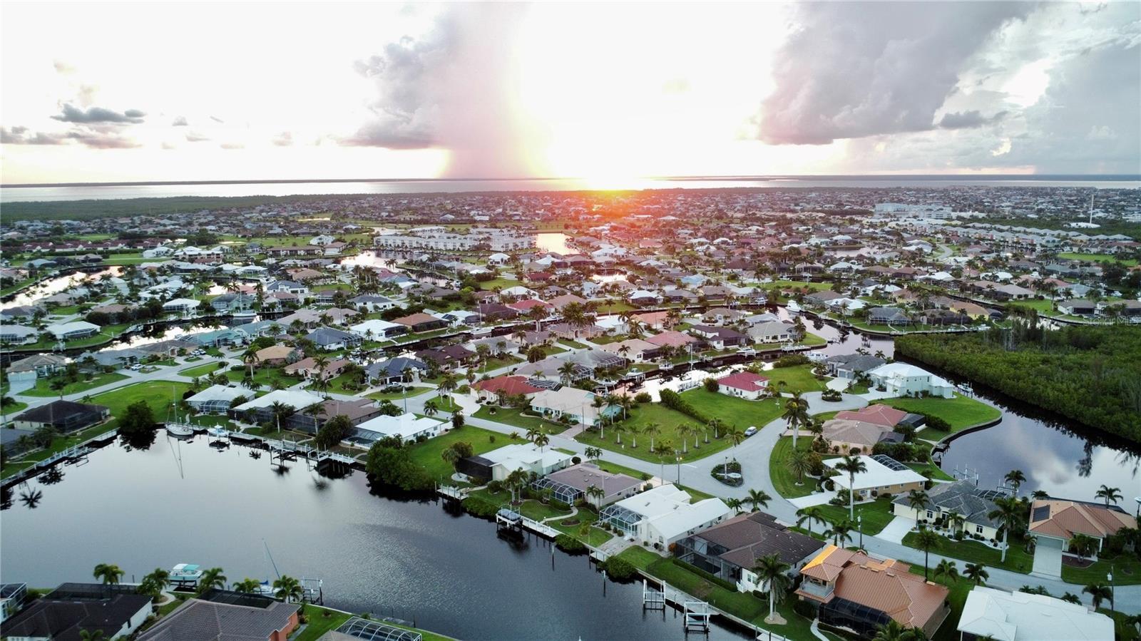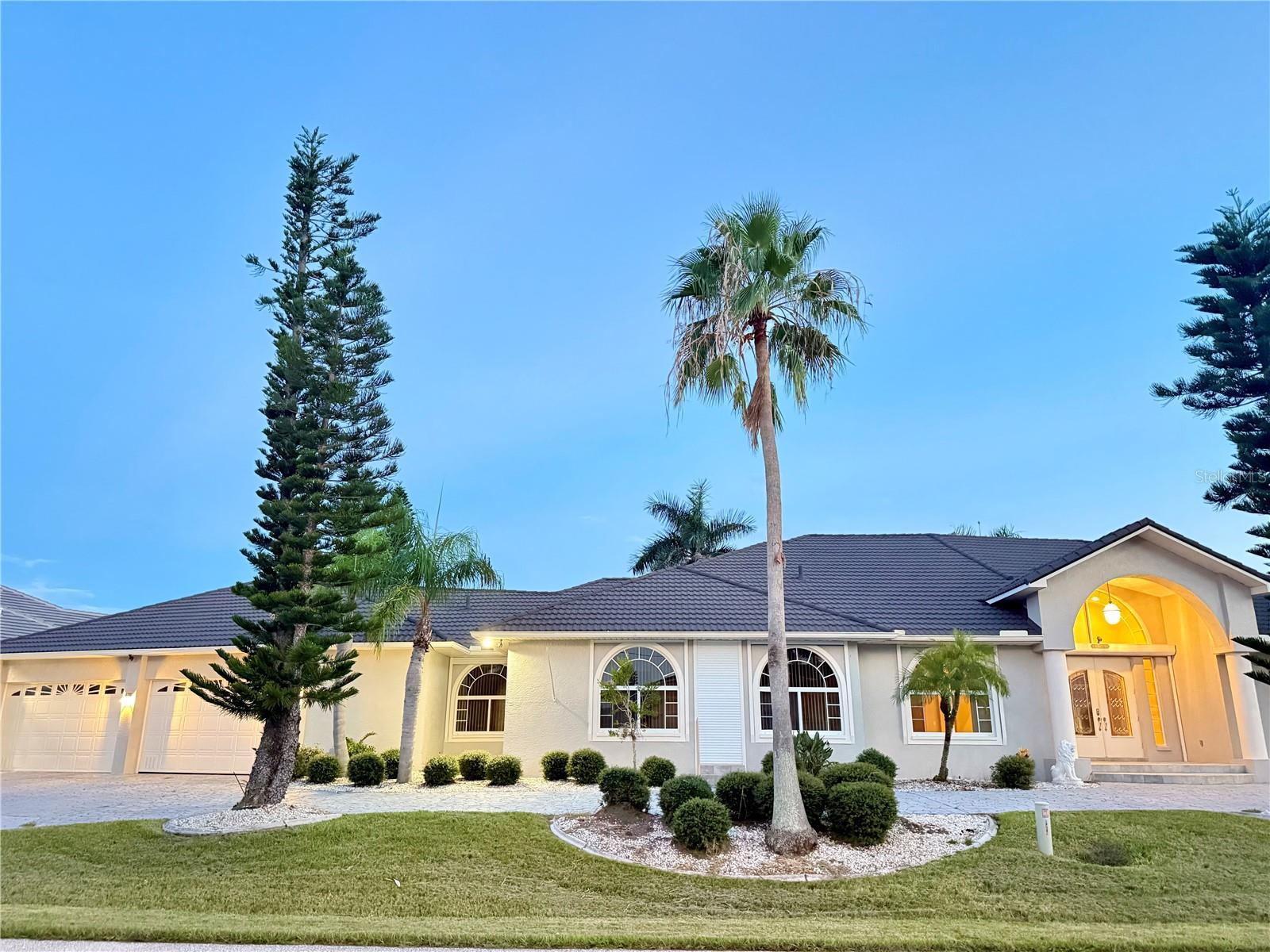One or more photo(s) has been virtually staged. WATERFRONT EXECUTIVE RESIDENCE – Custom Built by Prestige Homes Freshly painted and move-in ready, this extraordinary Punta Gorda Isles residence sits on a RARE DOUBLE LOT at the end of a quiet cul-de-sac. NEW SOD (2025) A BRAND NEW ROOF (2024) with 40-year warranty, 3 new A/C units, refinished travertine floors, and a FULLY REMODELED KITCHEN (2024) with granite countertops elevate this home to true luxury living. Boater’s Paradise: 128-ft city-maintained concrete seawall, concrete dock with electric & water, 10,000 lb lift, and sailboat access with no fixed bridges to Charlotte Harbor & the Gulf. Expansive Living Space: Nearly 4,400 sq.ft. under air (over 6,400 total) featuring 4+ bedrooms, 4 baths, a heated & cooled 4-car garage, great room, formal living & dining, OFFICE ROOM with Murphy bed and plus versatile bonus rooms (IN LAW) with 2 Murphy beds. Elegant Interior: Cathedral and tray ceilings, wood-look tile, and natural light throughout. The owner’s suite offers a spa-like bath with walk-in tub, shower, and dual sinks. A guest bath doubles as a pool bath. Outdoor Oasis: New screens, saltwater pool with new feeder, summer kitchen, covered lanai, expansive sun deck, and outdoor shower—all designed for entertaining and enjoying breathtaking canal views. Additional Highlights: Circular driveway, storm shutters, city water & sewer, no HOA. Prime Location: Minutes to Fishermen’s Village, historic downtown, golf, parks, walking trails, dining, and the new Sunseeker Resort. This home combines unmatched upgrades, prime waterfront, and the ultimate Southwest Florida lifestyle.
