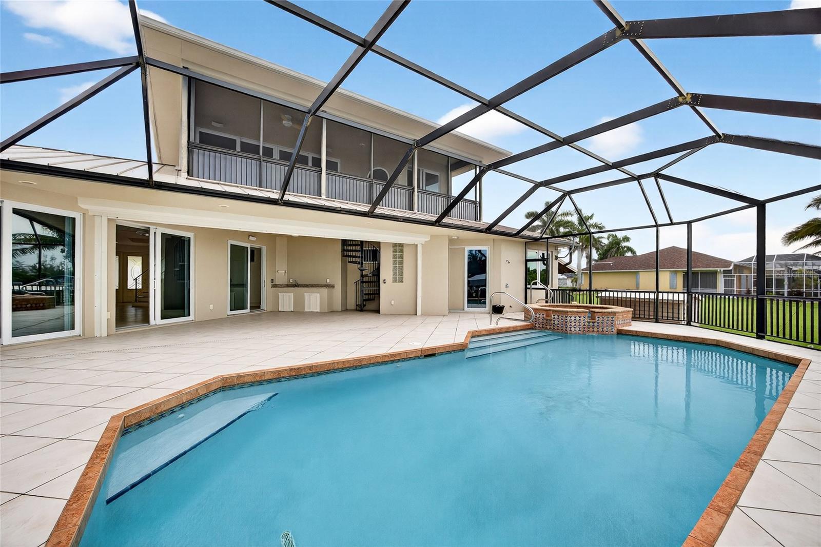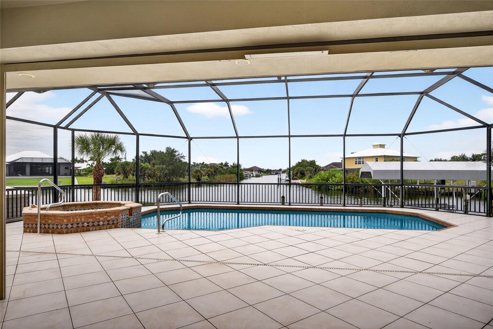 SOUTH GULF COVE! RARE GEM! ONE-OWNER CUSTOM-BUILT 2-STORY 4 BEDROOM, 3.5 BATHS, 3-CAR GARAGE WATERFRONT POOL HOME PERFECT FOR THOSE WHO DESIRE SAILBOAT ACCESS TO CHARLOTTE HARBOR AND THE GULF! Enjoy 85 feet of waterfrontage with stunning long and intersecting canal views, a composite dock equipped with water and electric, and a covered lift. Ideal for boating enthusiasts! Elevator access from the garage to the main and second floors makes for easy living and accessibility throughout the home. This home features a generous open floor plan with 3,250 square feet of living space. The great room is light-filled, with 3 sliders opening to the outdoors, perfect for bringing the outdoors in. Cook up a storm in the spacious kitchen with tons of custom cabinetry, granite counters, a breakfast nook, and a breakfast bar. Ideal for family gatherings. The primary suite offers lanai access and a private bath featuring a soaking tub and walk-in shower, providing a perfect oasis after a long day. The 2nd floor features guest suite or in-law suite, wood flooring, family room with large slider to balcony overlooking amazing water views and outdoor spiral staircase for quick access to pool. Outdoor entertaining area features covered lanai, cooking prep area, outdoor bath access, outdoor shower, screened heated saltwater pool and spa and paver uncovered patio to dock with true southern exposure so guests from the north can enjoy and abundance of sunshine. Additional special features include metal roof, high impact glass, electric roll down shutter on lanai, security system, central vacuum, large first floor laundry with sink and cabinets for storage, freshly painted interior, paver circular driveway, outdoor shed and mature tropical landscaping. South Gulf Cove community offers voluntary HOA with clubhouse for special events, four parks nearby including South Gulf Cove Park and Boat Ramp and close to fine dining, shopping, parks, numerous golf courses, boating, and a short drive to Boca Grande and Don Pedro Island beaches. This beautiful home is move-in-ready and perfect for a growing family. Schedule your private showing today!