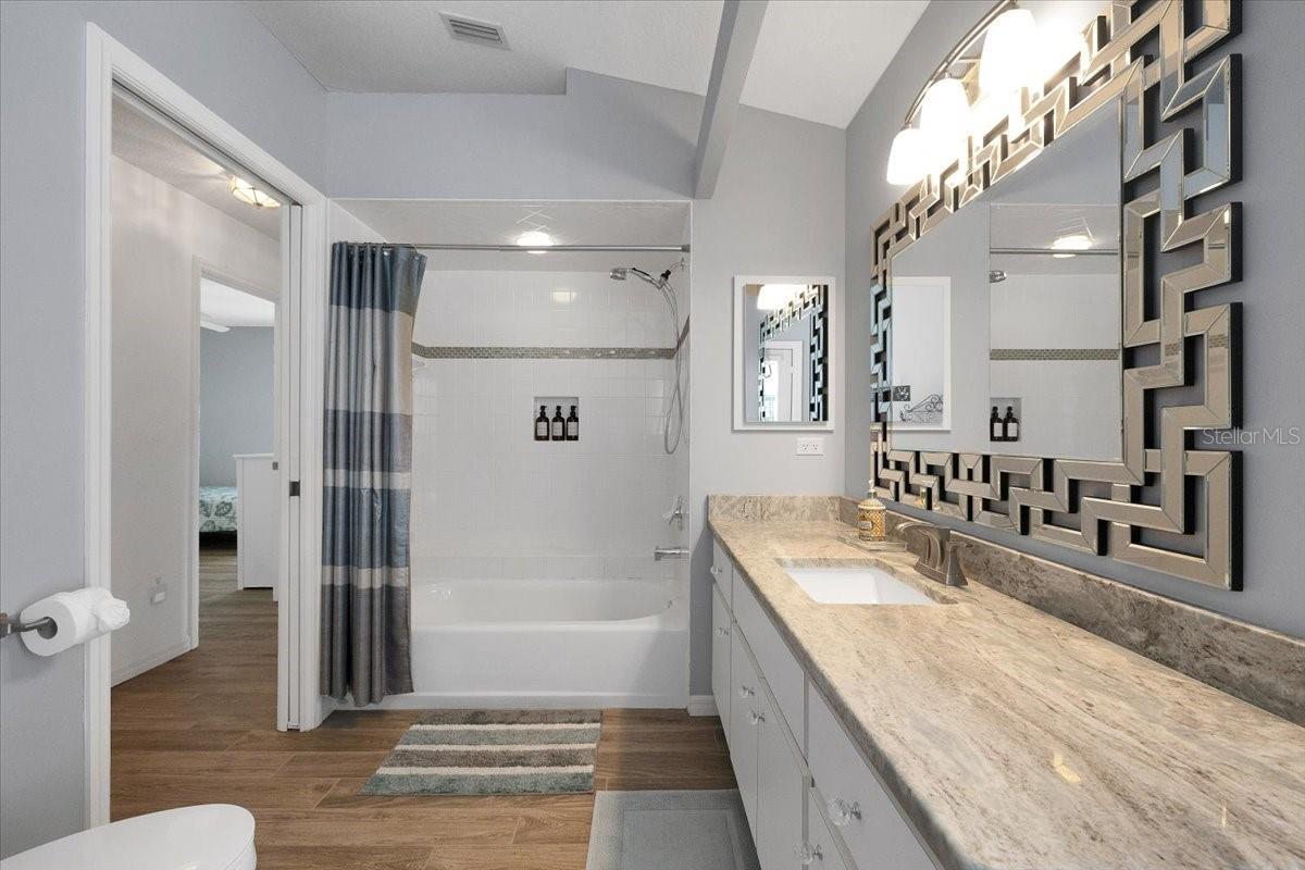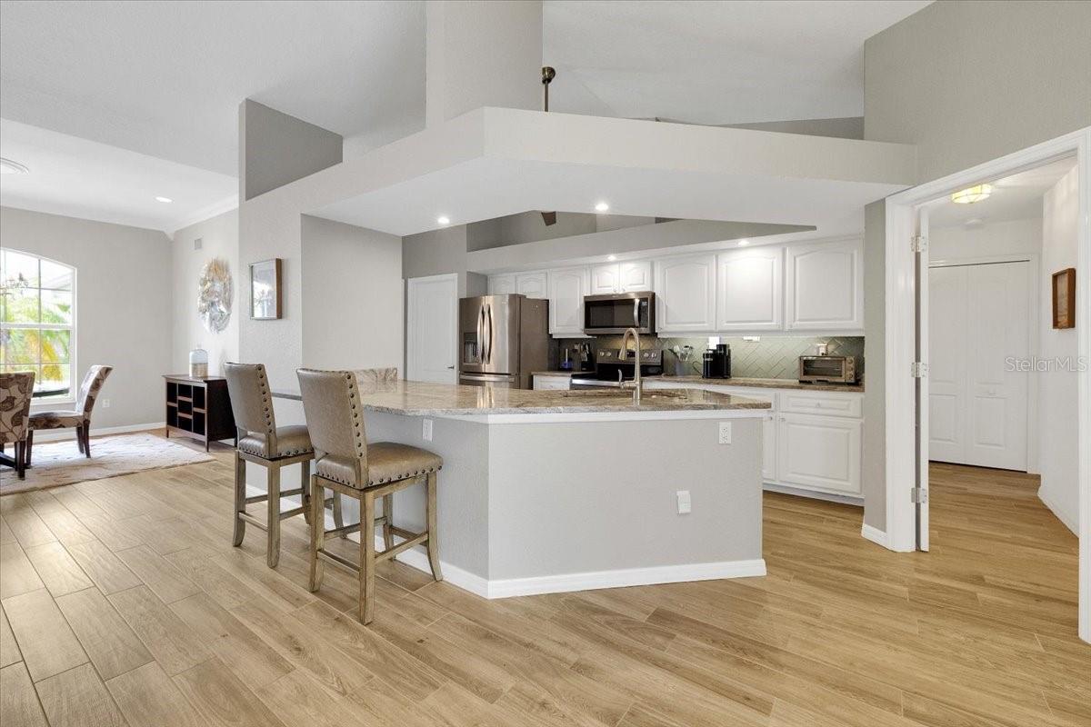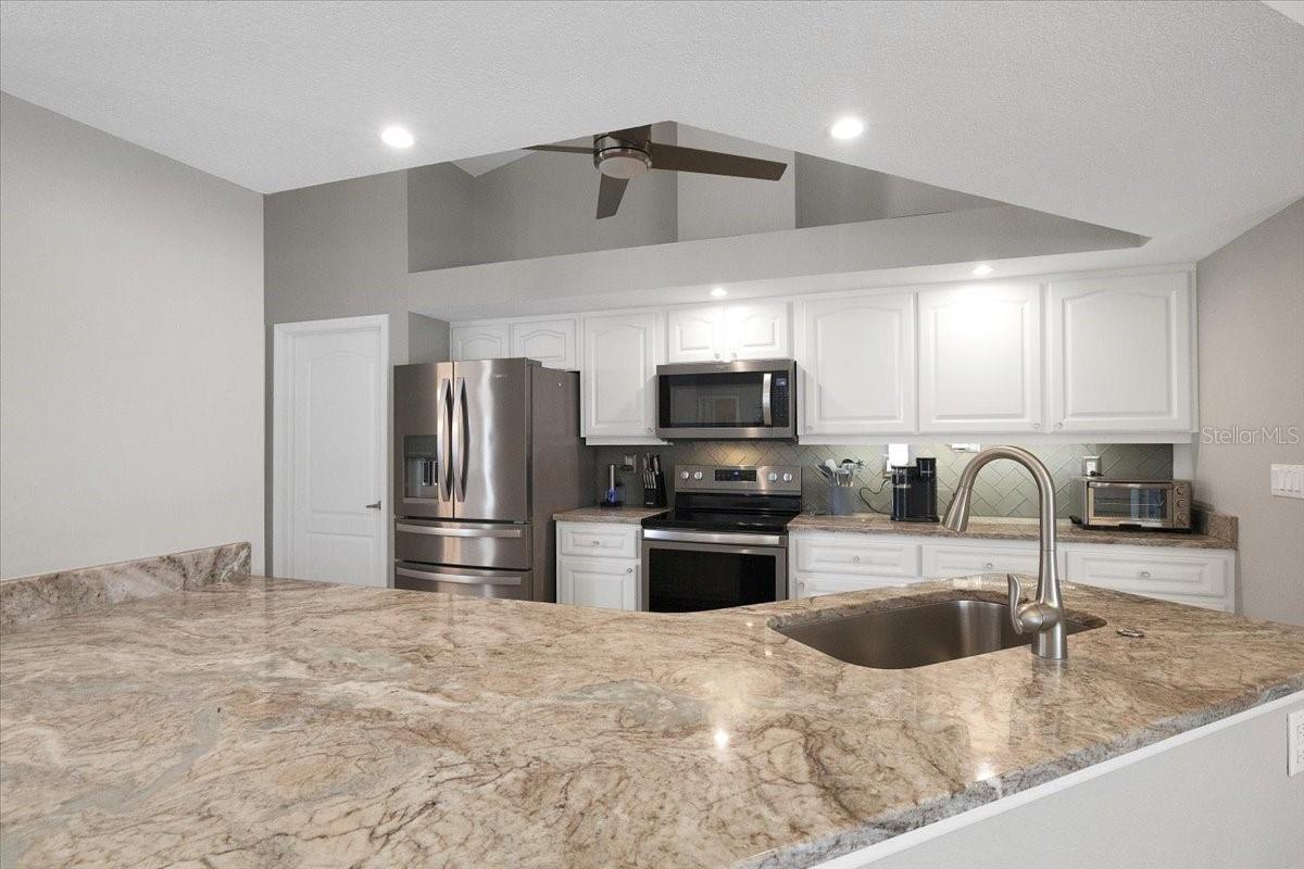 - Built-in Features, Ceiling Fans(s), High Ceilings, Open Floorplan, Split Bedroom, Stone Counters, Walk-In Closet(s), Window Treatments