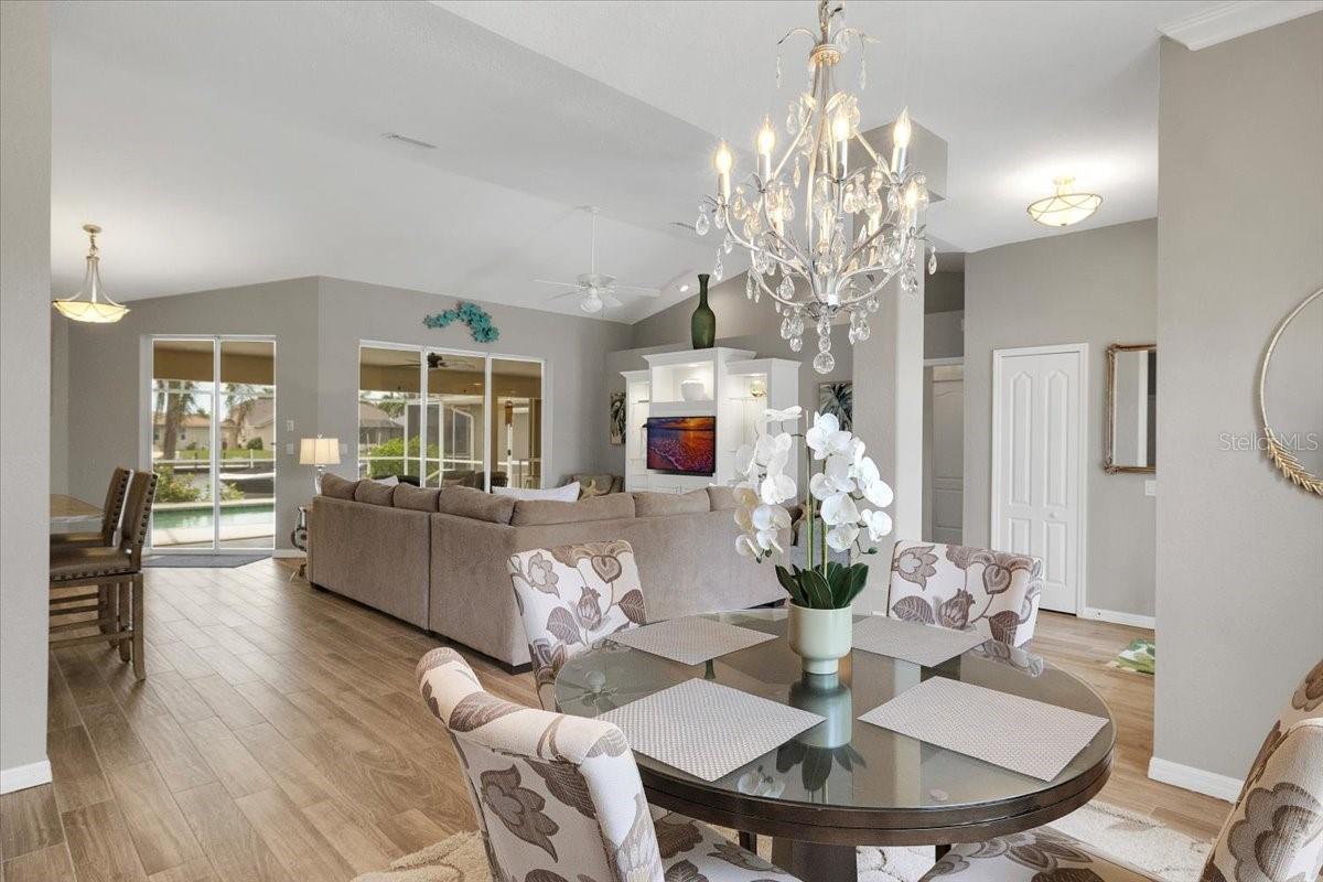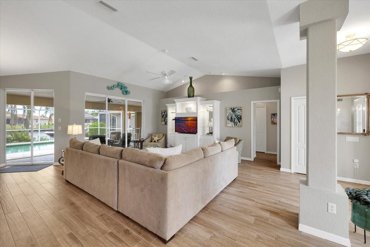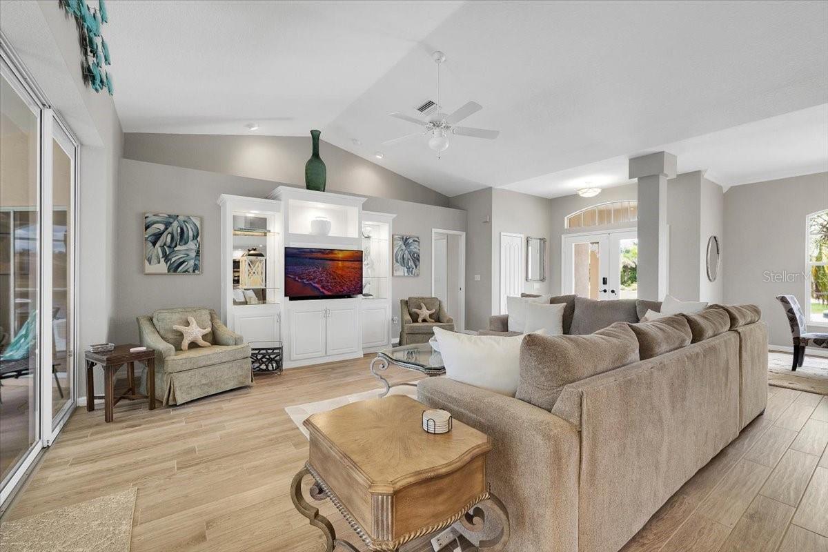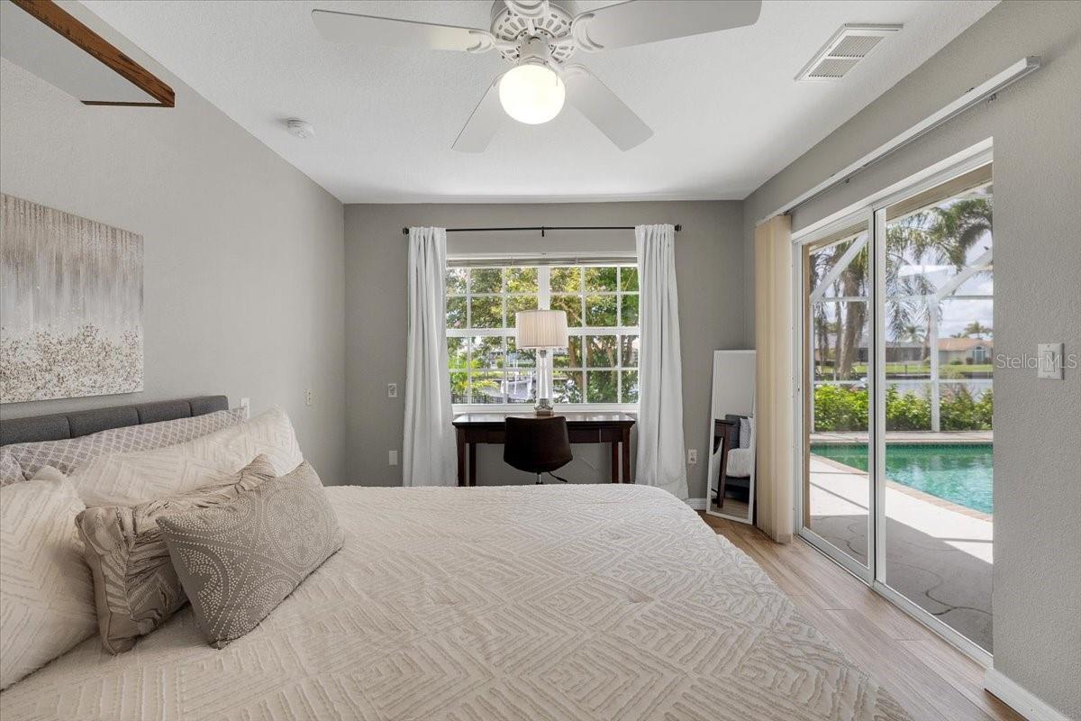 Welcome to this beautifully maintained 3-bedroom, 2-bathroom home located in the waterfront community of Burnt Store Isles. Perfectly designed for comfort, style, and Florida living, this residence comes fully furnished and truly turn-key. From the extended driveway to the oversized 2.5-car garage, there’s plenty of room for vehicles, hobbies, or a workshop. Step through the French doors into a bright, open floor plan filled with natural light. The kitchen is a chef’s delight with granite counters, stainless steel appliances, and a breakfast bar. A cozy breakfast nook overlooks the pool, screened lanai, and canal, while a more spacious dining area is ideal for entertaining. The primary suite is thoughtfully placed on its own side of the home for added privacy and includes direct access to the lanai and pool. It features a walk-in closet and en-suite bathroom with dual sinks, a garden tub, and a separate shower. On the opposite side of the home, two guest bedrooms share a full bathroom—the larger guest room also opens to the pool and lanai. The laundry room is well-equipped with built-in cabinets, ample counter space, and a sink for convenience. Outdoor living is at its finest here. The expansive screened lanai provides plenty of space for dining, barbecues, or simply lounging by the sparkling pool. Accordion shutters on the lanai and manual shutters on windows and doors offer extra hurricane protection. Beyond the pool lies a concrete seawall and city-maintained canal, complete with a private dock featuring water, electric, and a 4,000-pound boat lift. From here, enjoy direct boating access to Charlotte Harbor via Alligator Creek. Residents of Burnt Store Isles enjoy optional memberships to the Burnt Store Isles Association and the Burnt Store Isles Boat Club for enhanced social and boating activities. At the heart of the community, Twin Isles Country Club offers golf, tennis, and dining with membership options. The location is also ideal—close to highways, airports, and historic downtown Punta Gorda’s dining, shopping, and entertainment. This home is the perfect blend of luxury, convenience, and waterfront lifestyle—ready for you to move in and start living your Florida dream.