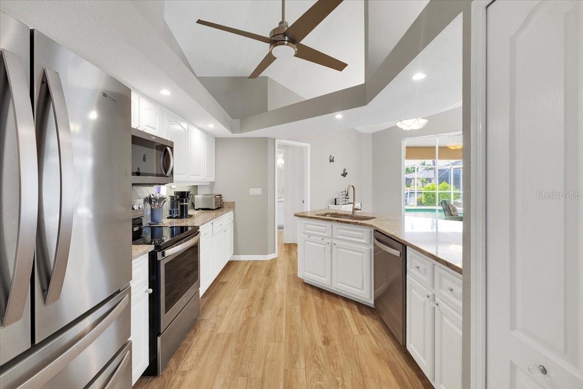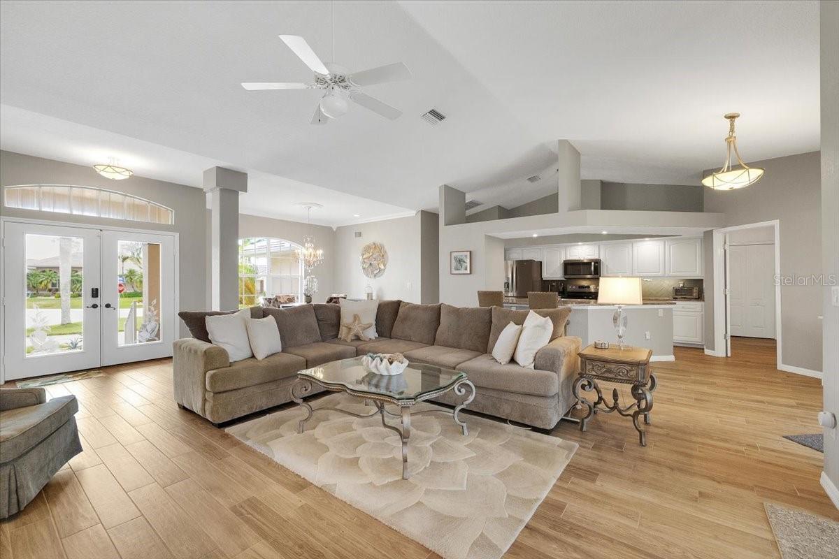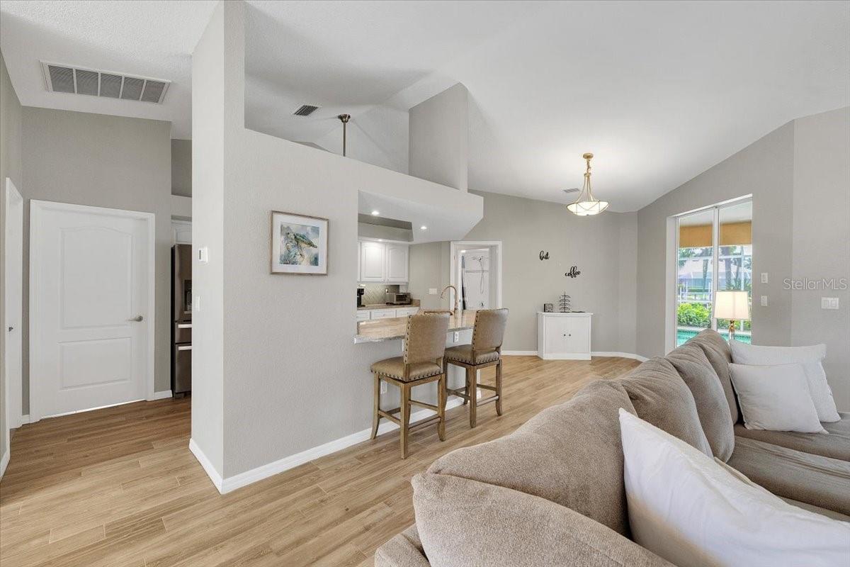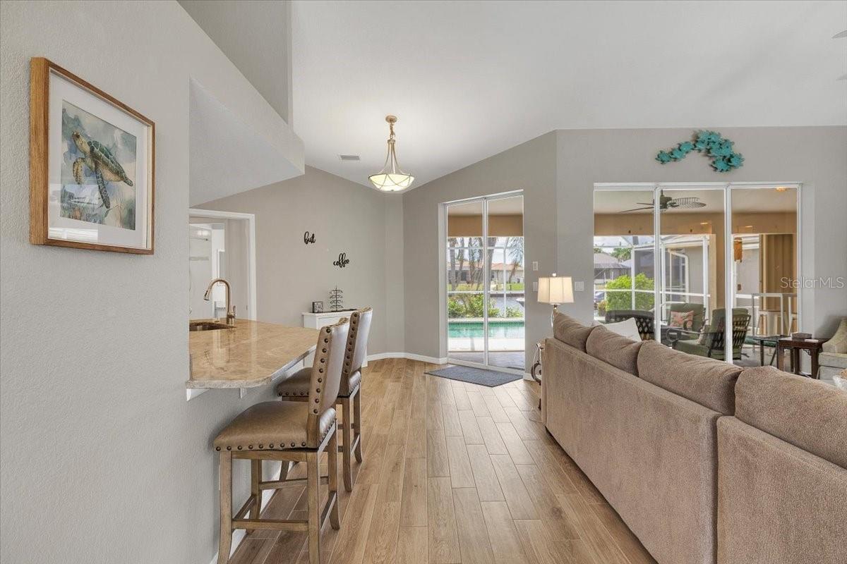 Welcome to this beautifully maintained 3-bedroom, 2-bathroom home located in the waterfront community of Burnt Store Isles. Perfectly designed for comfort, style, and Florida living, this residence comes fully furnished and truly turn-key. From the extended driveway to the oversized 2.5-car garage, there’s plenty of room for vehicles, hobbies, or a workshop. Step through the French doors into a bright, open floor plan filled with natural light. The kitchen is a chef’s delight with granite counters, stainless steel appliances, and a breakfast bar. A cozy breakfast nook overlooks the pool, screened lanai, and canal, while a more spacious dining area is ideal for entertaining. The primary suite is thoughtfully placed on its own side of the home for added privacy and includes direct access to the lanai and pool. It features a walk-in closet and en-suite bathroom with dual sinks, a garden tub, and a separate shower. On the opposite side of the home, two guest bedrooms share a full bathroom—the larger guest room also opens to the pool and lanai. The laundry room is well-equipped with built-in cabinets, ample counter space, and a sink for convenience. Outdoor living is at its finest here. The expansive screened lanai provides plenty of space for dining, barbecues, or simply lounging by the sparkling pool. Accordion shutters on the lanai and manual shutters on windows and doors offer extra hurricane protection. Beyond the pool lies a concrete seawall and city-maintained canal, complete with a private dock featuring water, electric, and a 4,000-pound boat lift. From here, enjoy direct boating access to Charlotte Harbor via Alligator Creek. Residents of Burnt Store Isles enjoy optional memberships to the Burnt Store Isles Association and the Burnt Store Isles Boat Club for enhanced social and boating activities. At the heart of the community, Twin Isles Country Club offers golf, tennis, and dining with membership options. The location is also ideal—close to highways, airports, and historic downtown Punta Gorda’s dining, shopping, and entertainment. This home is the perfect blend of luxury, convenience, and waterfront lifestyle—ready for you to move in and start living your Florida dream.