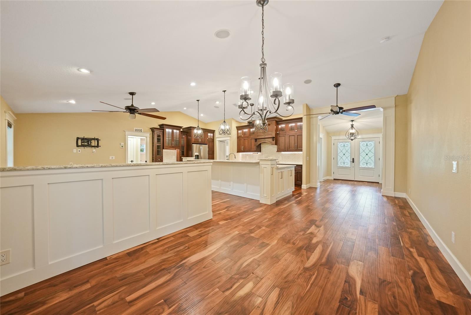 - Cathedral Ceiling(s), Ceiling Fans(s), High Ceilings, Kitchen/Family Room Combo, Living Room/Dining Room Combo, Open Floorplan, Primary Bedroom Main Floor, Solid Wood Cabinets, Split Bedroom, Stone Counters, Thermostat, Walk-In Closet(s)