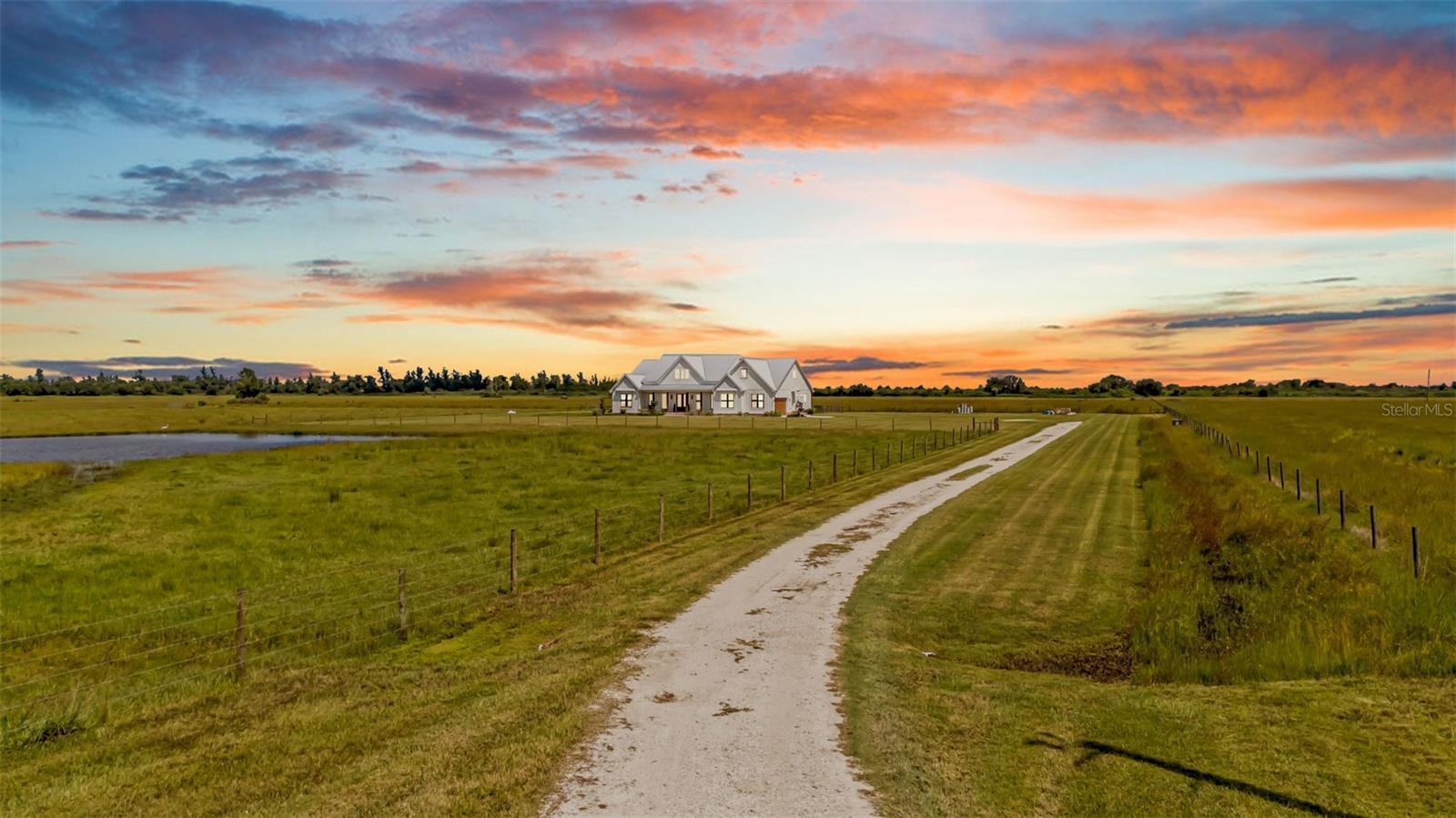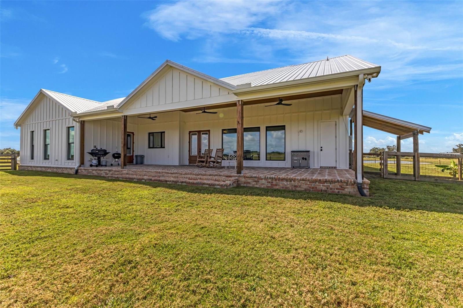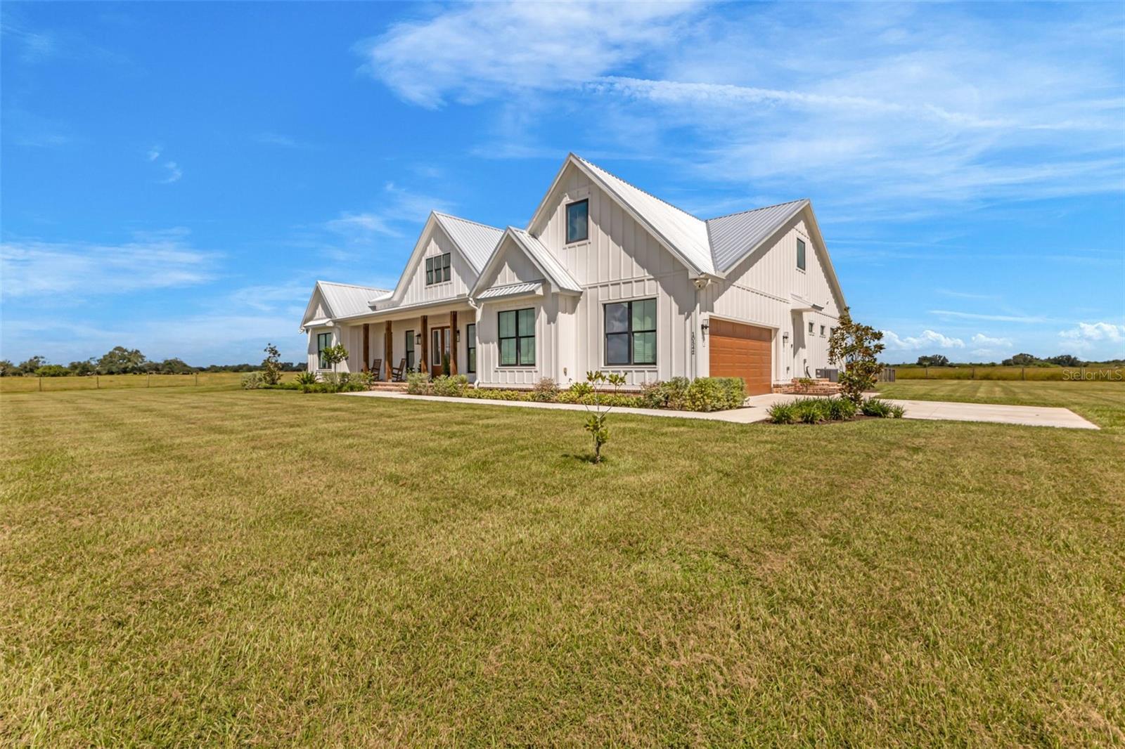 Welcome to your dream retreat in the heart of DeSoto County. Set on 10.25± acres with a private pond, this 2023-built custom farmhouse blends timeless charm with modern luxury. From the moment you arrive, the board-and-batten hardboard siding, brick accents, and durable metal roof set the tone for the quality and craftsmanship throughout. Step inside and you’re greeted by soaring vaulted ceilings, wide-plank LVP wood look floors, and walls of windows that frame sweeping views of the surrounding pasture. The open-concept living area features a gorgeous brick fireplace with custom built-ins, creating the perfect place to gather with family and friends. The kitchen is the true centerpiece of this home, designed for both everyday living and entertaining. Brick accents, a large center island, and double ovens provide warmth and function, while an oversized refrigerator and walk-in butler’s pantry make storage effortless. Just off the kitchen, the spacious dining area flows seamlessly to the expansive back porch where herringbone brick floors, tongue-and-groove ceilings, and pastoral views set the stage for unforgettable evenings outdoors. The primary suite is a private sanctuary with a spa-inspired bathroom offering dual vanities, a soaking tub, and a walk-in shower. A custom-designed closet provides abundant storage with built-in shelving and drawers. Two additional bedrooms, a dedicated office, and a generous laundry room with farmhouse sink add to the home’s thoughtful design. Beyond the home, the land is ready for your vision Whether it’s horses, cattle, gardening, or simply enjoying wide open space. The property is fully fenced and designed for those who value both privacy and the freedom of country living, yet it remains just minutes from the conveniences of Arcadia. This is more than a home, it’s a lifestyle. A place where modern amenities meet timeless farmhouse style, and where every sunrise over the pasture reminds you that you’re exactly where you’re meant to be.