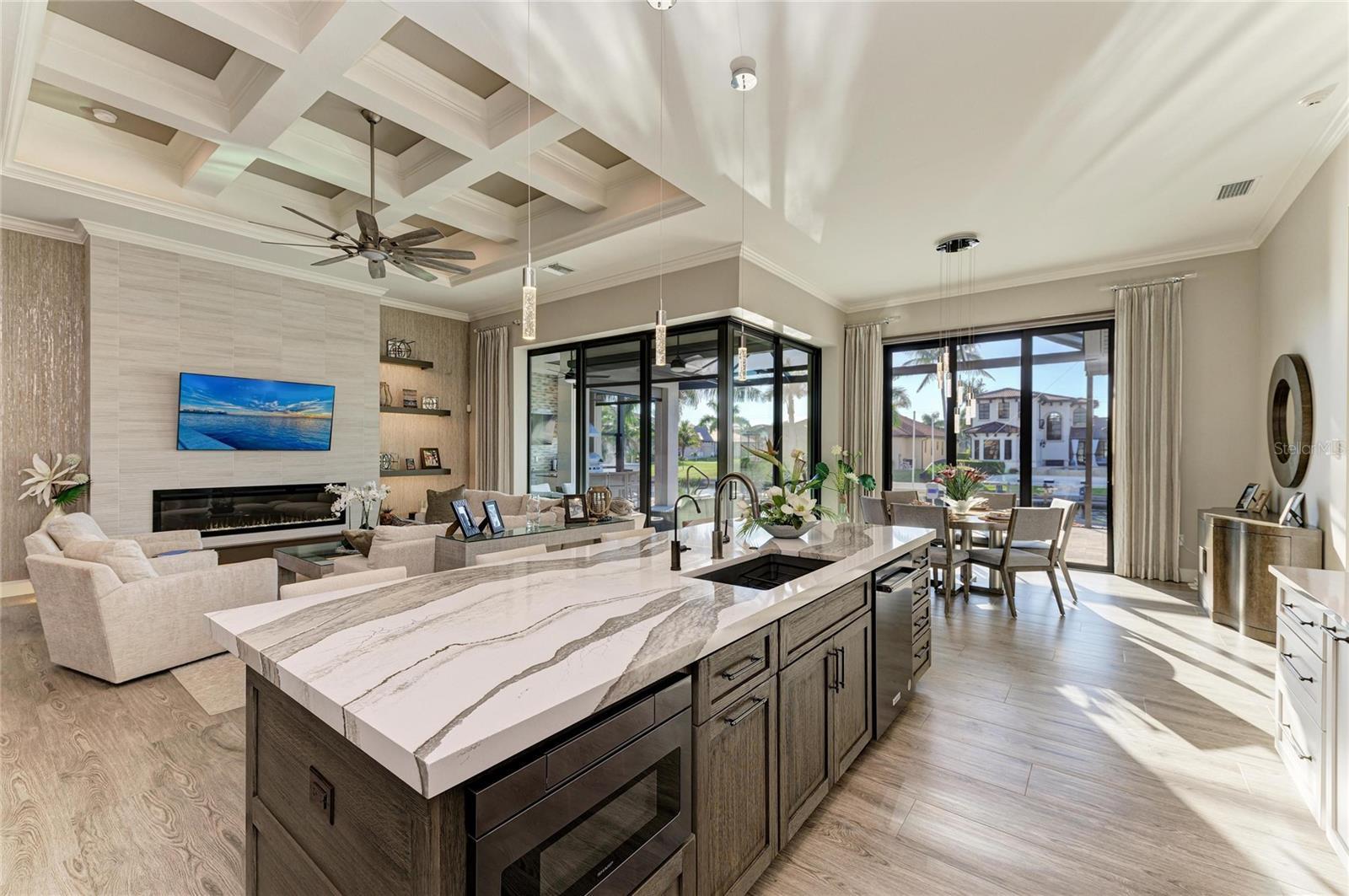 Custom Charlotte Harbor Construction Waterfront Masterpiece – Old Sailboat Section, Punta Gorda Isles This luxury waterfront pool home defines elegance, craftsmanship, and the true Southwest Florida boating lifestyle. Built by Charlotte Harbor Construction, this custom 3 bedroom, 3.5 bathroom plus den estate is perfectly positioned in the old sailboat section of Punta Gorda Isles, just seconds to Charlotte Harbor via a fast-access deep-water canal—no bridges, no waiting, just pure boating freedom. From the moment you arrive, this home impresses with architectural distinction—high-hat entry, corbel detailing, mature landscaping with low-voltage lighting, and an oversized paver driveway leading to an oversized 3-car garage with epoxy floors and is GENERATOR ready with a plug and switch to weather any storm. The custom front door with waterfall glass sets the tone for the exceptional finishes inside. Step through and be captivated by the open great room, where coffered and tongue-and-groove ceilings, porcelain tile flooring, 10’ zero-corner sliding glass doors, and a custom feature wall with fireplace and built-ins create a seamless connection between indoor luxury and outdoor serenity. The chef’s kitchen is an entertainer’s dream, featuring KitchenAid appliances, custom cabinetry, quartz countertops, a large center island, and a bar area overlooking the water and pool. The formal dining area completes the heart of the home, designed for gatherings both grand and intimate. The primary suite is a private sanctuary with lanai access through sliding glass doors, dual custom walk-in closets, and a spa-style en suite bathroom with dual vanities, a large multi-head shower, and private water closet. On the opposite side, two guest suites each feature luxurious en suite bathrooms and ample closet space, offering comfort and privacy for family and friends. Thoughtful design continues with a den/home office, a welcoming drop zone, a well-equipped laundry room, and a half bath conveniently located near the main living area. Step outside to your resort-style lanai, finished with shellstone travertine decking, and enjoy a heated pool and spa, outdoor kitchen with bar seating, and grilling station—all overlooking the wide canal and oversized concrete dock with lifts. Whether entertaining or relaxing, this is outdoor living at its best. This home truly has it all—stunning craftsmanship, unmatched boating access, and a premier Punta Gorda Isles location. For the discerning buyer seeking luxury, comfort, and the ultimate waterfront lifestyle, this property delivers. Schedule your private showing today and experience the pinnacle of Punta Gorda Isles living. BE SURE TO CLICK THE FULL VIRTUAL TOUR LINKS FOR DETAILS!