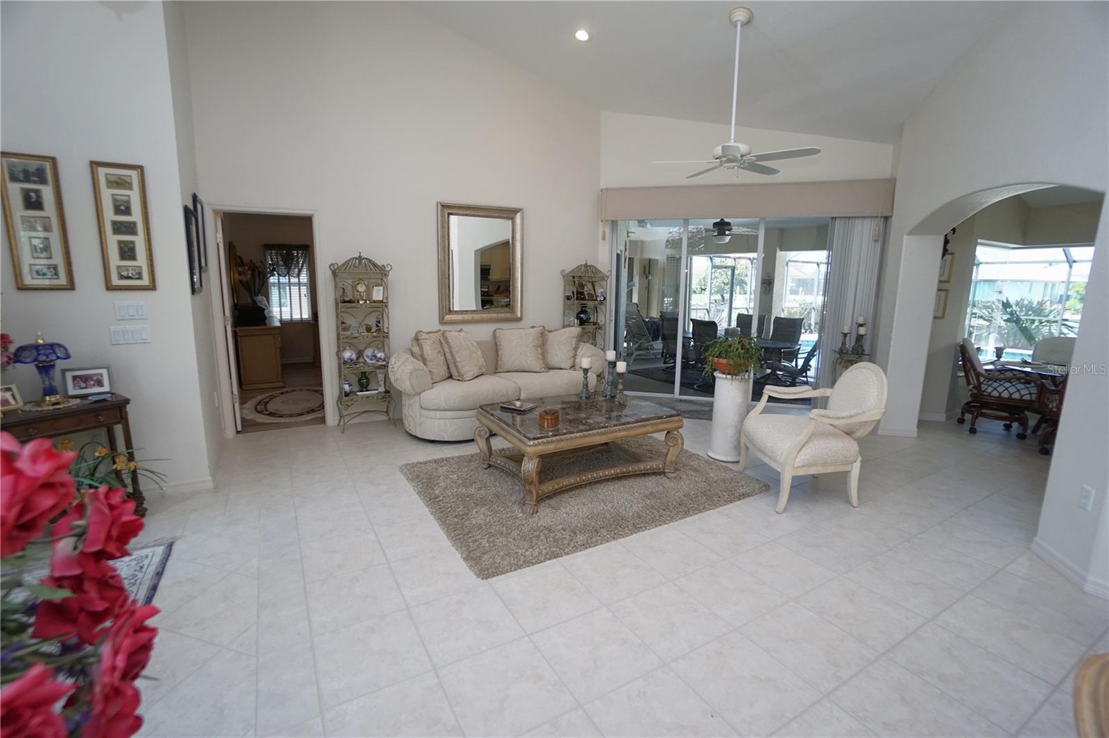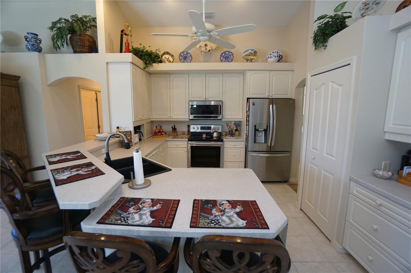 - Ceiling Fans(s), Eat-in Kitchen, High Ceilings, Kitchen/Family Room Combo, Living Room/Dining Room Combo, Open Floorplan, Solid Surface Counters, Vaulted Ceiling(s), Walk-In Closet(s), Window Treatments