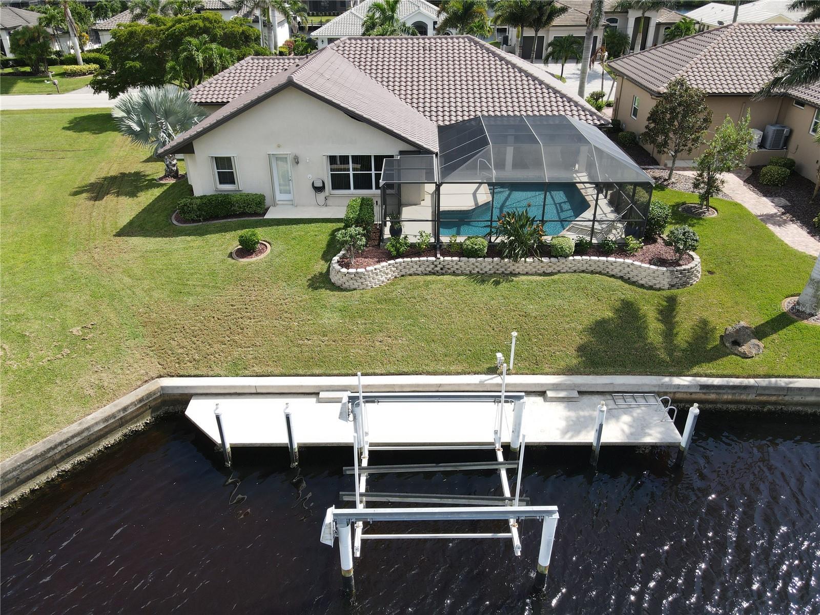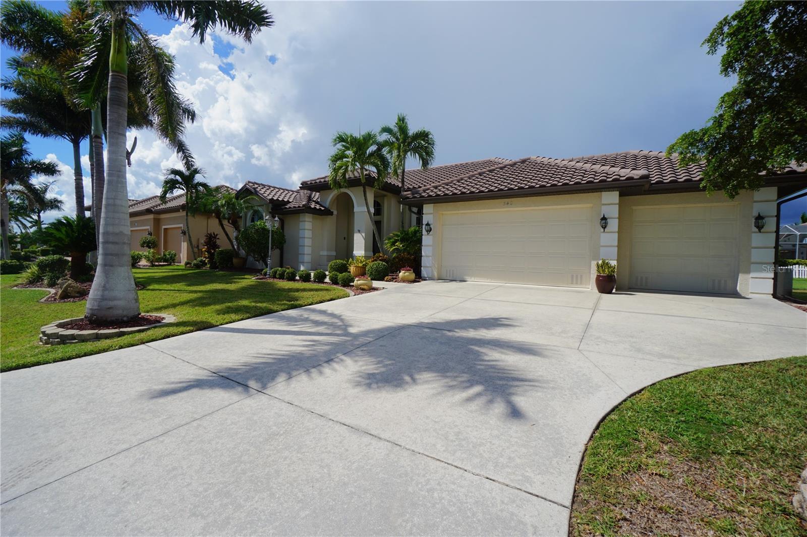 Welcome to Punta Gorda and this amazing home in the golf course community of Burnt Store Isles. This home is a 2192 sq. ft. waterfront 3 bedroom and 2 bath pool home that has a spacious 30 x 21 3 car garage and an oversized driveway. The curb appeal of this home is second to none and the pictures do not lie. You will love it as soon as you pull into the driveway. Immaculate and mature landscaping makes it feel like home and you haven't even went inside yet. All the windows and pool lanai area have easy to close hurricane rated accordion shutters so the home can be closed up in minutes. With a new 30 ft. extension on the dock, you will now have up to 45 ft. of concrete dock with a 10,000 lb. lift. A brand new tile roof in 2025 with new soffits and gutters to match in 2023. The pool was completely refinished in 2022 with a new pool pump in 2022 as well. The air conditioner was replaced in 2021 along with a new central vac in 2021. Kinetico Water Softner system in 2021 as well. Now lets go inside and you will absolutely love this layout. It is open and centers all the windows to direct them to the large L-shaped pool and lanai. Large format ceramic tile in all the living areas and a laminate flooring in the primary bedroom. The pool measures in at 24 x 13 and has a nice covered lanai area of 10 x 22 that feels like an extension of the family room or living room with triple pocket sliding doors. All 3 bedrooms have walk in closets which is hard to find and the primary bedroom has a his and her walk in closet set up along with a his and her sink set up in the bathroom. The vanity, counter top and faucets were recently updated in the primary bathroom. Bedroom #2 has a built in office desk area and a Murphy bed that is staying with the home. With vaulted ceilings this home feels even larger once you are inside and with both a dedicated family room and kitchen area complimented by a dedicated living room and formal dining area, this home is perfect for so many family and friend get togethers or holiday events. The kitchen is open to the family room and has a pantry that has roll out drawers as does most of the cabinets with a brand new refrigerator in 2024. Then you can appreciate the location of this home as a Publix Shopping Center and Home Depot are at the front of the neighborhood. A Walmart is just minutes away and then downtown Punta Gorda and all the fine dining options with additonal pubs and sports bars just minutes away as well. Downtown Punta Gorda has so much to offer with the miles long harbor walk along the water and all the unique and historical sites to see. Pickleball has become a huge fan favorite in Punta Gorda and there are pickleball courts all over including the newer pickleplex that has league and tournament play all the time. A night time walk as the sun sets down at the park with a great playground and plenty of walking trails for your favorite pet. For all you golfing enthusiast, there is 8 golf courses within a 20 minute drive with Twin Isles Golf and Country Club running through this neighborhood and on picture #48. Plenty of places to put the boat or wave runners in the water for all you boaters. The Saturday morning farmers market is always fun and packed with regulars. The Christimas tree lighting is a blast and so is a second to none downtown Halloween event. So hurry now to set up your own private showing to see this amazing home!