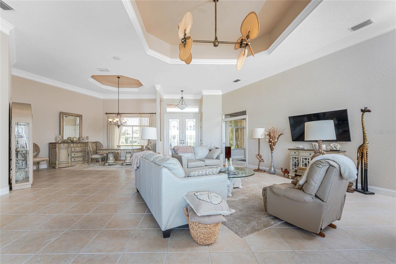 - Built-in Features, Cathedral Ceiling(s), Ceiling Fans(s), Crown Molding, Open Floorplan, Solid Wood Cabinets, Split Bedroom, Stone Counters, Thermostat, Tray Ceiling(s), Walk-In Closet(s), Window Treatments