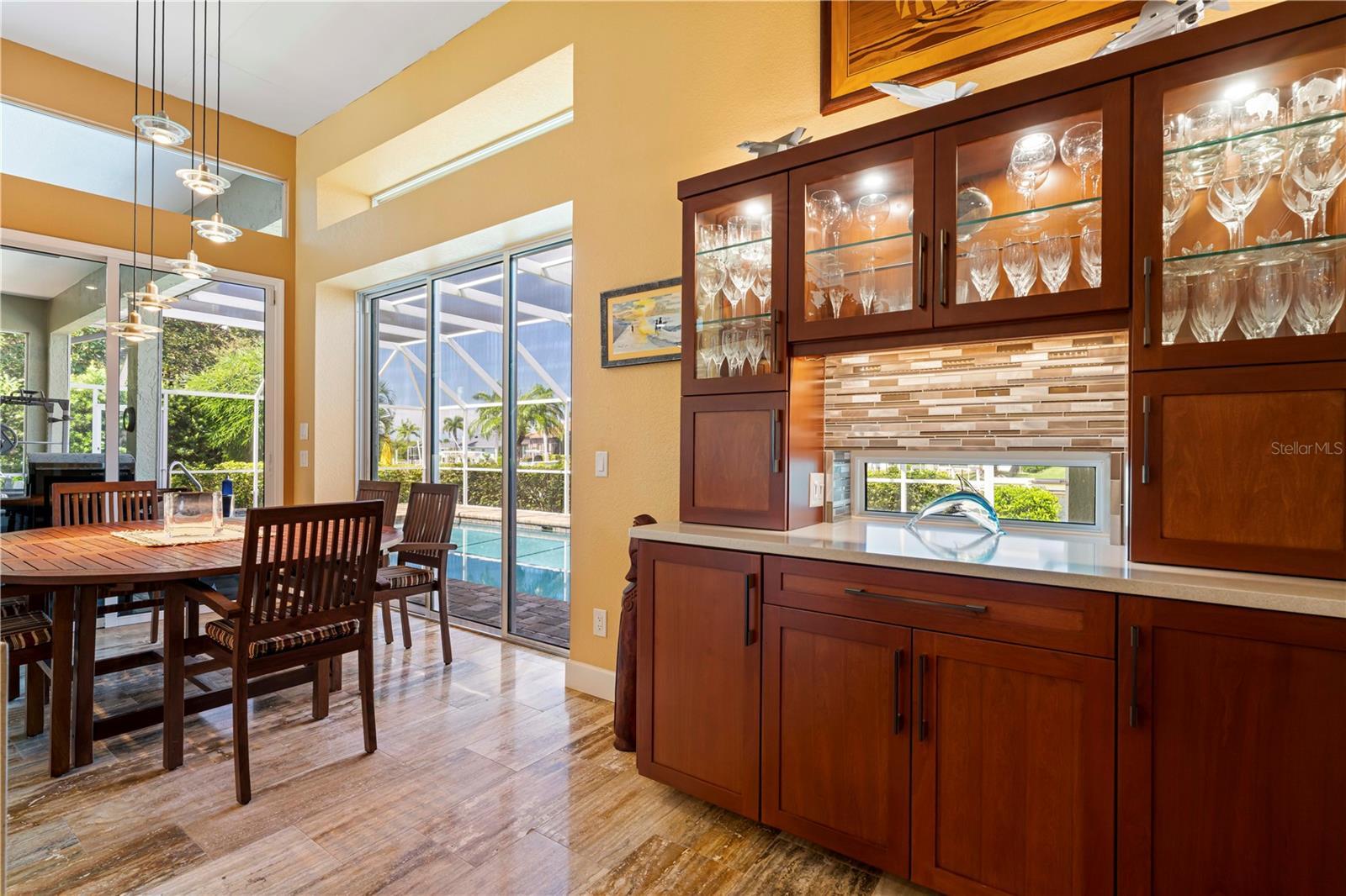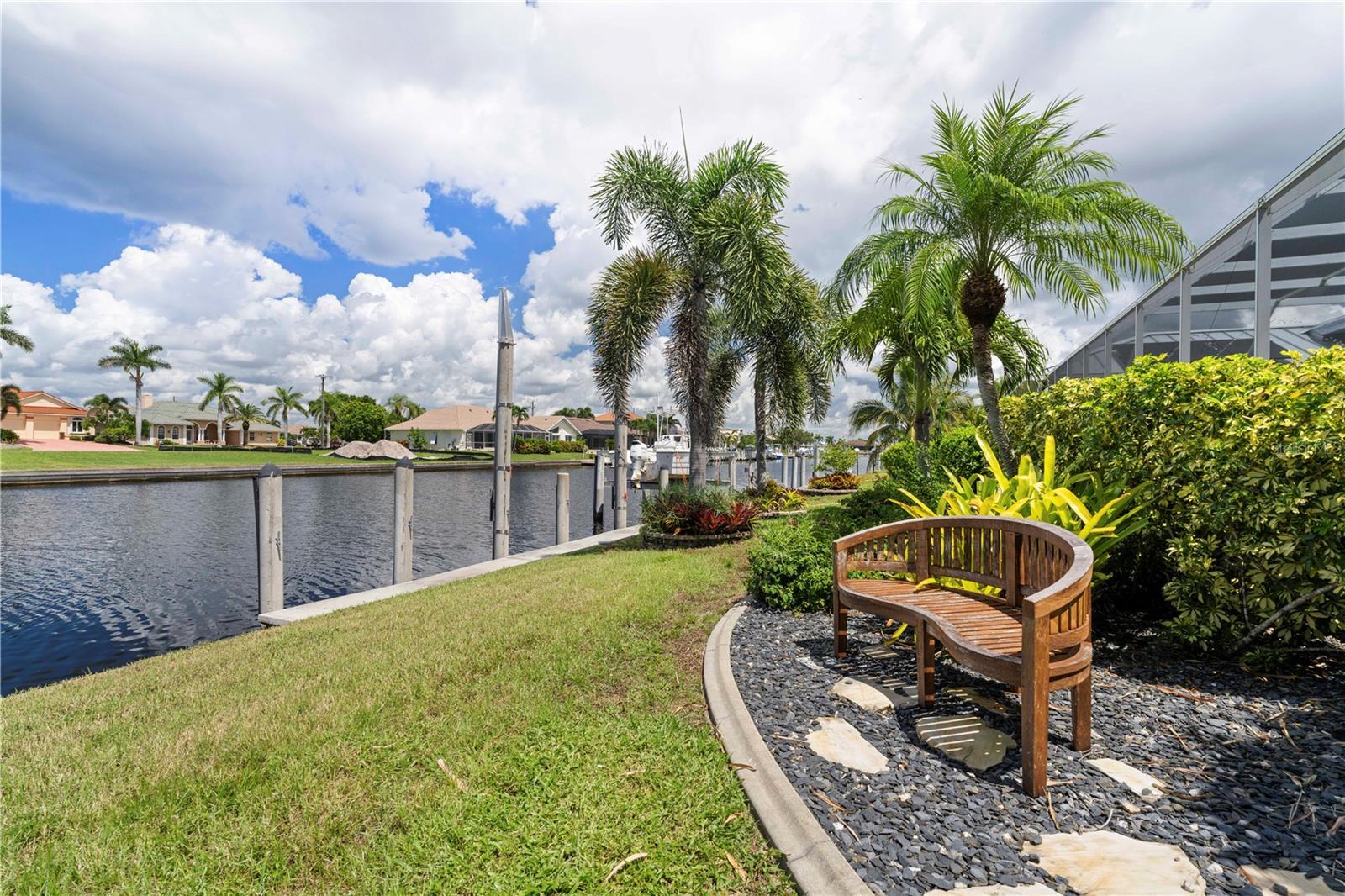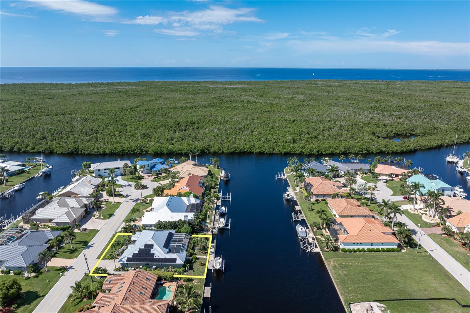 Under contract-accepting backup offers. UPDATED PGI WATERFRONT HOME W/100FT SEAWALL, QUICK SAIL ACCESS & WHOLE HOUSE SOLAR SYSTEM - This custom, 3 bed/2 bath, waterfront home by Fero Construction in PGI delivers everything a boater could want: oversized seawall, extended concrete dock w/boat lift plus quick sail access to Charlotte Harbor via Buckley's Pass or Ponce Outlet. The recently installed whole-house solar system offers a huge costs savings. Inside, the great room sets the tone with soaring ceilings, updated travertine floors, and a wall-mounted, floating entertainment center featuring lighted displays, built-in cooling fans for electronics as well as a hidden desk. Disappearing sliding glass doors connect the interior seamlessly to the lanai, blending indoor and outdoor living. The kitchen impresses with waterfall quartz counters, stainless steel appliances, custom cabinetry, and a center island. A bar area with lighted display cabinets adds both function and style and features a hidden wine refrigerator. The master suite has pool and canal views, dual walk-in closets, and a luxurious bath with dual sinks, granite counters, a soaking tub, and a glass-enclosed shower with two rain showerheads and body sprayer. The master bath also features a TOTO toilet w/motion-activated, heated seat & bidet features. The split bedroom floor plan offers guest rooms that are tucked away on the opposite side of the home. Guest rooms share an updated bath. The layout is ideal for visiting friends or family. Step outside to your private oasis: a screened lanai with brick paver deck surrounding the in-ground, heated pool w/attached spa. Plenty of room for outdoor entertaining here. Relax under the shade of the covered area or soak up some Florida sun poolside. Lush, tropical landscaping surrounds the home. The backyard leads directly to your dock, where your boat is always ready for the next adventure. The 55ft concrete dock offers two slidemoors, 10,000 lb boat lift plus water & (30amp) electric hook-ups. Other amenities include solar power that runs the entire home, an attached, 2-car garage w/epoxy floor, whole-house hurricane protection, Alexa controls in kitchen & master suite as well as a security system w/interior & exterior cameras. Schedule your showing today and start living your Florida dream here.