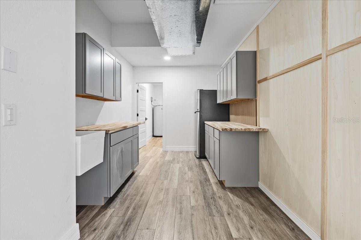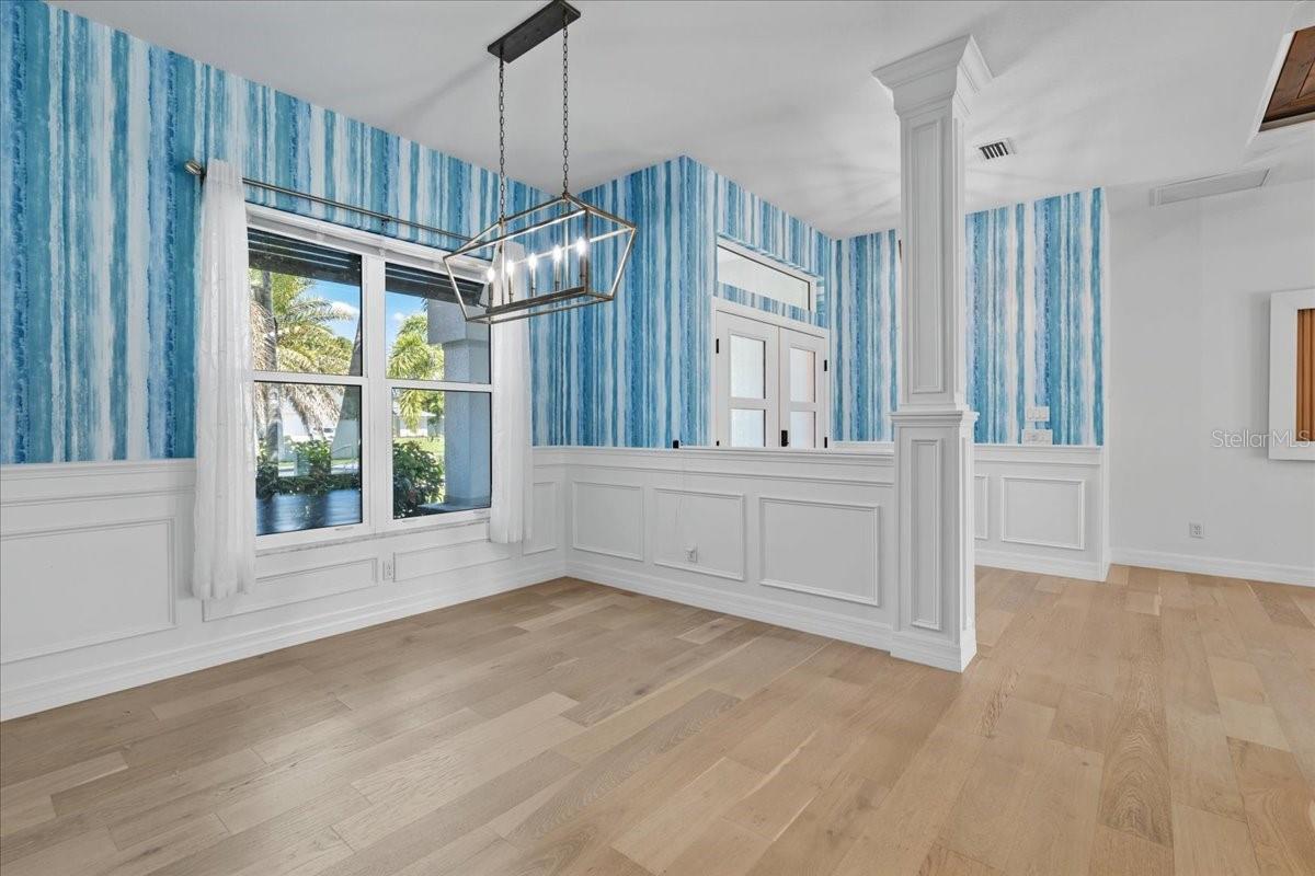 Step into luxury with this custom home built in 2018 by Walker Homes, offering 2,286 square feet of beautifully finished living space on an oversized half-acre lot in the heart of North Port. Featuring three bedrooms and two and a half baths, this thoughtfully designed residence boasts a split-bedroom layout with a spacious main-level primary suite, offering the perfect combination of comfort and privacy. The gourmet kitchen is a chef’s dream, highlighted by a striking waterfall island, custom cabinetry, stainless steel appliances, and high-end finishes throughout. The open-concept living space features coffered ceilings and is bathed in natural light, with durable luxury vinyl plank flooring throughout the main living areas and luxury tile in the bathrooms for a modern, cohesive feel. A bonus room off the main living area provides additional flexible space—ideal for a home office, playroom, den, or guest area—and includes extra built-in storage with endless potential to fit your lifestyle needs. Step outside into your private tropical retreat. Take a dip in the in-ground pool, grill under the expansive covered lanai with built-in summer kitchen or unwind beneath the brand-new patio pergola. A charming tiki hut adds a touch of island living—perfect for entertaining or simply relaxing in the shade. The lush landscaping is supported by an irrigation well system and enhanced by solar lighting, creating a tranquil, resort-style setting. The home also includes a finished RV port/garage wing with its own private entrance, workshop, office space, and half bath—perfect for guests, hobbies, or extended workspace. With plenty of parking for RVs, boats, or extra vehicles and no HOA or CDD fees, this home offers flexibility and freedom rarely found in a custom property.