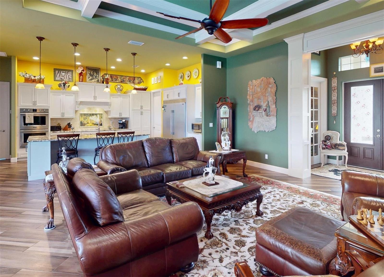 Dreaming of gulf access waterfront with enough land to have a quiet waterfront retreat or gathering place? This incredible 2017 built home is just that and more- exquisite construction by Harden Dukes- the Barbados model has 2 en-suites- a 3rd bedroom with access to lanai, and an office/den- with over 2400 sq feet under air there is room for everyone. Apollo waterway is a straight shot to the river (one canal and two bridges) with quick access to the harbor and gulf beyond. This kitchen is a chefs dream- with sub zero refrigerator and freezer- walk outside to your raised bed garden center for fresh herbs or vegetables! The architectural extra features are stunning, the zero pocket sliding glass door marries the interior to the spacious pool area and lovely landscaping. The incredible upgrade porcelain tile flooring -looks like the finest wood! Outside past the heated pool and oversize lanai area there is an entire park like setting with 2 sheds(electric/secured) picnic area with lighting for evening events. The front of the home is majestic with the two sets of French doors- one for the second en-suite- a private entrance for an in-law or guest - and the second set enter the office. Those both go ourt to the 33 foot front porch- a place to Rock and Reflect! There are three peach trees along with 2 mango, 3 fig, an avocado, lemon, tangelo and grapefruit! A whole home reverse osmosis system provides the best in drinking water. The electric panel is pre wired for a backup generator for power when you need it. The tile roof has secondary water resistance for extra protection. The lanai ceiling and entry ceiling done in cypress for worry free maintenance. If you would like more land the lot next door can also be purchased (separate owner) and it has a massive tree house on it! Enjoy the video and floor plans; better yet come take a personal tour to find your waterfront retreat. NOTE: Sellers had interior painted in their warm earthy color scheme. They understand that it may not be yours and are willing to work with buyers who desire a cooler palette.