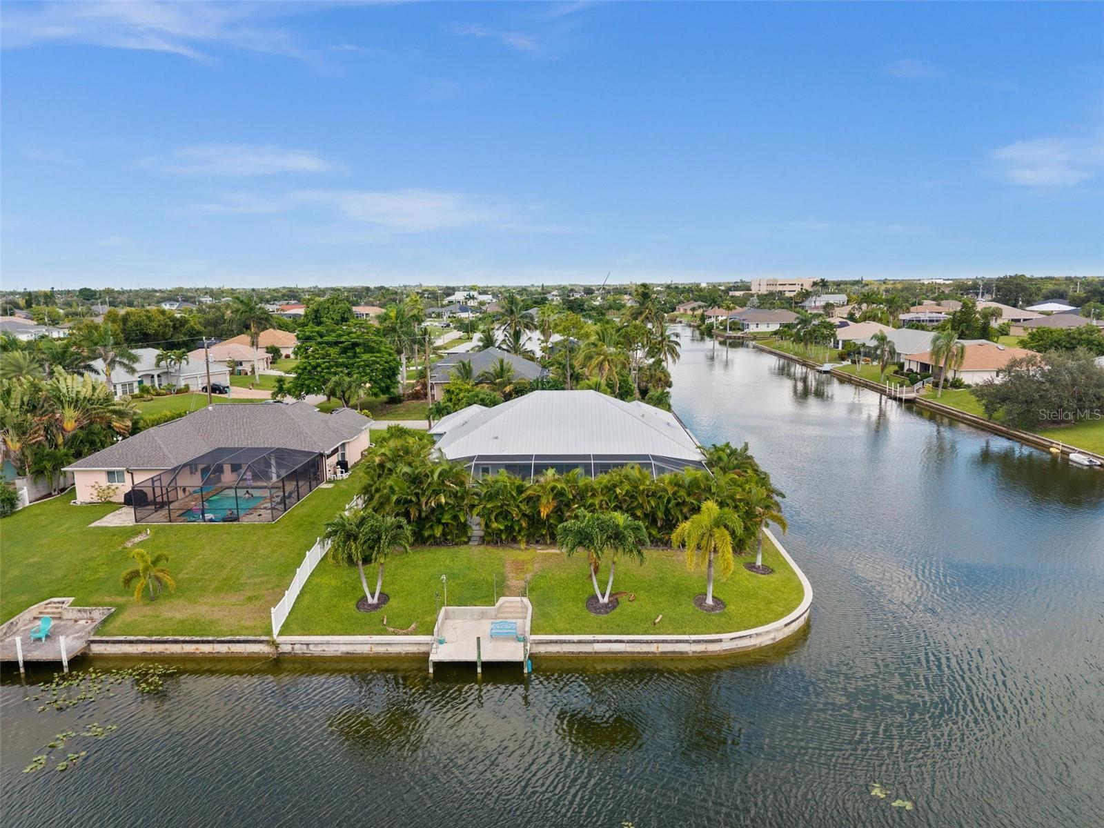 The Blue Pearl is a luxurious, spacious 3 bedroom, 3.5 bathroom vacation home with versatile game room and 2,731 sq ft under air. This fully turnkey property generated just over $100,000 in revenue in 2024 and is on track for similar results in 2025. Currently operated as an Airbnb Superhost property, it delivers strong year-over-year performance in the competitive Cape Coral short-term rental market. Situated on an intersecting canal, the home offers stunning waterfront views, easy boating access, and a private dock ideal for fishing. Accommodations sleep up to 14 guests, perfect for large families, groups, or multi-generational vacations. Resort-style amenities include a heated saltwater pool, expansive lanai with a full outdoor kitchen, and a privacy hedge that creates a secluded tropical retreat. Inside, the home features a fully equipped game room - which could be easily converted to a workshop, home office, studio or home theater - and a kitchen with oversized quartz countertops, built in appliances, coffee/wine bar, and a pass through to the wet bar in the outdoor living area. Additional highlights include a durable metal roof, encapsulated spray foam insulation, no flood zone location, and central Cape Coral convenience—just off Santa Barbara Blvd, 5 minutes to Pine Island Road, and an easy drive to Fort Myers. The home is sold fully furnished and ready for immediate enjoyment or continued short-term rental income.
