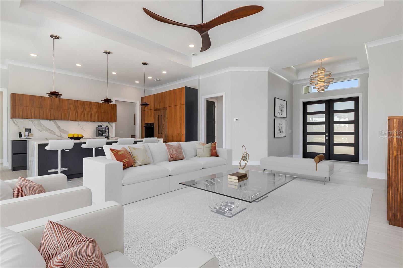 SAILBOAT LOT – SPECTACULAR WATER VIEWS – MINUTES TO OPEN WATER! Step into a world of refined luxury with this breathtaking, custom built waterfront residence in the highly sought-after Punta Gorda Isles. Situated on a premium sailboat-access lot just minutes from open water, this home is a boater’s paradise and a car enthusiast’s dream, blending high-end design with top-tier functionality. This exceptional property features 4 spacious bedrooms, 3 elegantly designed bathrooms, all meticulously crafted for effortless entertaining and elevated everyday living. At the heart of the home lies the gourmet kitchen, a true showpiece boasting custom-built walnut touch-to-open cabinetry, sleek Invisacook cooktop, European-imported porcelain waterfall-edge countertops, high-end Dacor appliances, Touch 2.0 smart faucet and hidden wine bar, a walk-through butler’s pantry with a sink, custom cabinetry, and extensive storage. The primary suite is equally impressive, offering a dream custom-designed walk-in closet complete with tailored shelving, drawers, and luxury hanging systems—an organizer’s dream. Designed to take full advantage of the waterfront setting, the home features 90-degree sliding glass doors that create a seamless indoor-outdoor living experience. Step outside to an entertainer’s oasis with a fully equipped outdoor kitchen with bar seating, fridge, and TV, heated saltwater pool with sun shelf and stunning water views. Expansive covered lanai and with plenty of living area. The living room features a sleek motorized lift TV cabinet, keeping the space clean and uncluttered while offering modern tech at your fingertips. The oversized laundry room includes a sink, extensive cabinetry, high-end washer and dryer, and ample room for pet-related needs. Enjoy peace of mind year-round with motorized Kevlar hurricane protection screens, offering transparency, visibility, and instant deployment at the push of a button. Car enthusiasts will fall in love with the oversized 4-car garage, outfitted with premium Poggenpohl cabinetry and butcher block work surfaces—ideal for showcasing your collection or working on prized vehicles. Best of all, the seawall is maintained by the City of Punta Gorda—a rare and highly valuable benefit for waterfront homeowners! This extraordinary property redefines luxury coastal living with world-class design, top-of-the-line finishes, and unmatched boating access. Don’t miss the opportunity to call this one-of-a-kind home yours! Schedule your private showing today!