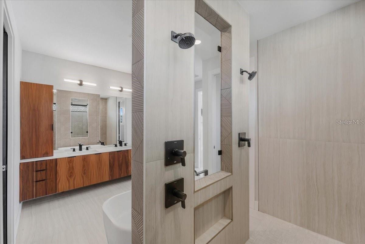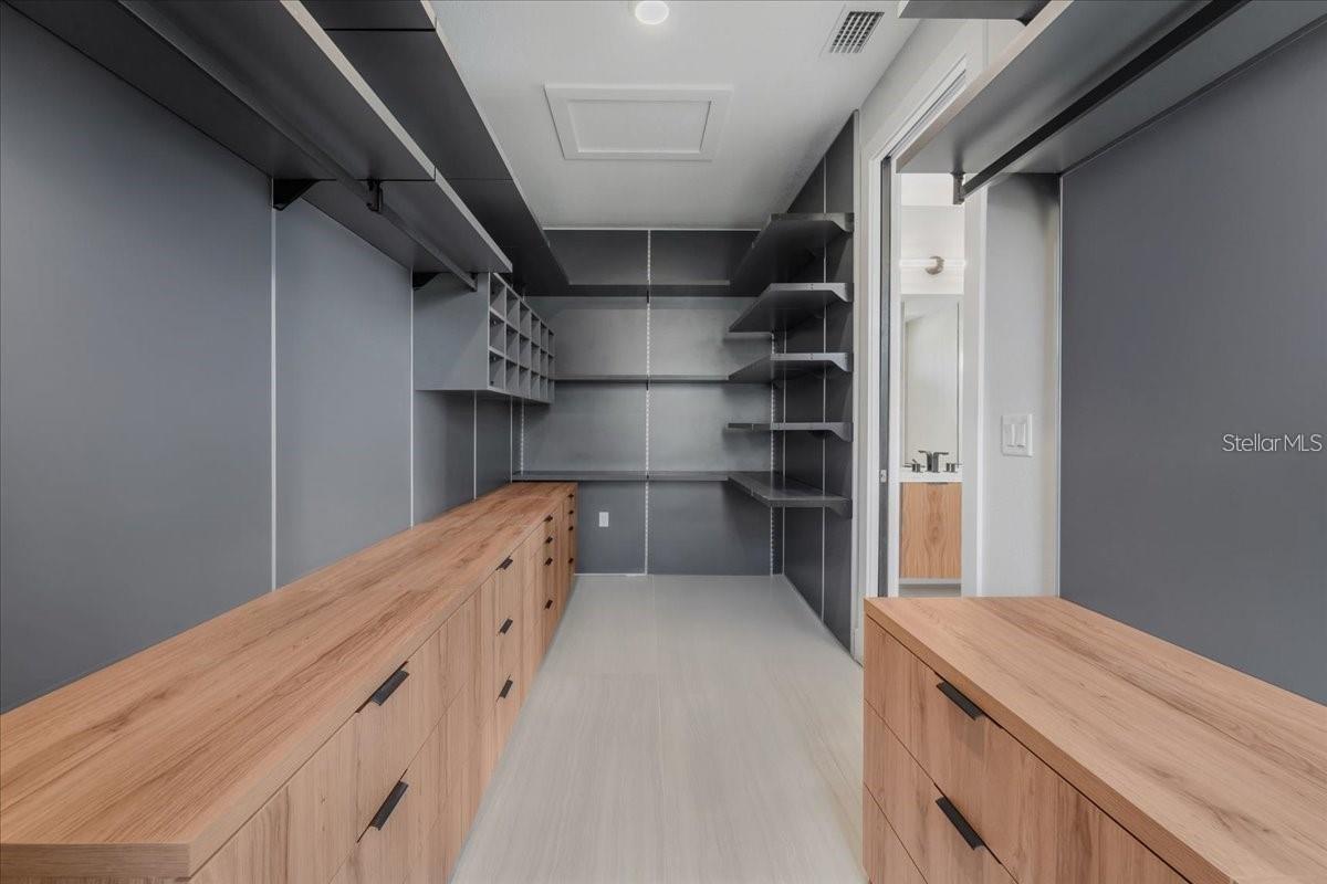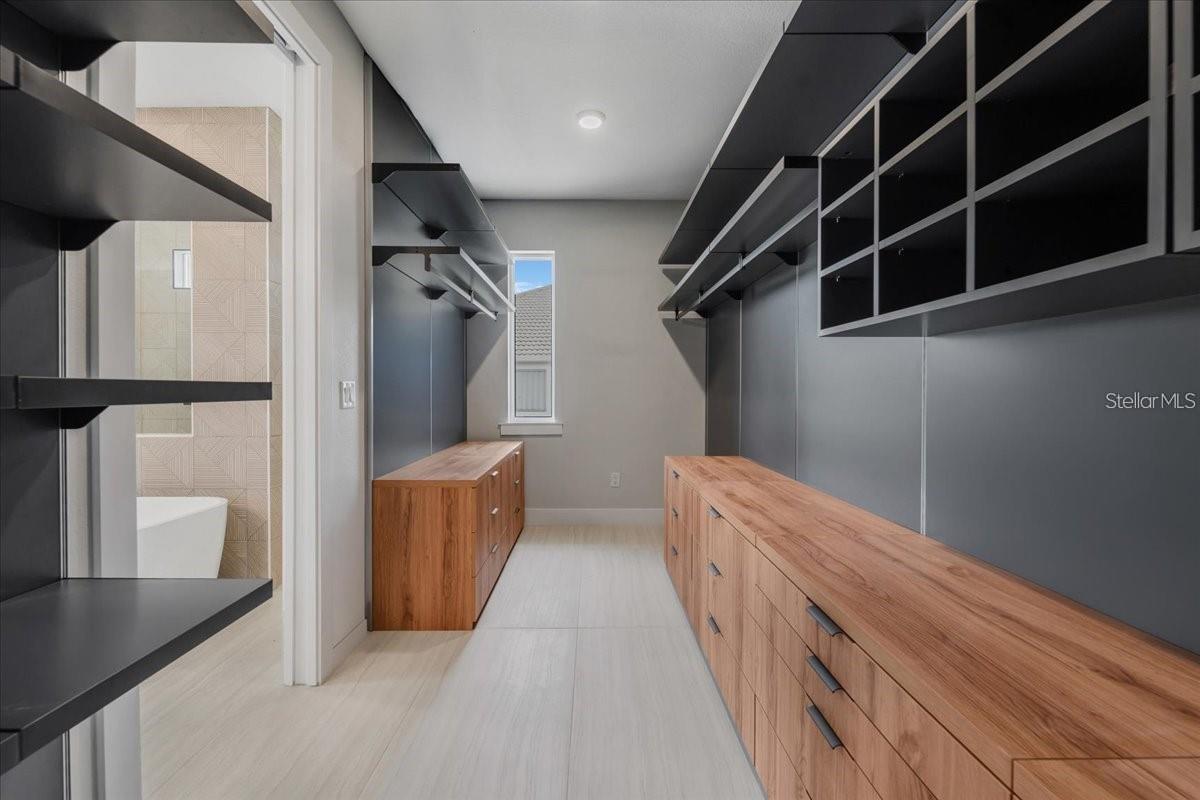 - Built-in Features, Ceiling Fans(s), Crown Molding, High Ceilings, Open Floorplan, Primary Bedroom Main Floor, Solid Wood Cabinets, Split Bedroom, Stone Counters, Walk-In Closet(s)