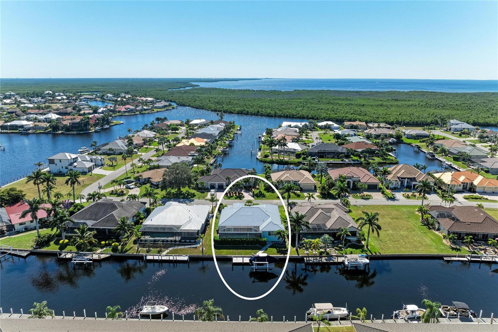 Live Your Southwest Florida Dream Now – No Waiting to Build! Why wait years to build when you can own this exceptional 2019 custom-built Charlotte Harbor Construction home on a fast-access, deep sailboat canal in Punta Gorda Isles today! Designed for those who appreciate quality craftsmanship and modern coastal living, this 4-bedroom + den, 4-bathroom residence delivers the perfect blend of style, function, and Florida luxury. From the curb, the home makes a striking impression with its Key West-inspired architecture, featuring Bahama shutters, decorative corbels, upgraded landscaping, and a paver circular driveway leading to a spacious 3-car garage. Step inside the grand double doors to discover an open-concept floor plan with soaring double tray ceilings, zero-corner sliding glass doors, and panoramic water and pool views that instantly set the tone for elegant coastal living. The great room flows seamlessly into the gourmet kitchen, complete with custom cabinetry, quartz counters, a large island with breakfast bar, and premium appliances—ideal for entertaining or quiet mornings at home. The primary suite is a private retreat overlooking the pool and canal, offering direct lanai access, dual walk-in closets with custom organizers, and a spa-inspired bath with glass-enclosed shower and dual vanities. Three additional guest suites—each with access to their own baths, including one with pool access—ensure privacy and comfort for family and friends. A dedicated den/office adds flexible space for work or relaxation. Outdoors, the 2021 addition of a heated saltwater pool and spa with panoramic screen enclosure creates a tropical oasis overlooking the water. Plumbing and electric are ready for a future outdoor kitchen, and the 10,000 lb boat lift and extended concrete dock provide direct access to Charlotte Harbor and the Gulf through Buckley’s Pass—with no bridges to navigate! Tech-savvy buyers will love the smart home automation, remote-controlled lighting and shades, 7.1 surround sound, 4K surveillance system, EV wall charger, and integrated WiFi network with Cat6 connections throughout. Energy efficiency is built in with spray foam insulation and all impact-rated windows and doors. This home truly has it all—meticulously maintained, beautifully designed, and ready to enjoy immediately. Skip the construction delays and step right into your waterfront Punta Gorda Isles paradise.BE SURE TO CLICK THE FULL VIRTUAL TOUR LINKS FOR DETAILS!