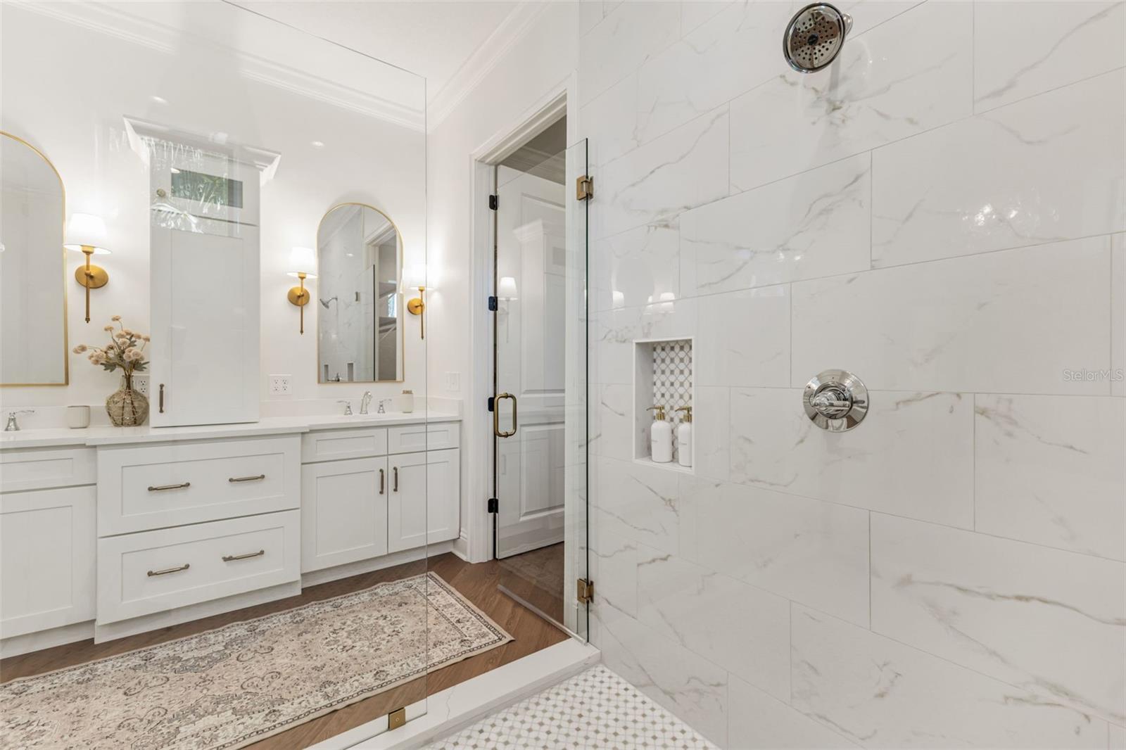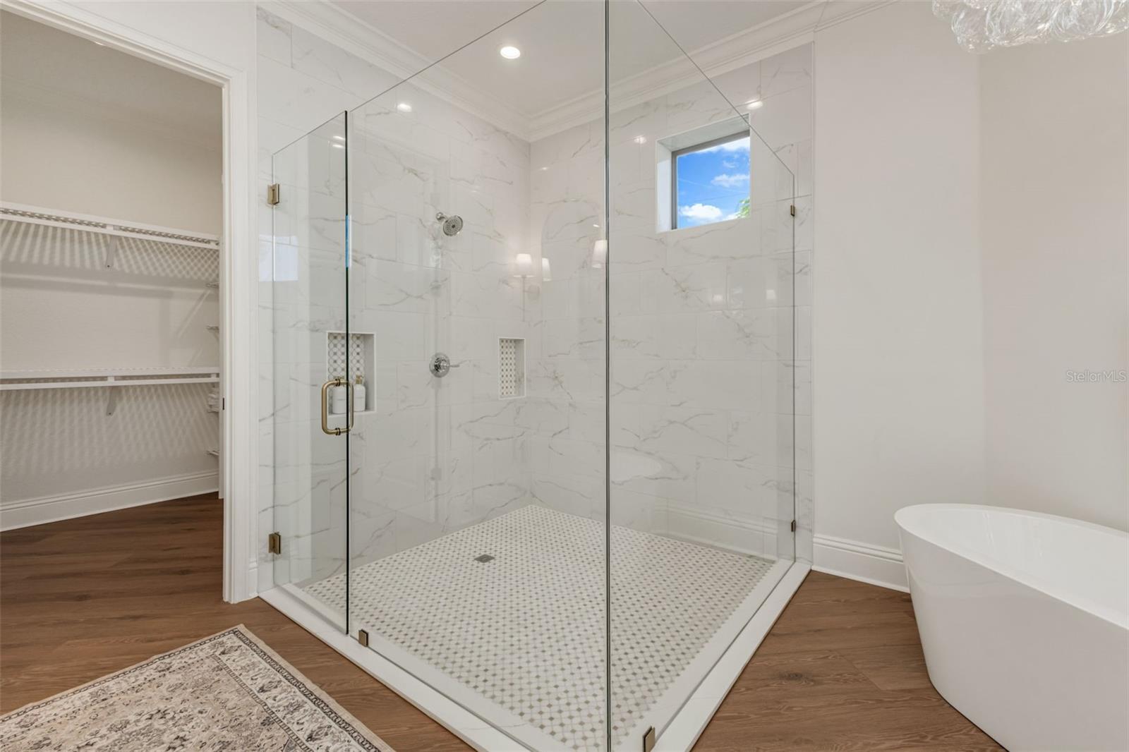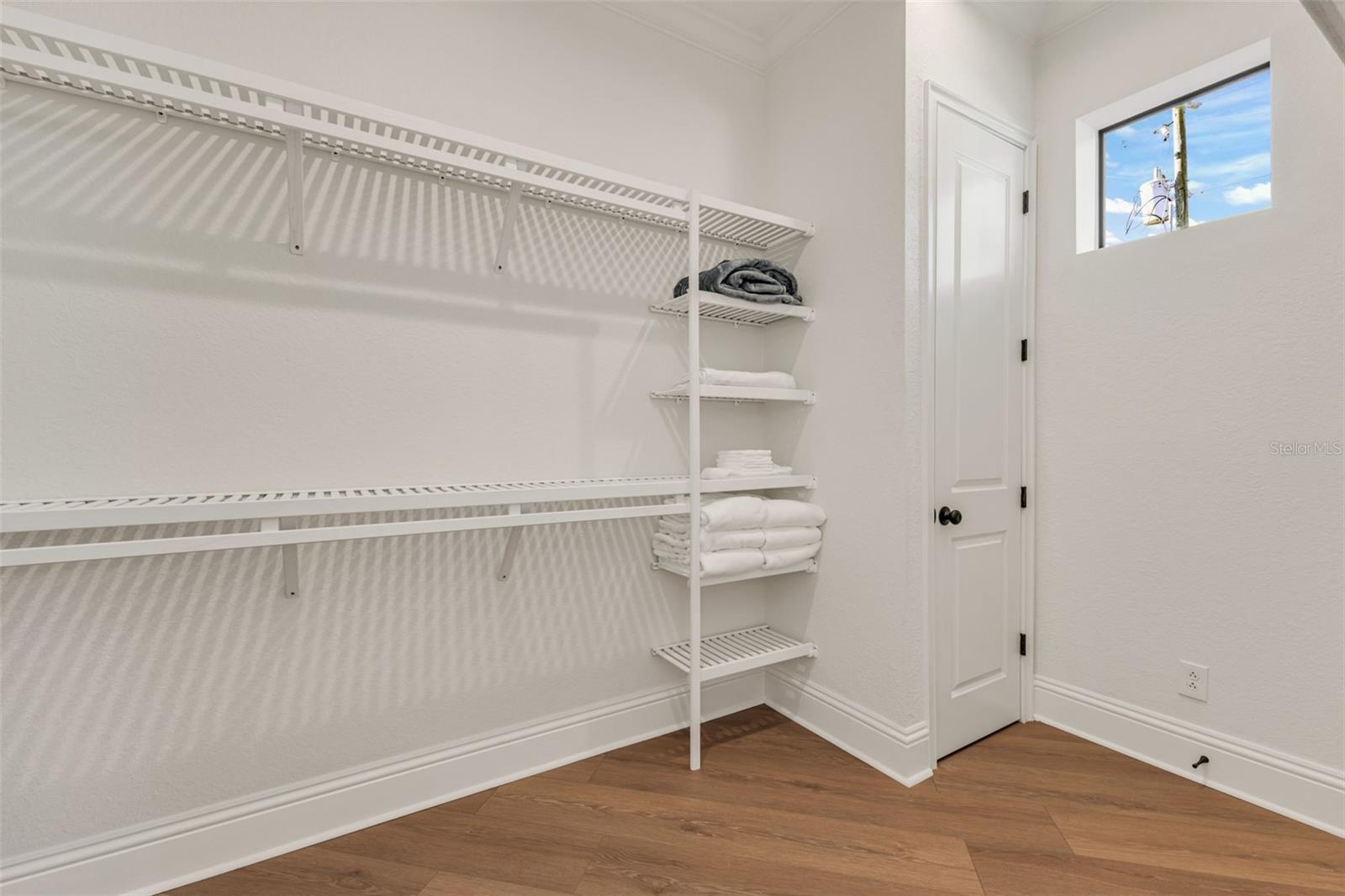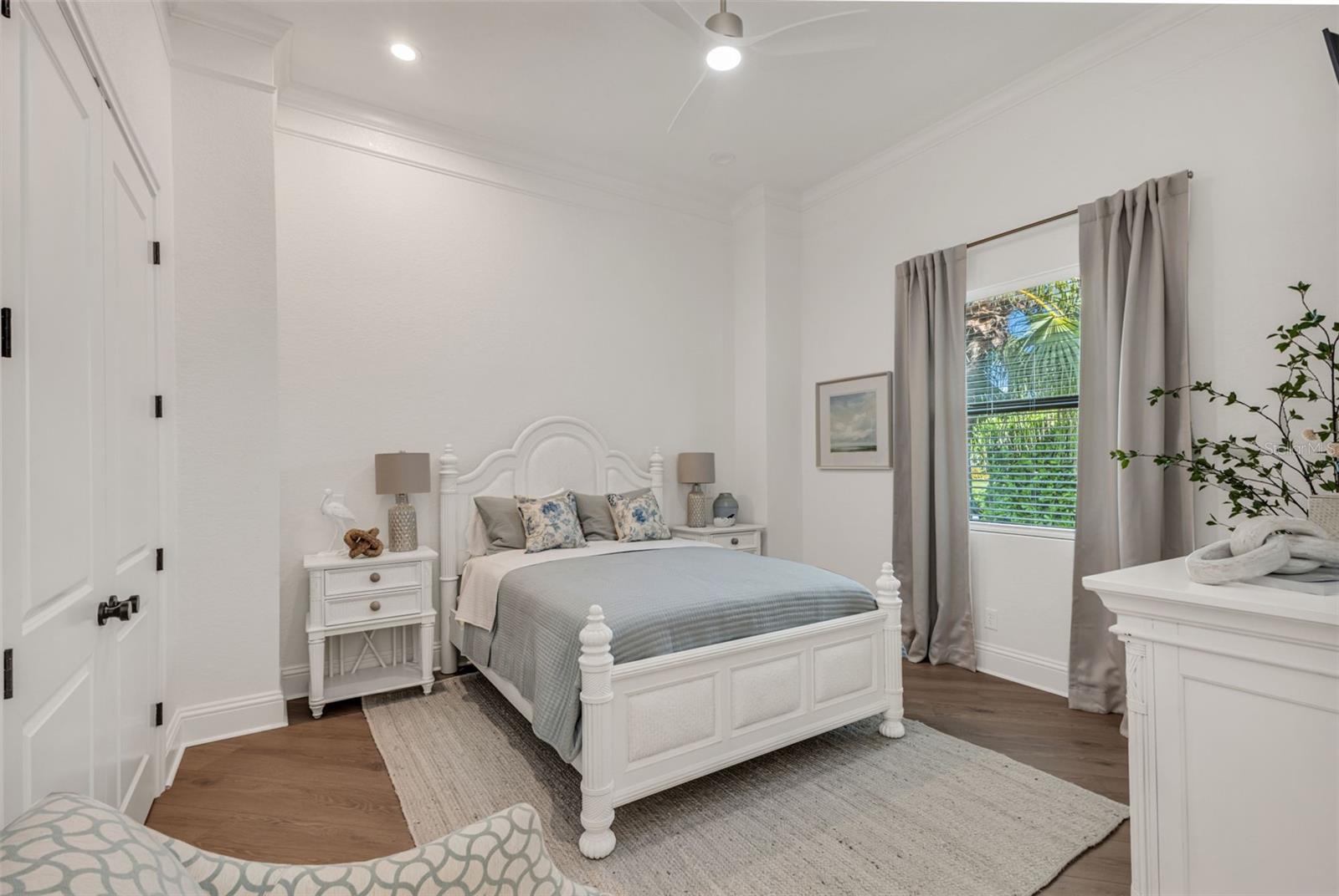 - Ceiling Fans(s), Coffered Ceiling(s), Crown Molding, Eat-in Kitchen, High Ceilings, Kitchen/Family Room Combo, Living Room/Dining Room Combo, Open Floorplan, Primary Bedroom Main Floor, Solid Surface Counters, Solid Wood Cabinets, Thermostat, Walk-In Closet(s), Wet Bar, Window Treatments