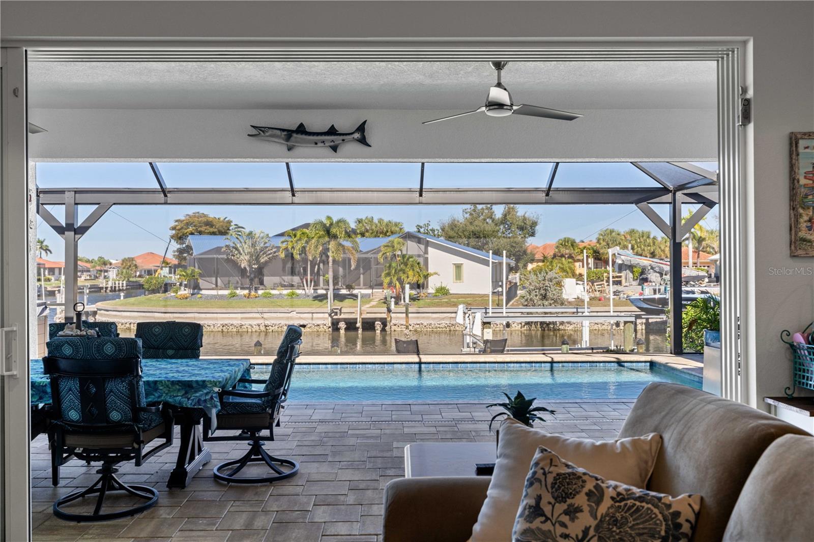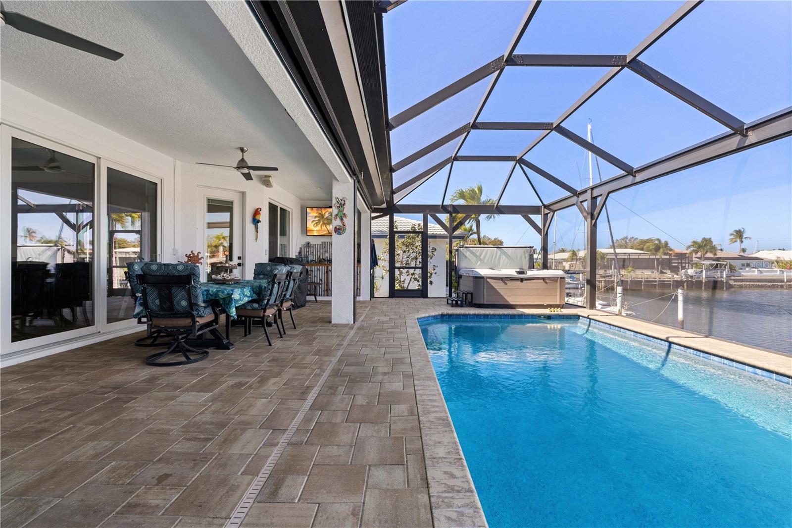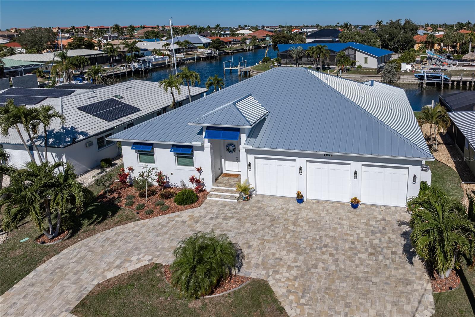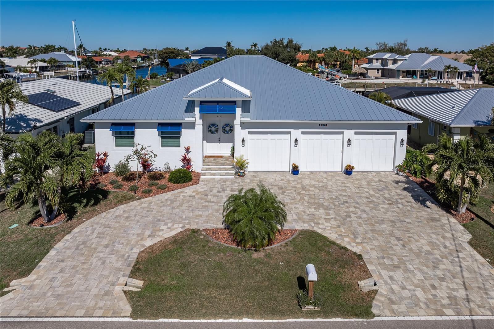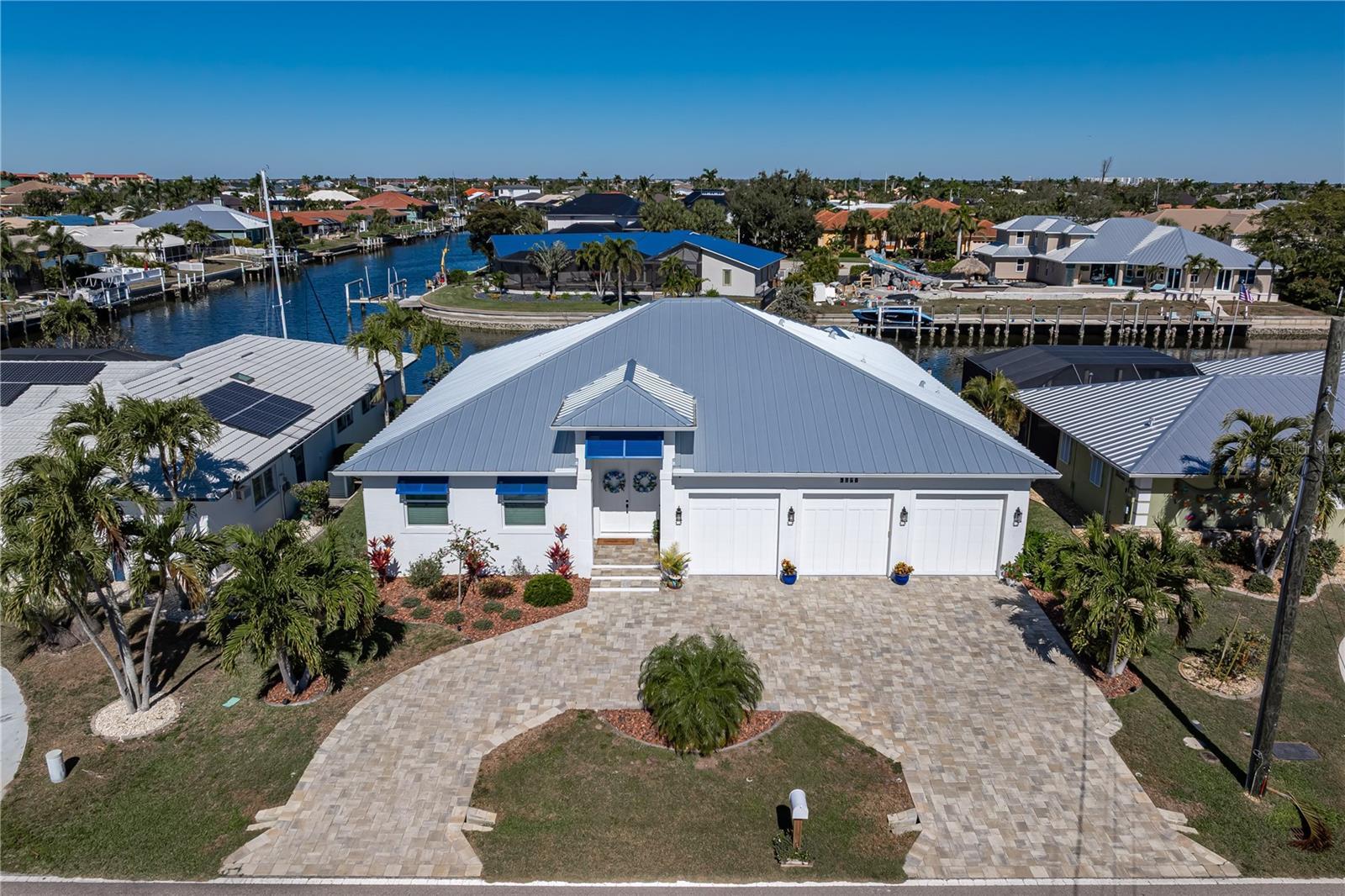 SPECTACULAR WATERFRONT HOME IN PGI W/QUICK SAIL ACCESS - Located in the original sailboat section of Punta Gorda Isles, this exceptional 3 BED/3 BATH + OFFICE, waterfront home combines modern Florida design w/superior Towles Construction craftsmanship. The property boasts 80ft of seawall with a 45ft concrete dock & 16,000lb lift. Enjoy direct, deep water, sailboat access to Charlotte Harbor where you can reach open water in minutes from your backyard. Inside, 2,655 sq ft of elegant living space showcases high tray ceilings, luxury vinyl flooring throughout, & a split-bedroom layout designed for privacy. Sliding glass doors open from the great room to the lanai extending the living space outside, filling the home w/ natural light & offering up wonderful canal views. The kitchen is the heart of the home w/stainless steel appliances, built-in double oven w/air fryer, 36" induction cook top, soft-close cabinetry w/pull-outs, granite counters, & a wraparound island w/breakfast bar seating that is ideal for entertaining. The adjacent dining area features a mitered bay window for an unobstructed pool & canal view. The interior laundry room features a 6-ft pantry for additional kitchen storage. Master suite offers private access to the lanai, two large walk-in closets, & a spa-inspired bath w/split vanities & a dual-entry, tiled shower w/two rainfall heads. Split bedroom layout boasts large guest rooms. One guest room features walk-out access to the lanai & an en-suite bath that doubles as a pool bath. A large office is located off the foyer adding functional flexibility for working from home. The office could also be used as a craft/hobby room, home gym or even a 4th bedroom, if needed. With almost every room in the home opening to the lanai, outdoor living takes center stage. The brick paver lanai features a clear view pool cage surrounding an in-ground, heated, saltwater pool. The large seating area is anchored by a summer kitchen. The covered area of the lanai is protected by electric, roll-down Kevlar hurricane screens for peace of mind. A Bullfrog hot tub is perched at the corner of the lanai overlooking the wide canal. Step beyond the screen enclosure to your 45ft concrete dock w/16,000 lb lift where you can keep your boat docked at your backdoor. Dock has kayak rollers for easy launches. Superior craftsmanship is evident in the wood-look luxury vinyl flooring, the solid core doors w/contemporary handles, the dimmable LED lighting & the modern ceiling fans. Other amenities include whole-house water softener, impact-resistant doors & windows, Manabloc plumbing system, in-ground sprinklers, wired security cameras & increased energy efficiency thanks to foam insulation throughout attic (including over lanai & garage). The oversized 3-car garage offers abundant storage for vehicles & gear. The curb appeal of the home is enhanced by tropical landscaping & a circular paver driveway. Enjoy the active Punta Gorda lifestyle where miles of sidewalks connect you to Ponce Park, Fishermen’s Village, the Harborwalk, & historic downtown. While there's no HOA, the Punta Gorda Isles Civic Association (PGICA) offers access to a wide range of social clubs, boating groups, & community activities. The only requirement to joining is ownership or residency in Punta Gorda Isles. Here, every day feels like a vacation. Bring your boat, your flip-flops, & your love of the water: start living your Punta Gorda dream today.