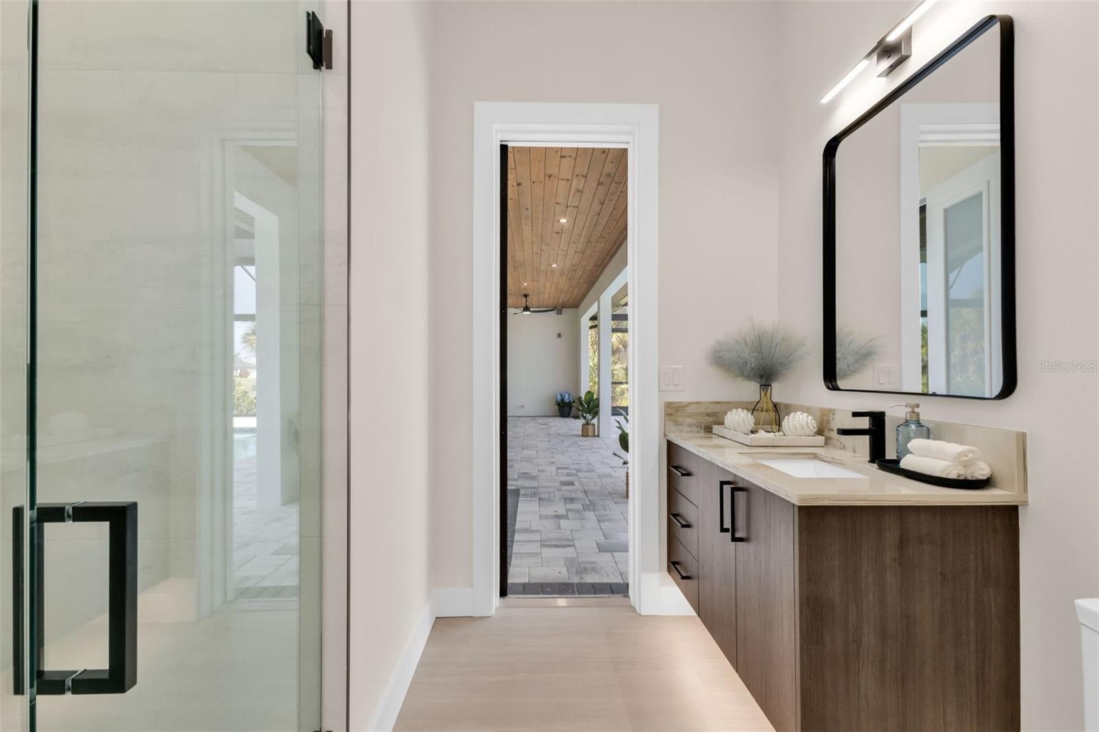 Stunning brand-new luxury custom home in desirable Pine Valley Rotonda West. This 3-bedroom, 3-bath home with a 3-car garage and bonus room offers exceptional craftsmanship, timeless style, and maximum hurricane protection. Set on a peaceful canal, this home combines modern luxury with serene Florida living. Enjoy an unbeatable location just minutes from Rotonda’s five golf courses, the Cape Haze Pioneer Trail, and the pristine Gulf beaches of Boca Grande and Placida. Must see to appreciate the attention to detail in every aspect of construction and design. Built on a stem wall, elevation of 9.2 feet, stucco and block construction, featuring full impact-resistant windows, doors, and garage doors for complete peace of mind. The exterior is enhanced by a 3-dimensional architectural shingle roof, brick paver driveway, epoxy-finished garage floor, and closed soffits and fascia. Spray foam insulation and high-efficiency HVAC ensure energy savings year-round. The backyard oasis includes a 28’ x 14’ Pebble Tech pool with a Hayward heat pump, top-quality pool equipment, and a picture-frame screened enclosure. The rear patio is pre-plumbed and wired for a future summer kitchen, ideal for entertaining family and friends. Inside, the open floor plan showcases refined finishes and elegant design. Engineered white oak wood flooring flows throughout the main living areas, complemented by imported porcelain tile in the bathrooms and laundry room. The great room features flat ceilings with tray accents and a built-in electric fireplace framed in custom tile. Solid interior doors, 6-inch baseboards, and wood-trimmed windows highlight the home’s superior craftsmanship. Two-tones recessed lighting brightens each space, while the overall layout promotes seamless living and entertaining. The chef’s kitchen is a true showpiece with two-tone custom cabinetry, soft-close doors and drawers, a quartzite island with wood backing, and high-end built-in appliances including a refrigerator, cooktop, wall oven, microwave, and custom vent hood. A full walk-in pantry with custom shelving, floating shelves, a coffee station, and under-cabinet lighting complete this exceptional kitchen design. The luxurious primary suite offers a peaceful retreat with tray ceilings, sliding doors to the lanai, a spa-inspired bathroom, and an expansive walk-in closet with custom shelving. The ensuite bath features dual vanities with quartz countertops, a lighted mirror, a freestanding soaking tub, a 9’ x 3’ seamless glass shower, and a private water closet. Additional features include custom bathroom vanities with quartz counters, a large laundry room with built-in cabinetry, a sink, and a cabinet pantry. Located in a deed-restricted community with public water and sewer, this home also includes a full set of house plans, survey, and elevation certificate. Rotonda West offers 26 miles of scenic canals, five golf courses, and proximity to parks, shopping, and dining. With superior construction, modern efficiency, and timeless design, this home delivers the best of Florida living—luxury, comfort, and lasting quality. *See Tour 1 for 3D Virtual Walk Through*