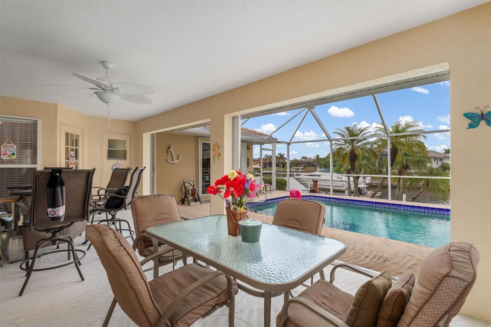 TREMENDOUS VALUE! SAILBOAT WATERFRONT HOME WITH INSTANT ACCESS TO OPEN WATER via Buckley's Pass. NO BRIDGES. NO HOA FEES!! Ideal for boating enthusiasts with beautiful intersecting canal views. Offering 2,276 sq ft., this home in the PGI is a 3 bedroom, 2.5 bath, with a 2-car garage and heated pool that boasts quick SAILBOAT ACCESS to Charlotte Harbor and to the Gulf of Mexico. 79' of waterfrontage with concrete seawall and dock, 10,000 lb. boat lift with a walk around plus INTERSECTING CANAL VIEWS. The seawall & canal dredging are maintained by the City of Punta Gorda. As you enter this home, you'll be greeted with a formal living room to your right, pool and canal views from the living and dining area, with access to the kitchen and an informal welcoming family room adjacent to the spacious eat in kitchen. Abundant high ceilings, and natural light through out that flows out to the lanai area and pool deck. The private heated pool and canal-front setting provide an ideal backdrop for waterfront living. The two-car garage offers ample storage, plus there is an additional spacious 12X8 STORAGE ROOM attached in the back perfect for anything including kayaks, paddles, ladders, and more! Well maintained tropical landscaping with solar lighting, an irrigation system, and peace of mind hurricane protection with the whole house shutters. NEWER UPGRADES to include, NEW ROOF 2024, NEW POOL ENCLOSURE, NEW POOL HEATER, NEW POOL PUMP, SECURITY SYSTEM. -- Located on a cul-de-sac with circular driveway. The PGI is known to be a vibrant community setting known for its golfing and boating amenities. Conveniently located close to Fishermen's Village, and the historic downtown area of Punta Gorda. Easy access to SWFL Gulf beaches, beautiful parks, fine dining and entertainment. Don't miss out on the chance to live in one of SWFL's most desirable areas. Schedule your private showing today!
