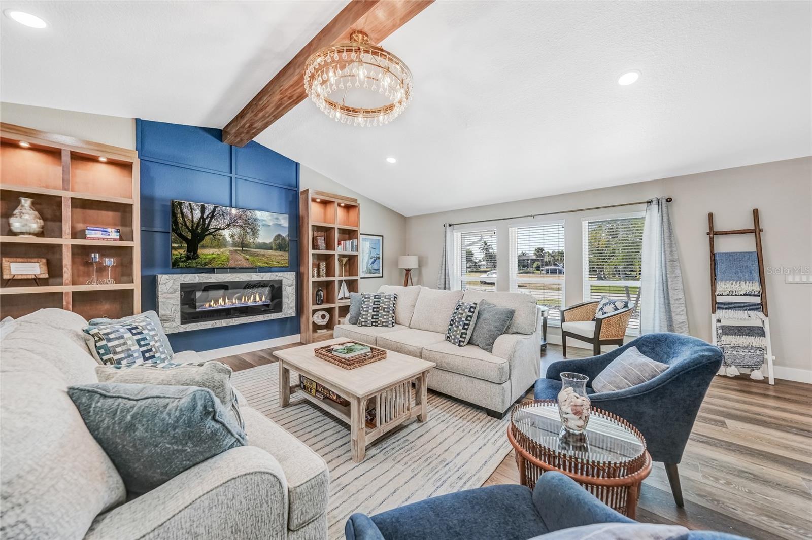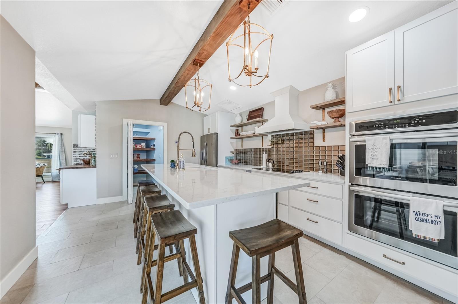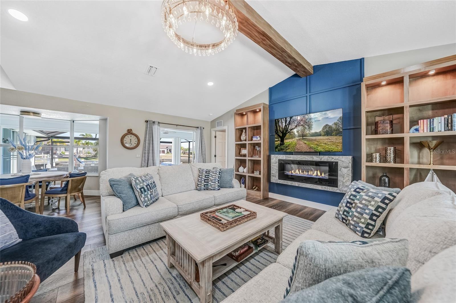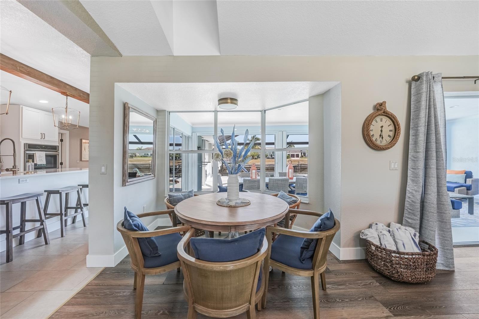 Beautifully remodeled and fully furnished waterfront home in Punta Gorda Isles, featuring 4 bedrooms, 3 full baths, and a HEATED POOL. Enjoy direct GULF ACCESS from your oversized 100-FOOT CITY MAINTAINED CONCRETE SEAWALL equipped with a 7,000-lb boat lift. This 2,371 sq. ft. residence showcases stylish updates throughout, including BEAMED CEILINGS and a STONE-wrapped electric FIREPLACE. The stamped-concrete circular driveway and two-car garage enhance the home’s welcoming curb appeal. The split floor plan provides both privacy and functionality for families or guests. Primary Suite: Located on its own wing of the home, the spacious primary suite features a king-sized bed, a cozy seating area, and pocketing sliders that open directly to the pool area. The large ensuite bath includes a walk-in closet, walk-in shower, soaking tub, double sinks, and a dedicated vanity space. Secondary Suite: The main guest bedroom—large enough to serve as a second primary—offers a king-sized bed, walk-in closet, and a private bath with a walk-in shower. Additional Bedrooms: Two more guest bedrooms are situated on the opposite side of the home. One includes two twin beds, and the other offers a queen. A full guest bath with tub/shower combo also functions as a convenient pool bath with direct lanai access. This home is designed for entertaining, with a spacious great room featuring bamboo flooring, built-in shelving, an electric fireplace for ambiance, and pocketing sliders that seamlessly blend indoor and outdoor living. The dining area’s bay windows provide lovely views of the pool and canal. Kitchen: A chef’s dream—with a large QUARTZ ISLAND offering ample seating, SOFT CLOSE wood cabinetry, stainless steel appliances, DUAL BUILT IN OVENS a microwave, glass cooktop with vented hood, POT FILLER, and decorative glass backsplash. A generous WALK IN PANTRY is just steps away. Adjacent to the kitchen is a dedicated COFFEE/BEVERAGE BAR complete with COPPER SINK and built-in WINE REFRIGERATOR—perfect for serving guests. A well-appointed laundry room offers a washer and dryer, utility sink, and built-in ironing station. Recent Upgrades: • A/C units (2024) • New lanai screen (2023) • Pool heat pump (2022), Pool Pump (2025) • Re-plumbing (2022) Hurricane-rated windows and accordion shutters on the lanai provide added peace of mind. This home is also conveniently located within close proximity to famous Fishermen’s Village, the new Sunseeker Resort, major highways and airports, and just a few minutes to downtown Punta Gorda, where you can enjoy its unique restaurants, shopping, pickle ball, biking, and waterfront activities.