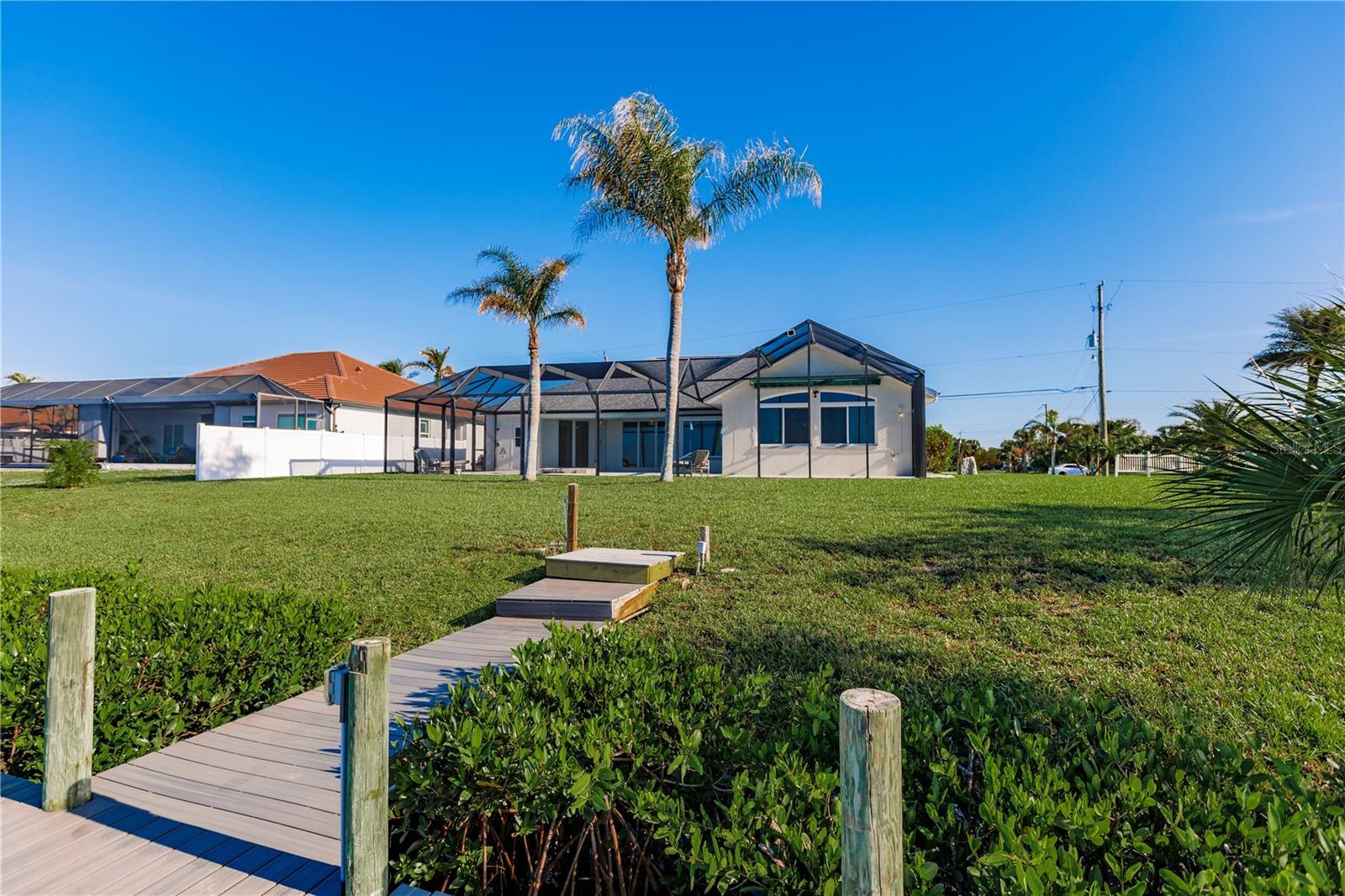 Stunning Waterfront Paradise on the Manchester Waterway - Welcome to your Dream Home! Upon entering this stunning WATERFRONT SAILBOAT access HOME, you will be greeted by soaring ceilings and an open, airy living space with incredible water views. The living room flows seamlessly into the family room, perfect for relaxing or entertaining. Just off the living area, the dining room offers a great spot for meals with a view. The kitchen is a true highlight, featuring beautifully remodeled cabinetry, quartz countertops, and a striking backsplash. It’s equipped with stainless steel appliances (updated in 2019) and a spacious breakfast bar—ideal for casual meals or coffee with a view. Now, let’s head into the master suite. It’s a peaceful retreat with two large walk-in closets and a spa-like en-suite bath with dual vanities, a soaking tub, and a walk-in shower. The best part? The master opens directly onto the lanai, so you can enjoy the soothing water sounds each morning. The other two bedrooms are spacious and share a beautifully updated full bath. Throughout the home, you’ll notice high-end finishes, like wood plank tile floors, crown molding, and impact windows on the waterside. The home has been freshly painted and offers modern upgrades like a new roof (2021) and remodeled bathrooms (2024). Let’s step outside—this screened lanai is where the magic happens. It's perfect for outdoor living with panoramic water views, a heated saltwater pool, and plenty of space for lounging. There’s also a half-bath and outdoor shower for added convenience. The property includes an extra parcel, adding 4,000 sq. ft. for additional space and privacy. Plus, a two-car garage and well for irrigation make this home as practical as it is beautiful. With its prime location, stunning views, and thoughtful updates, this home offers the ultimate waterfront lifestyle. Don’t miss your chance—schedule your private showing today!